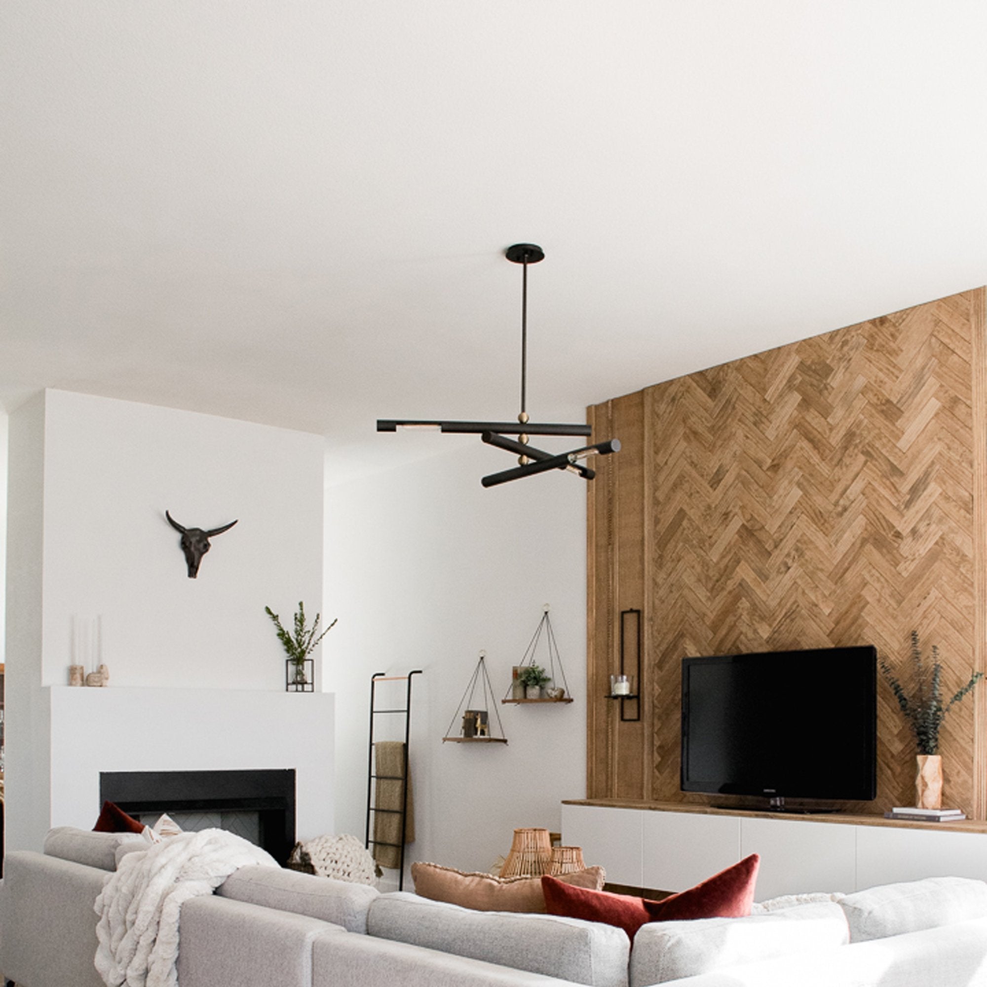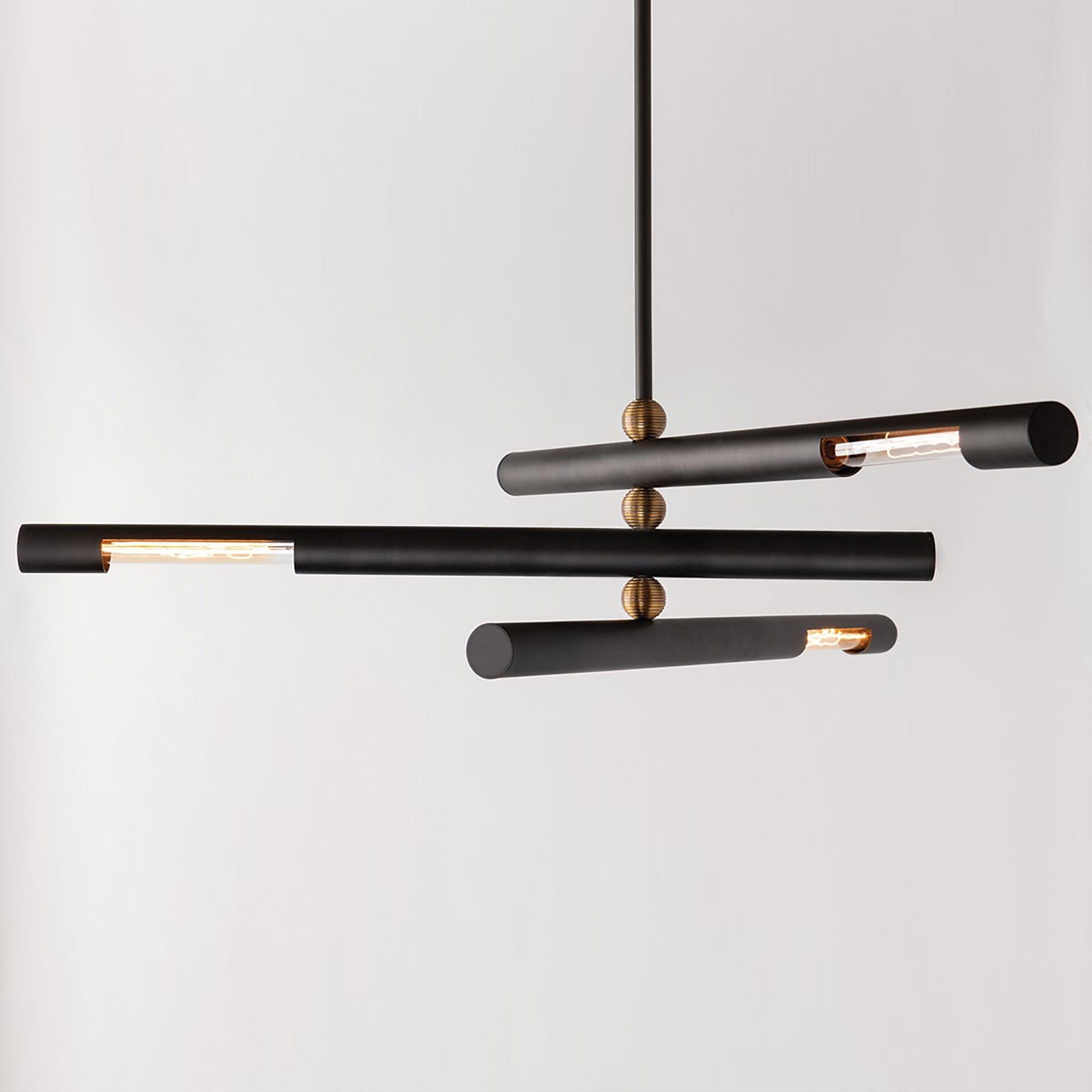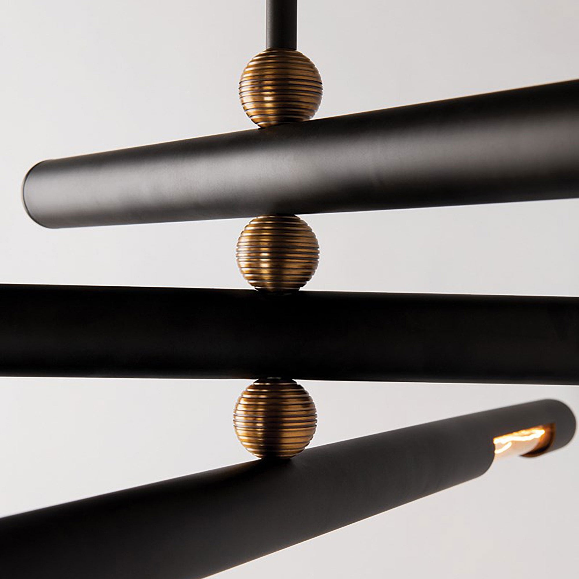 A beautiful blend of modern minimalism and futuristic flair, the Hendrix Chandelier from Troy Lighting features layered effect of contrasting tubes and spheres.