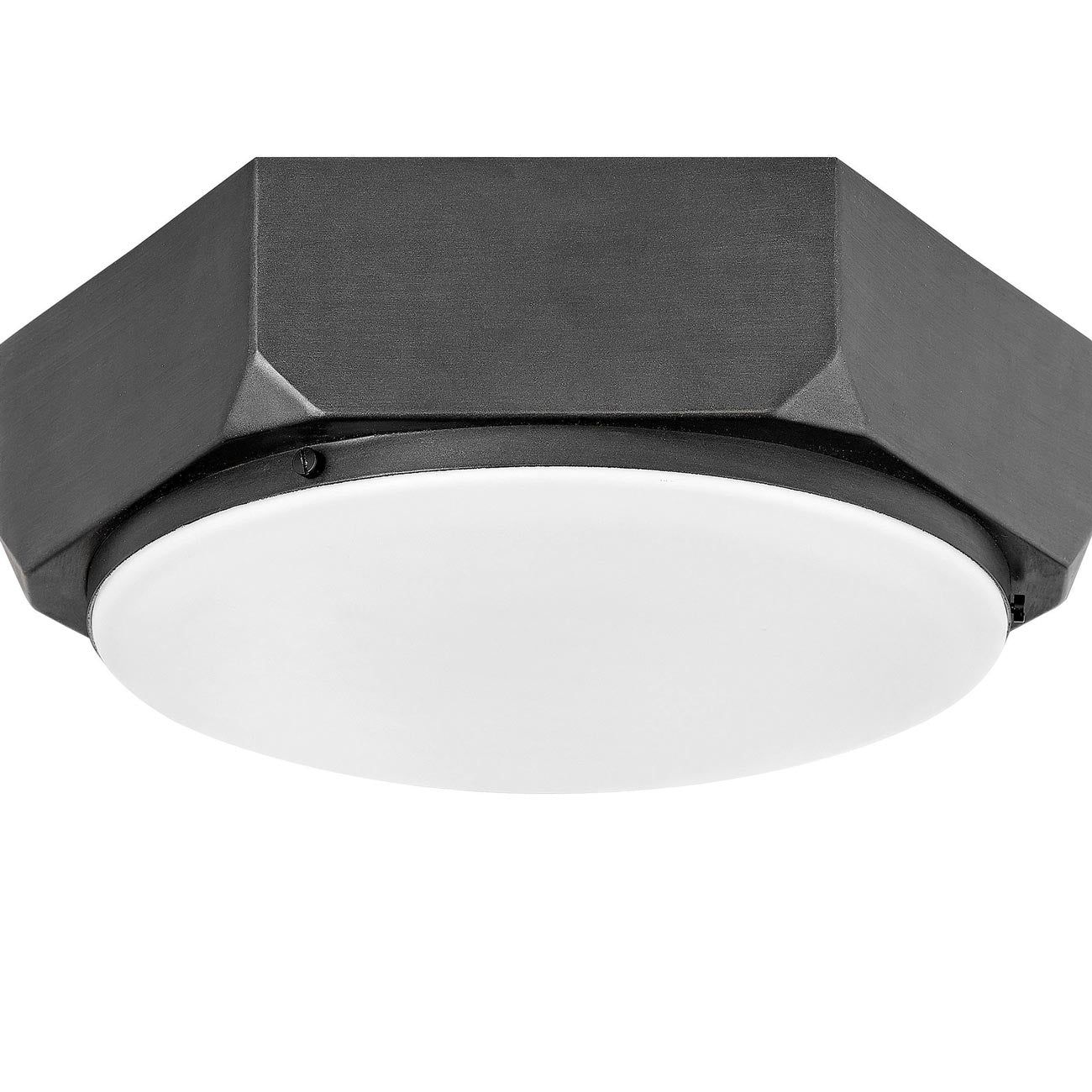 Industrial grit meets simplistic style in the Hex flush mount collection. Its Etched Opal glass diffuser softens the contemporary hexagonal silhouette in Warm Brass or Brushed Graphite, balancing its overall appearance and allowing for use in a range of decor.