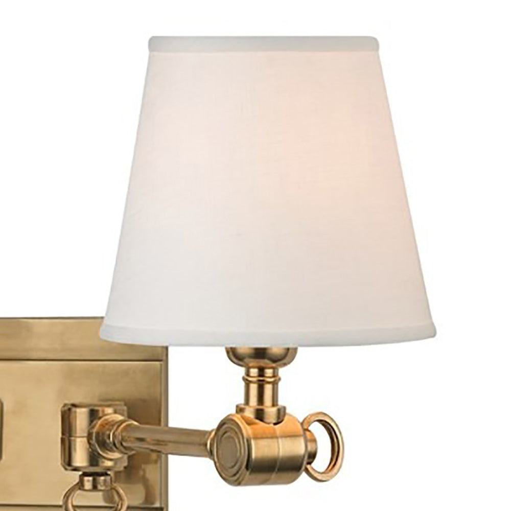Versatile and attractive, Hillsdale Two Light Wall Light combines the ingenuity of early-twentieth century task lighting with a smart decorative touch from the twenty-first. Vintage cast swivels give the sconces wide-range adjustability, while custom contemporary linen shades swath your space in soft ambient light.