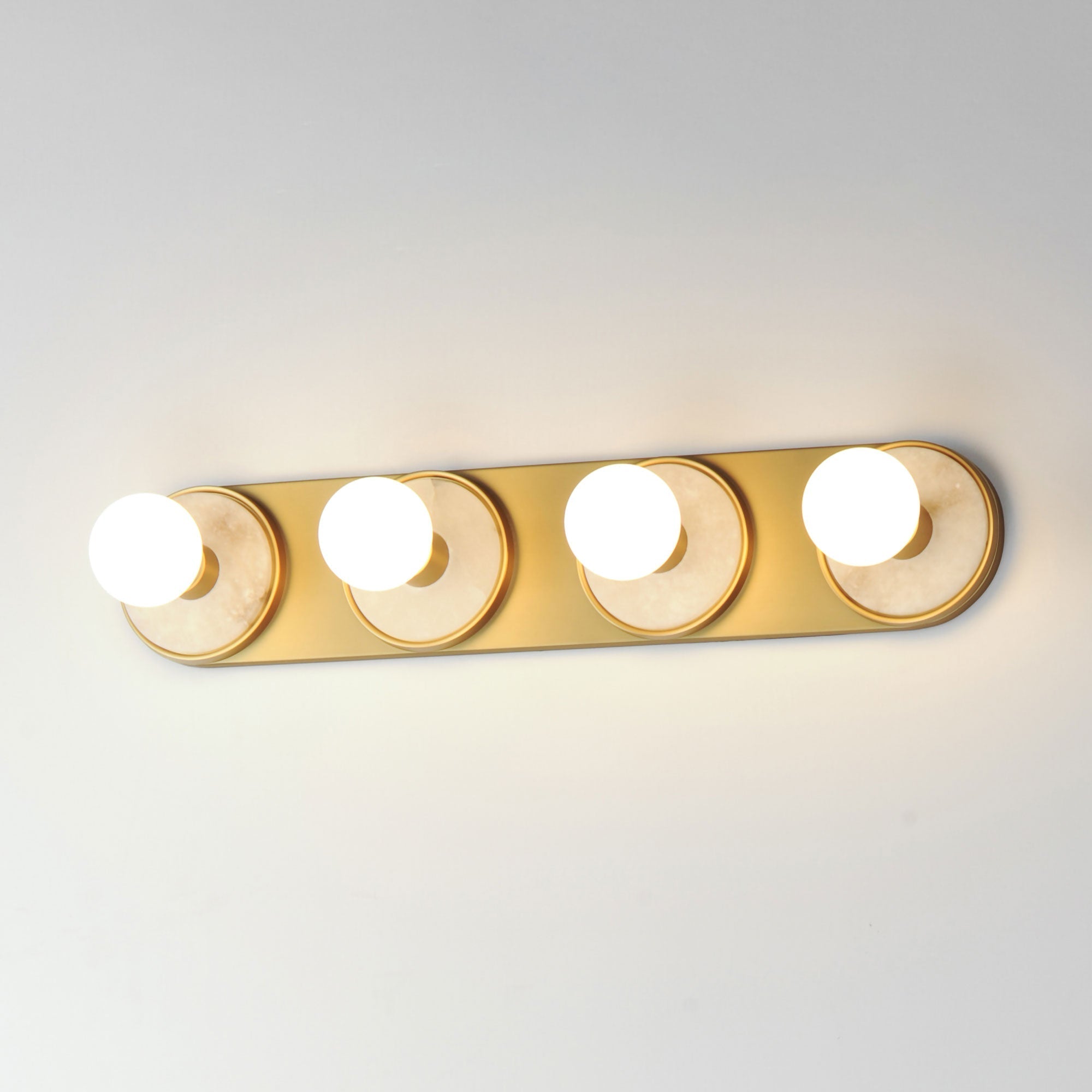 The Hollywood Bathroom Vanity Light from Maxim Lighting celebrates indulgent Art Deco flavor with a Hollywood motif, transitional and cheery. True retro personality jumps out with a charming yet clean design blending metal framing with optically soft oval and round silhouetting.