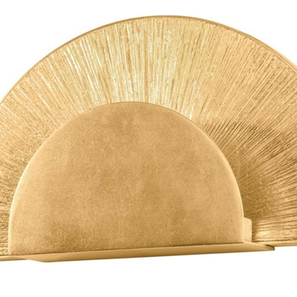 The absence of variance in materials and finish hits a note of simple elegance as the Homecrest LED Wall Light from Hudson Valley Lighting shows off the height of glam. Taking a page from retro style, this layered fixture adopts an always-pleasing circular silhouette with construction of brushed vintage gold leaf metal. Subtle textural aspects naturalize its final form, adding to a specialized delivery of warm, inviting decadence infusing energy-efficient lighting.
