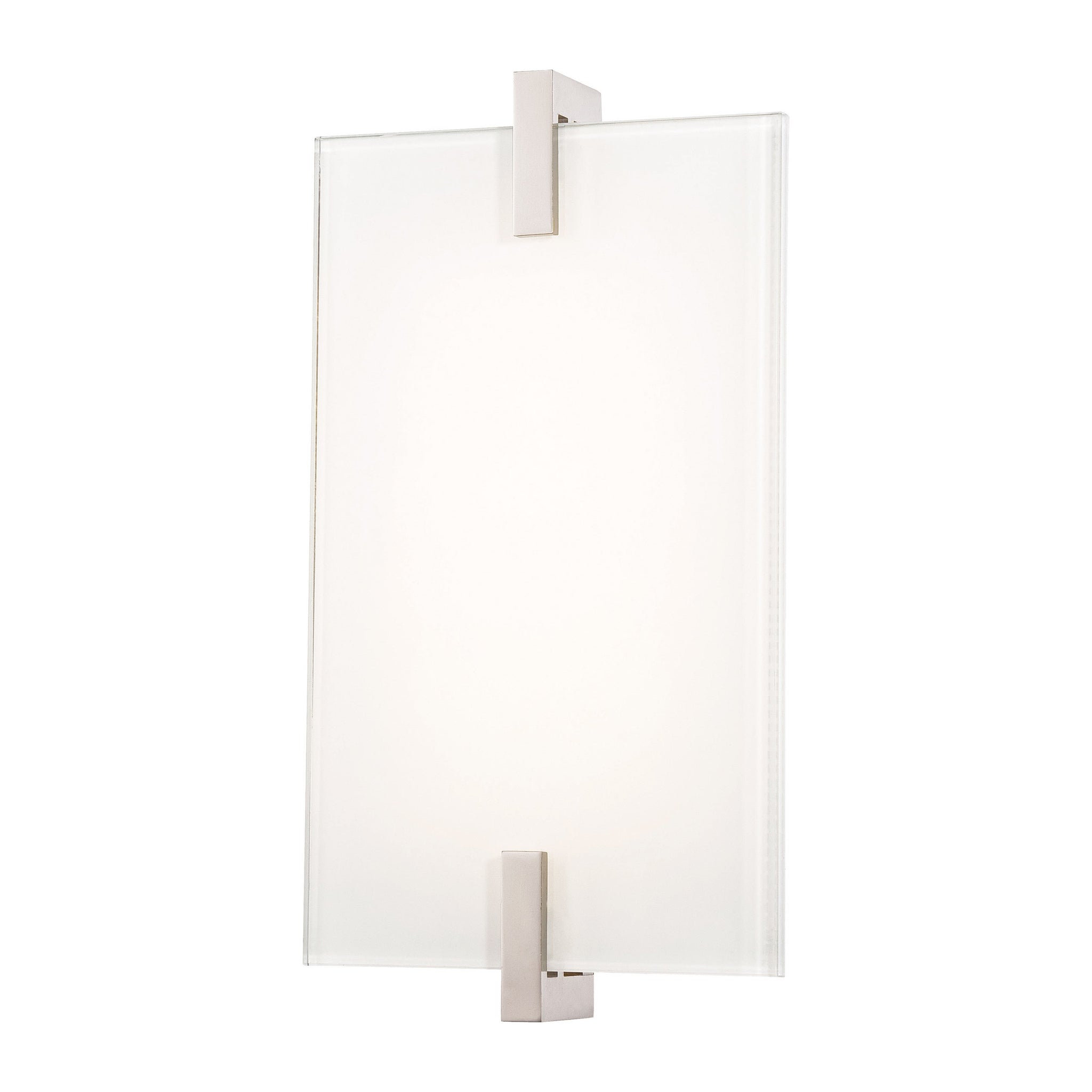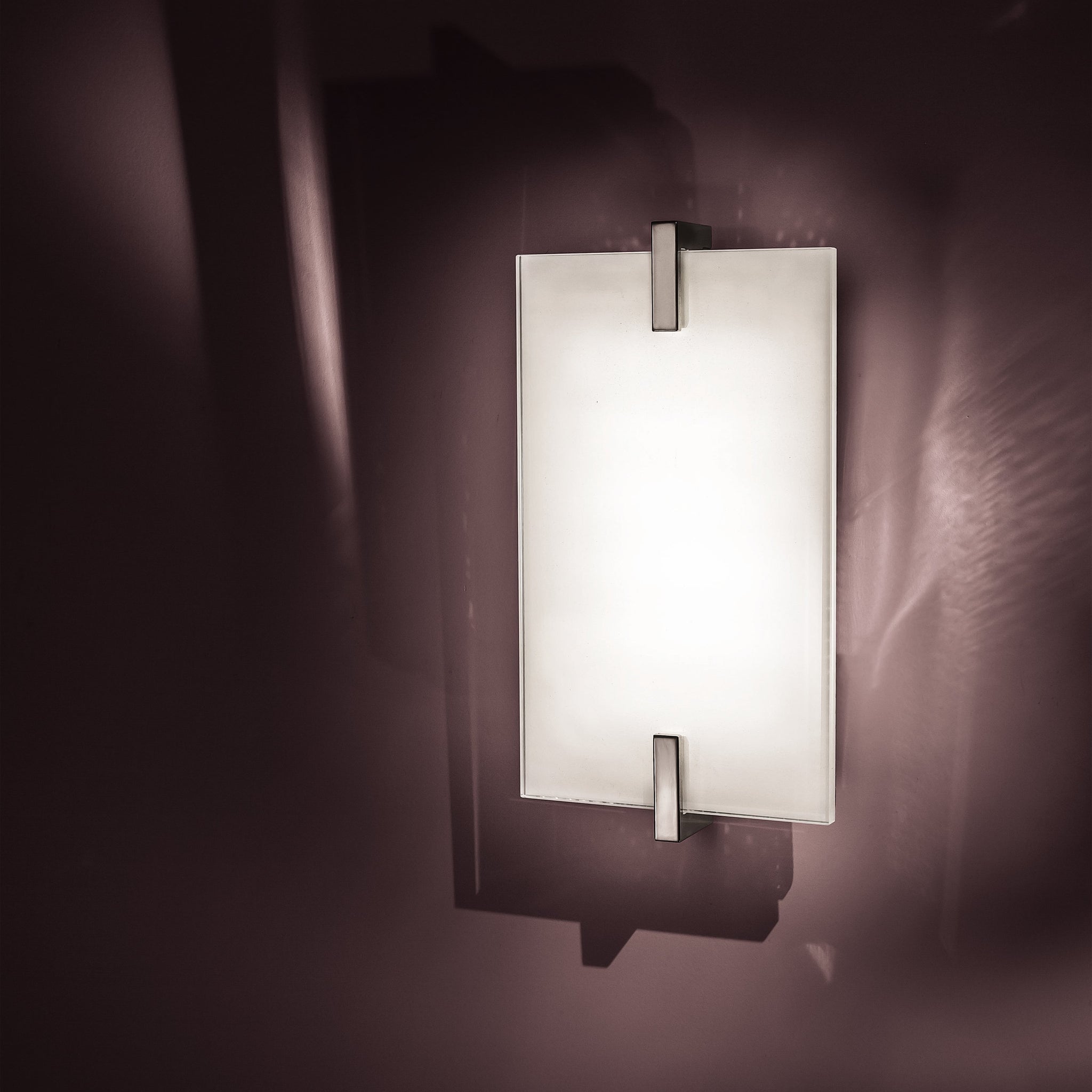 Layered clear and white glass create a striking effect with the two simple brackets of the Hooked LED Bath Wall Light from George Kovacs.