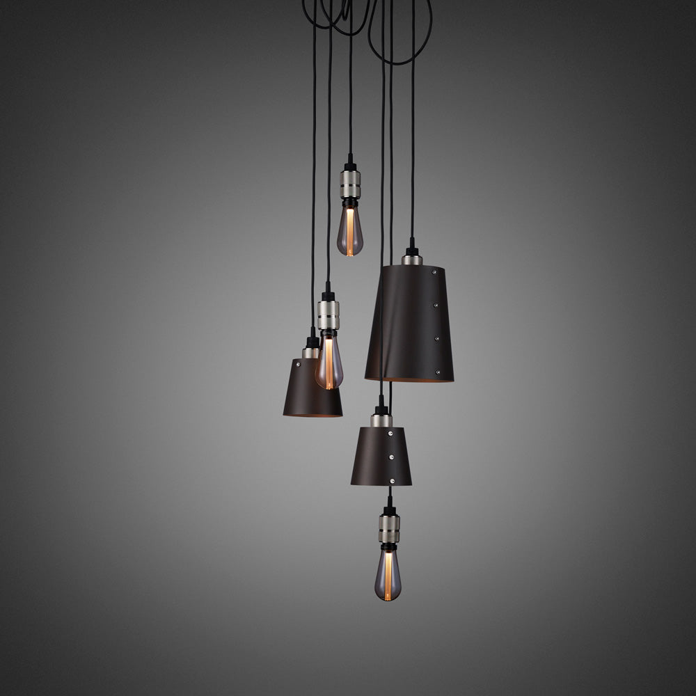 With a casual arrangement of draped lamping, the Hooked Mix Multi Light Pendant Light from Buster + Punch delivers a classic farmhouse-industrial flavor. This multi-light cluster features subtly conical metal shades created with a wrapped design and secured with charming bolt accents. An assortment of exposed bulbs are thrown in to add variety, as cords loosely drape from a canopy to reveal a laid back motif.