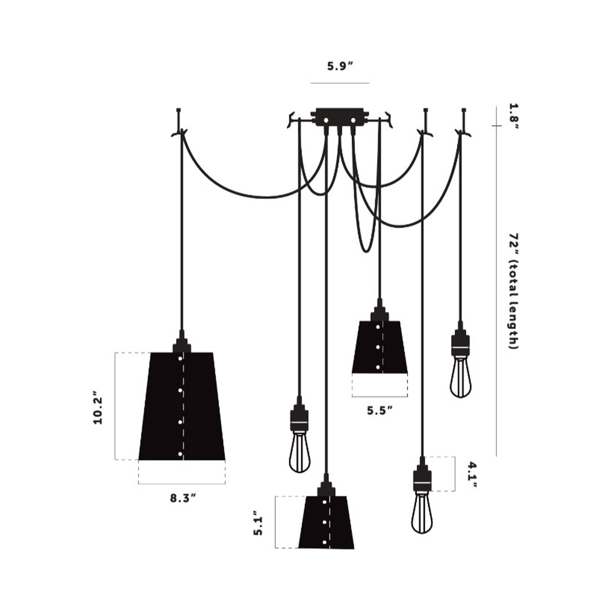 - 6-Light: 8.3"D X 10.2"H