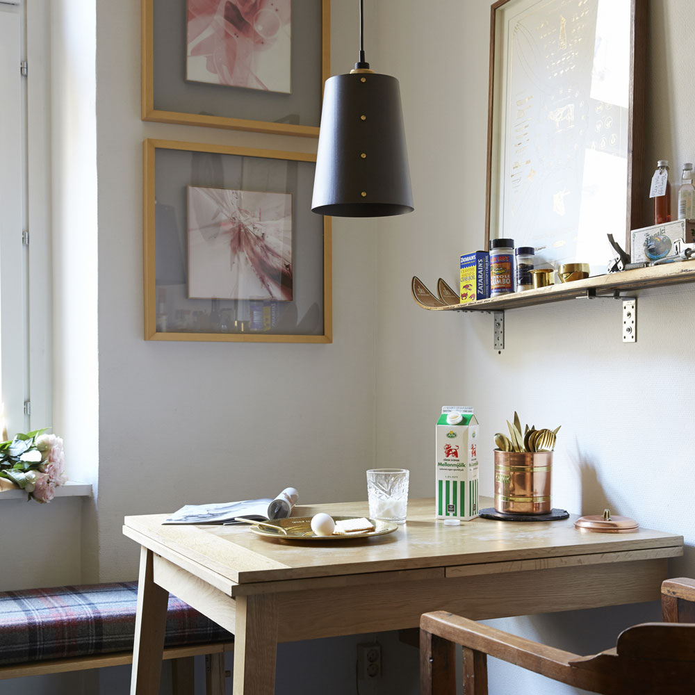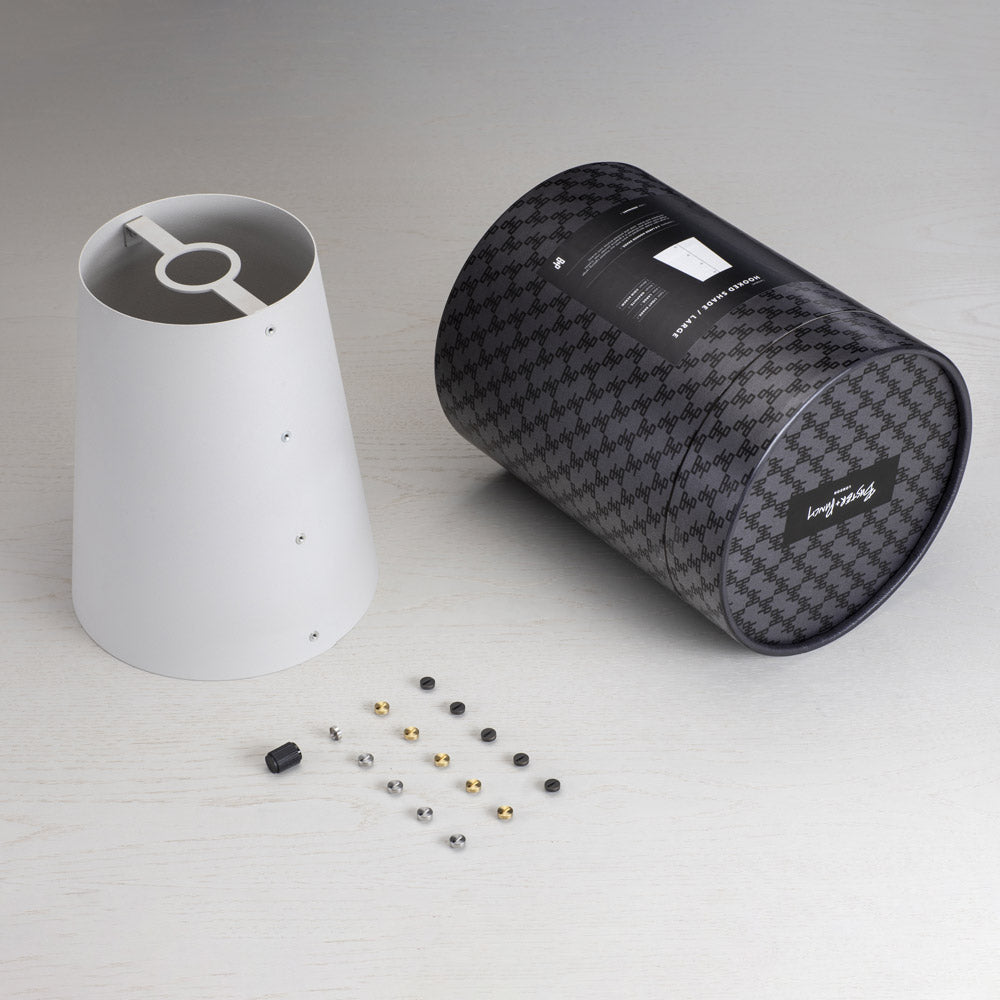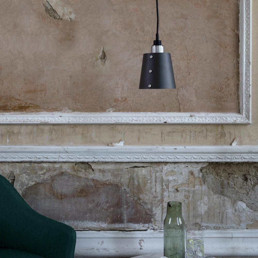The Hooked Shade from Buster + Punch transforms a light fixture into a cheeky repackaged industrial farmhouse design element. Wrapped into a conical silhouette, metal construction features premier style embellishment in tasteful metal accenting. Use this shade to change the focus of a laid back space.
