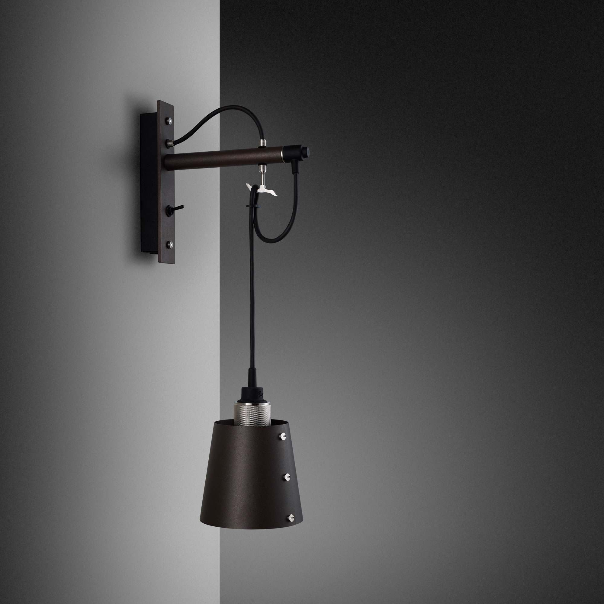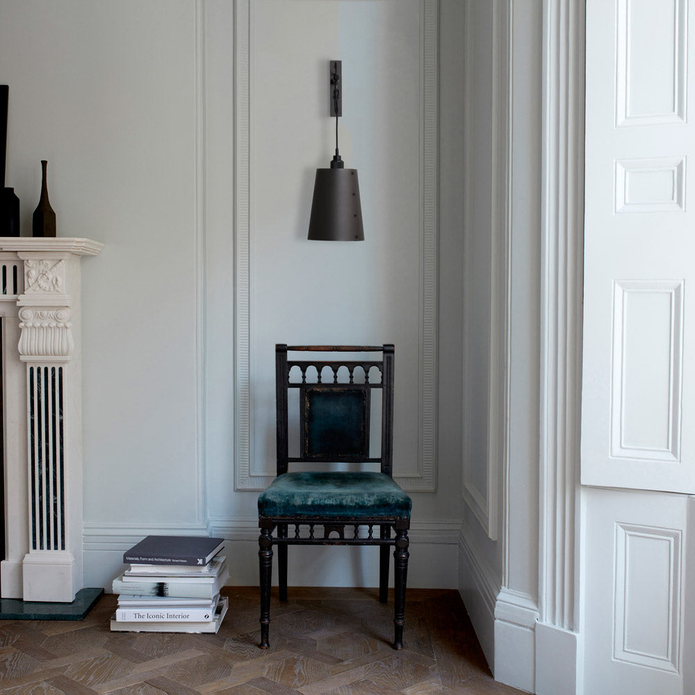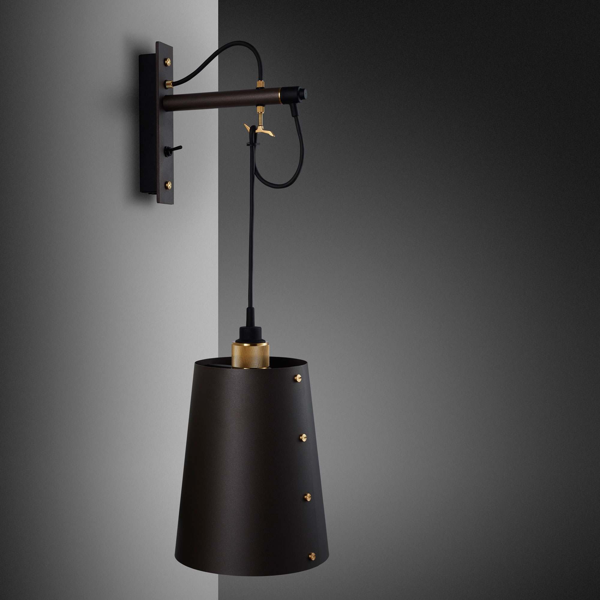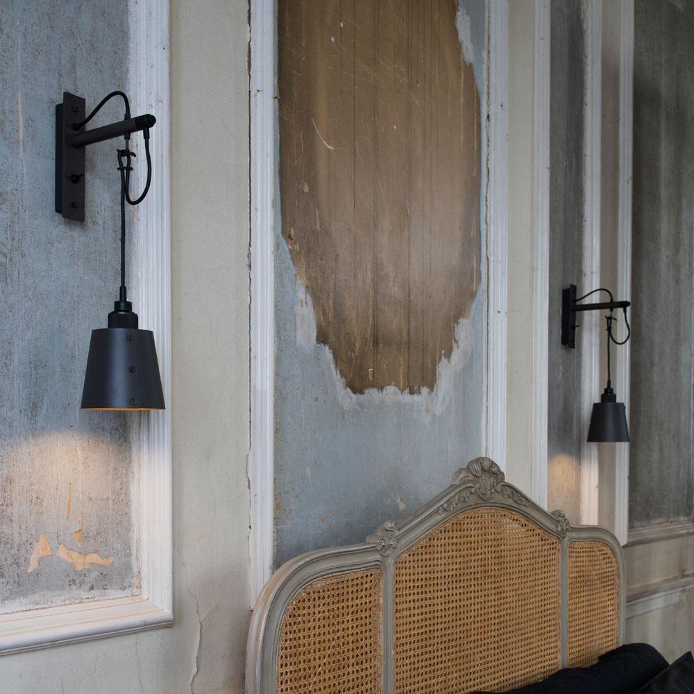 Prominent in style and substance, the Hooked Wall Light from Buster + Punch does its best to repurpose classic farmhouse industrial design flavor. A bevy of elements converge to create a wall light with metal wall mounting and a dangling conical metal shade with precision-made accents showing up from top to bottom. Looped to fashion a charming curved silhouette, its cable suspension adjusts to deliver custom height settings.