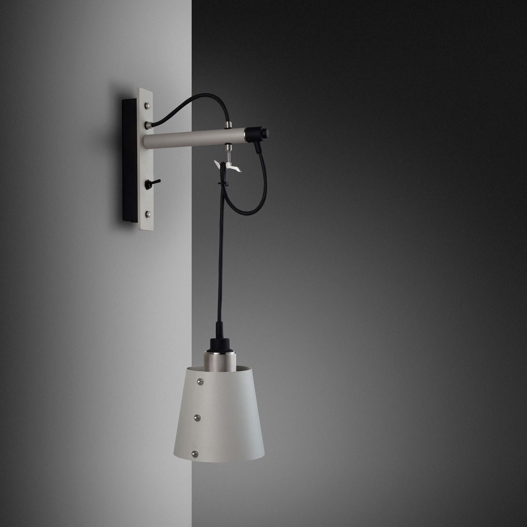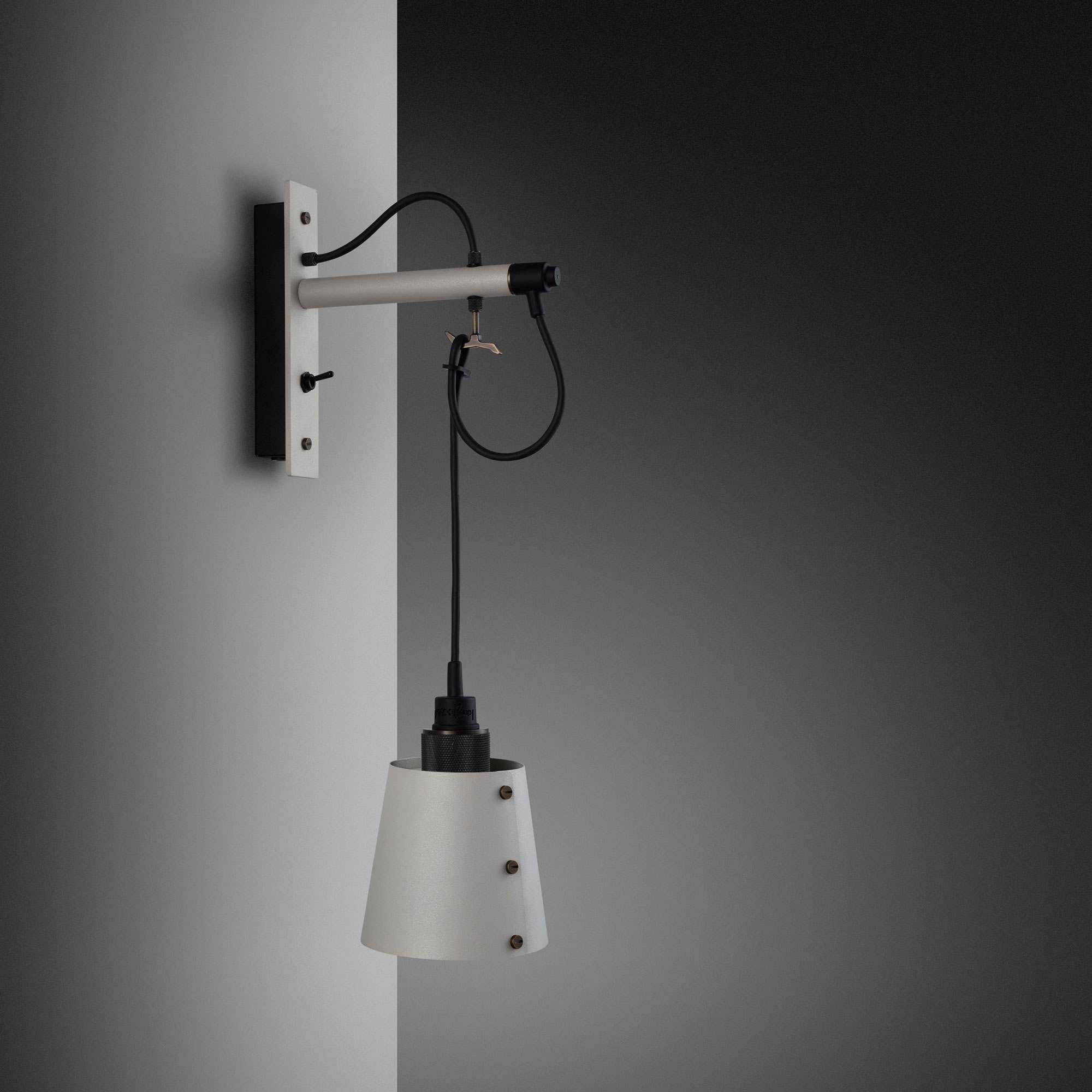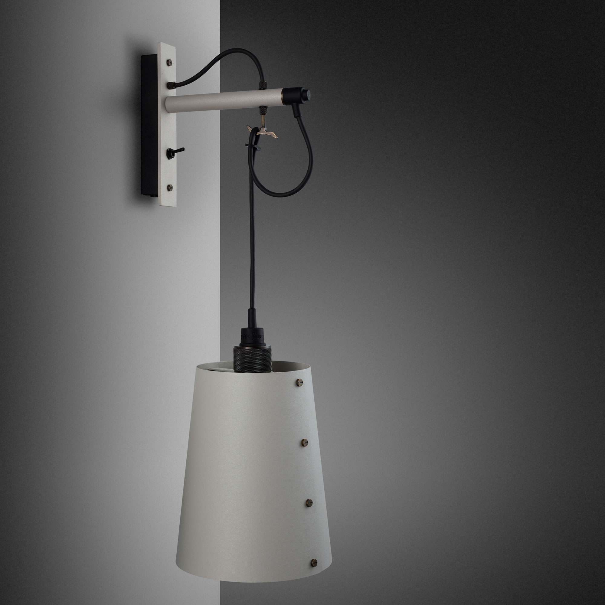 Prominent in style and substance, the Hooked Wall Light from Buster + Punch does its best to repurpose classic farmhouse industrial design flavor. A bevy of elements converge to create a wall light with metal wall mounting and a dangling conical metal shade with precision-made accents showing up from top to bottom. Looped to fashion a charming curved silhouette, its cable suspension adjusts to deliver custom height settings.