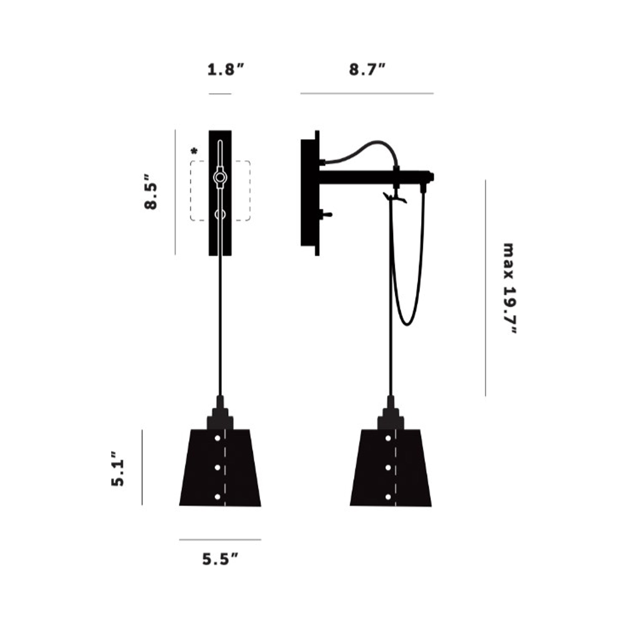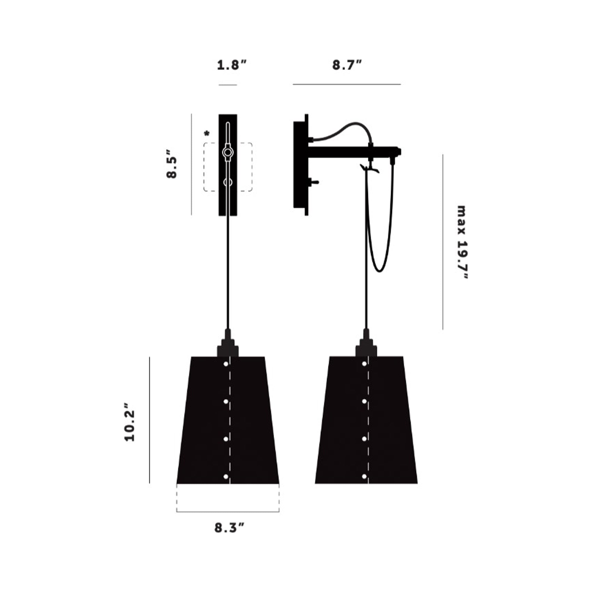 - Backplate: 1.8"W X 8.5"H