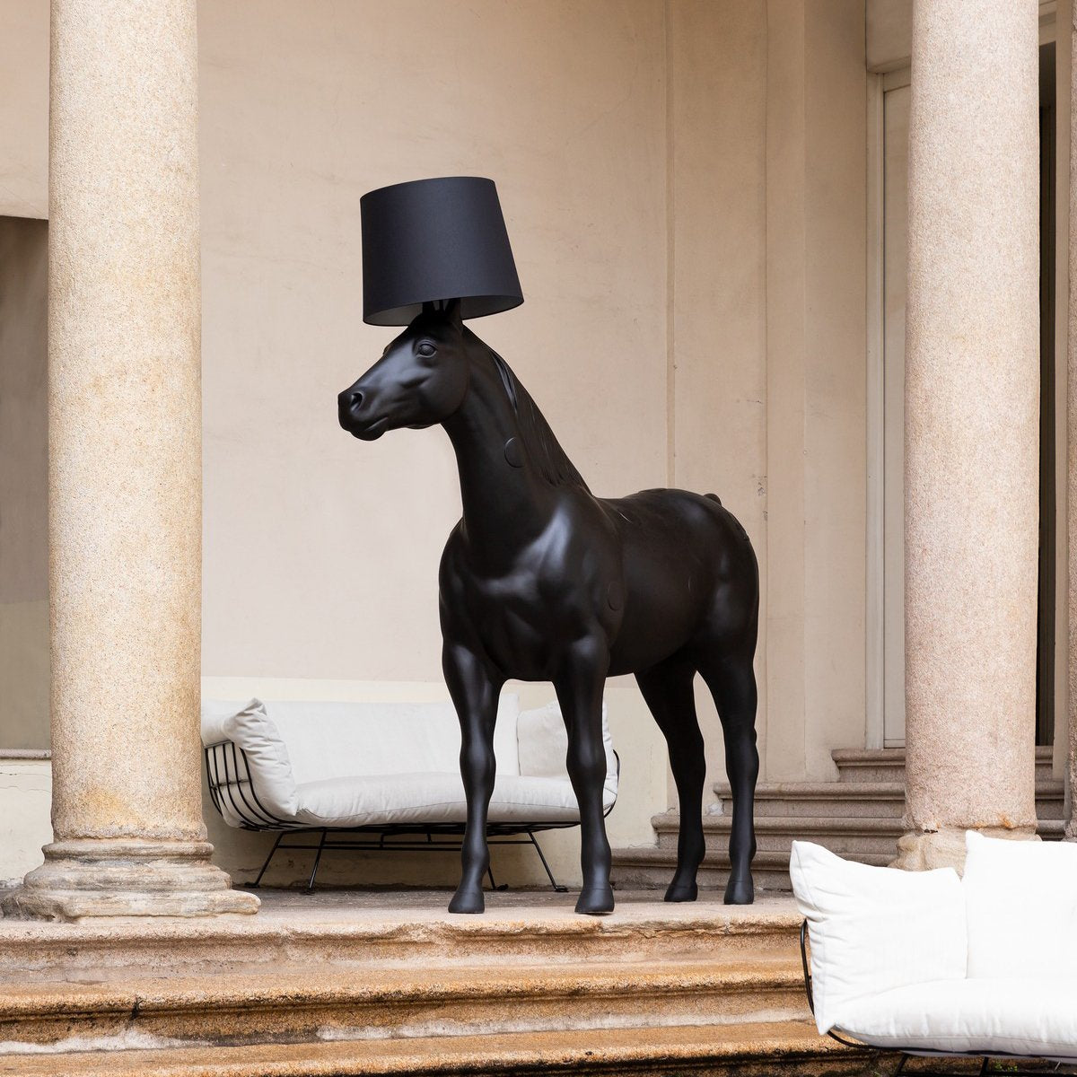 Fulfill your equine dreams of a statement-making horse floor lamp in a living area, large office space or grand home library. The Horse Floor Lamp from Moooi comes in the full dimensions of a real horse to permanently set on display.