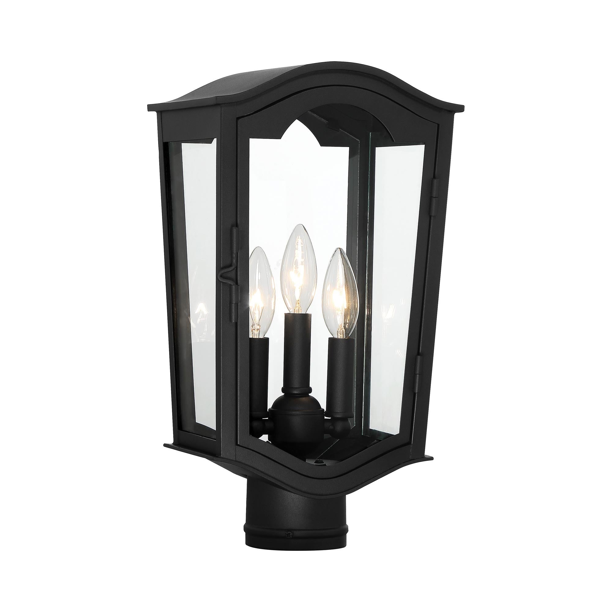 Inspire a custom walkway or landscaped setting with the classic charm of the Houghton Hall Outdoor Post Mount from The Great Outdoors. Themed village charm reverts to an old English village motif with a bold sand coal finish metal frame featuring ornate silhouetting and clear glass panels showcasing romantic candelabra-style bulb mounts.