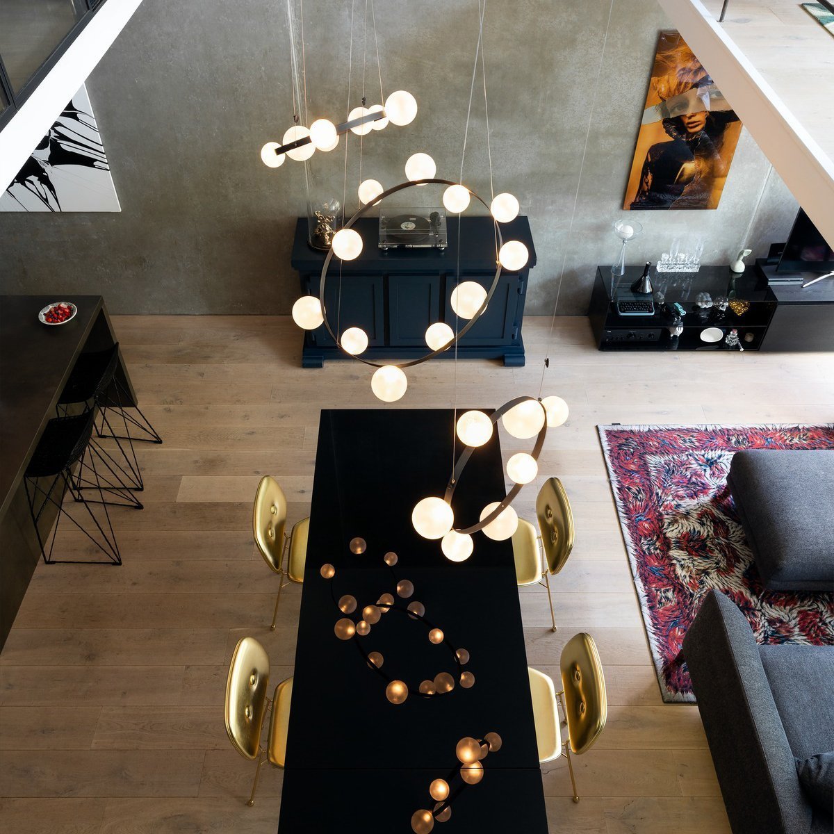 Bubble globes in an iridescent finish make a spectacular display with the Hubble Bubble Chandelier from Moooi. Bubble bulbs surround the circular construction of this piece for an eternity of beauty and energy efficient lighting.