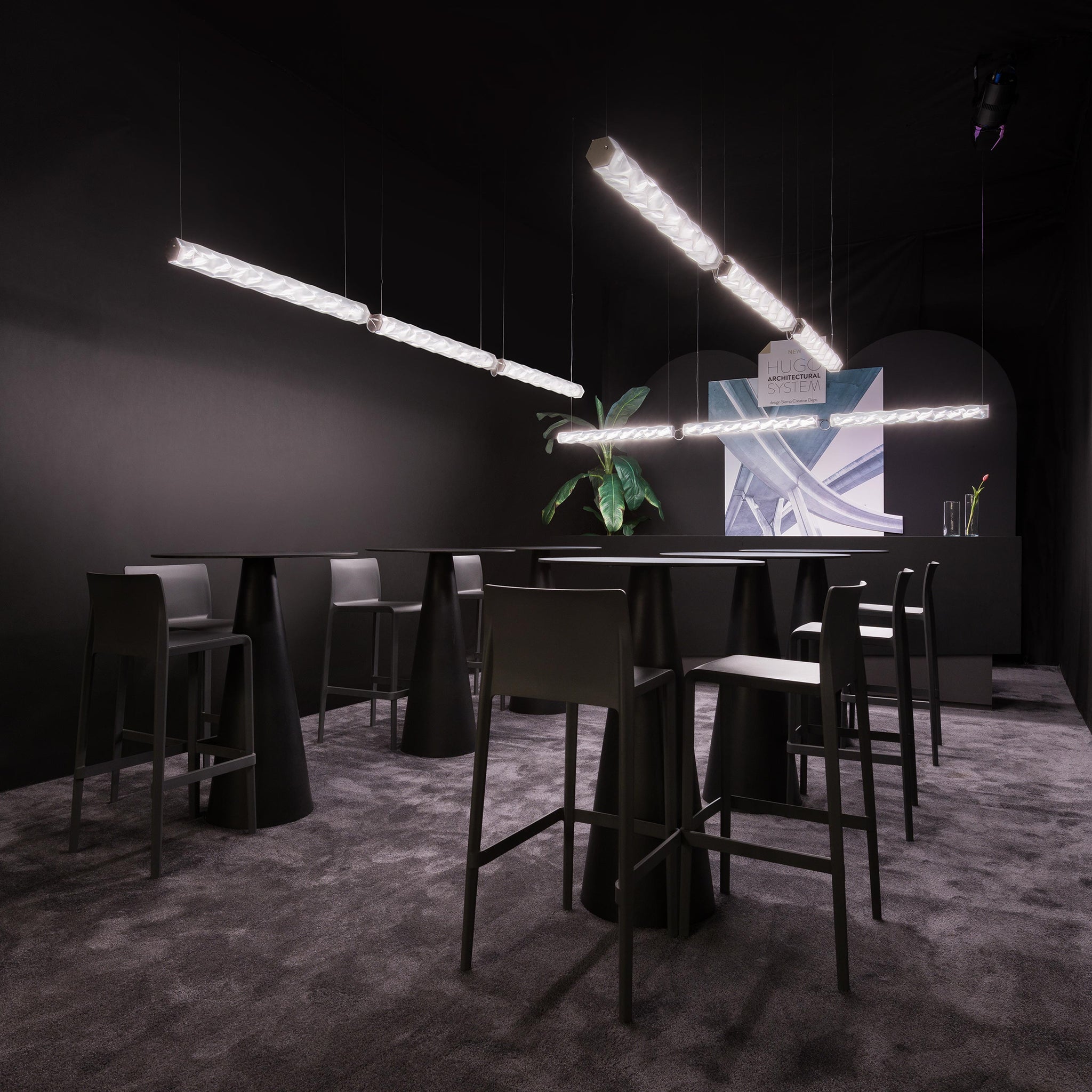 Hexagonal lighting elements create the impeccable, structured look of the Hugo Architectural LED Linear Suspension Light from Slamp.