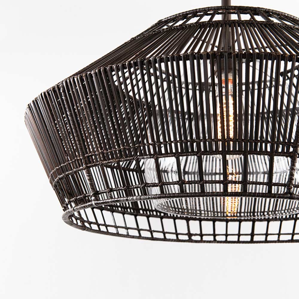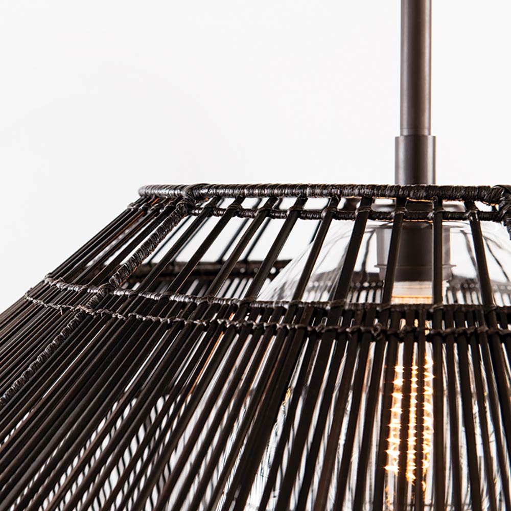 Brimming with artisan presence, the Hunters Point Chandelier from Troy Lighting is a spectacular addition to any room. A thick glass inner shade is surrounded with an exceptional buri ting-ting rattan that's hand-harvested, stripped and dyed before beings wrapped tightly around an outer shade frame to bring richness and earthy texture over an entry or dining room.
