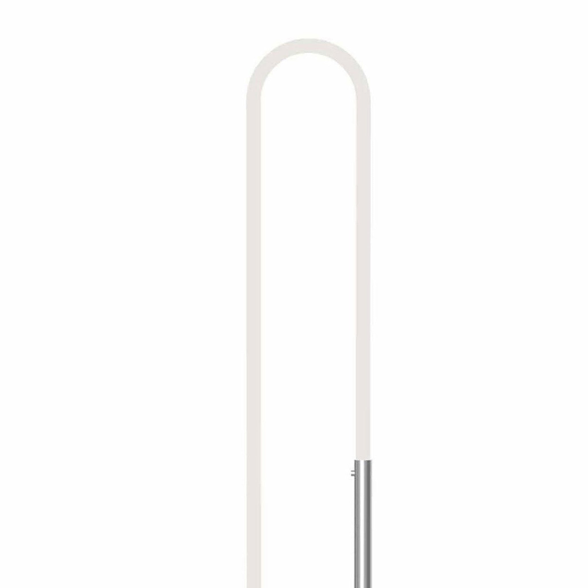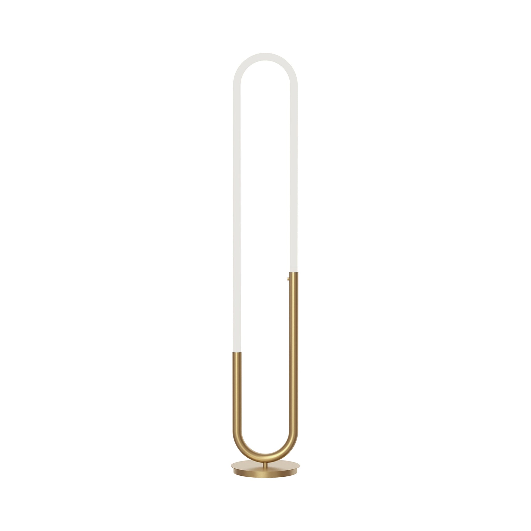 Light glows from the unending loop that creates the modern profile of the Huron LED Floor Lamp from Kuzco Lighting. Frosted acrylic pairs with sleek metal to create an artistic, engaging effect for any living room.