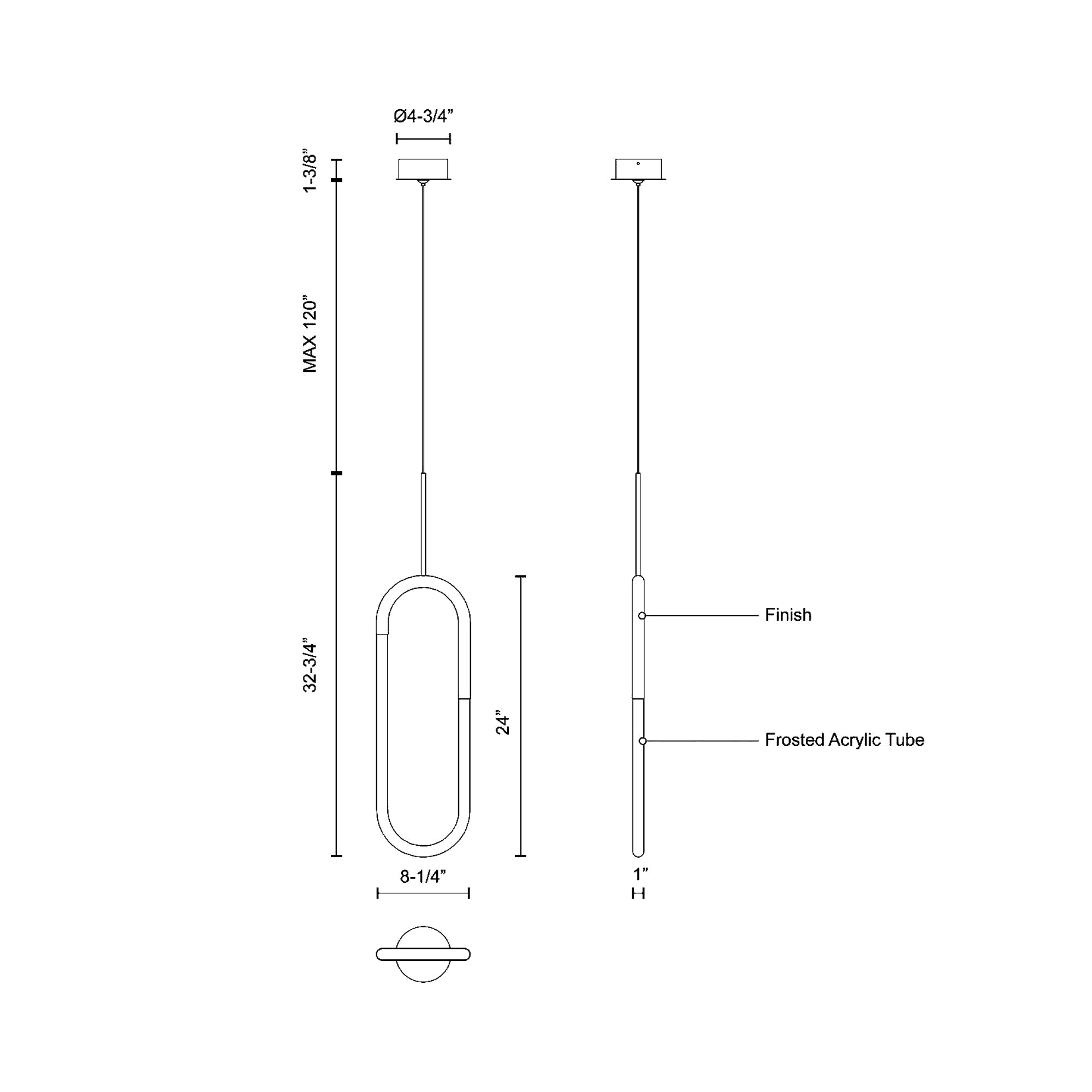 Extruded aluminum body, acrylic frosted tube, matte powder-coated or plated finish.