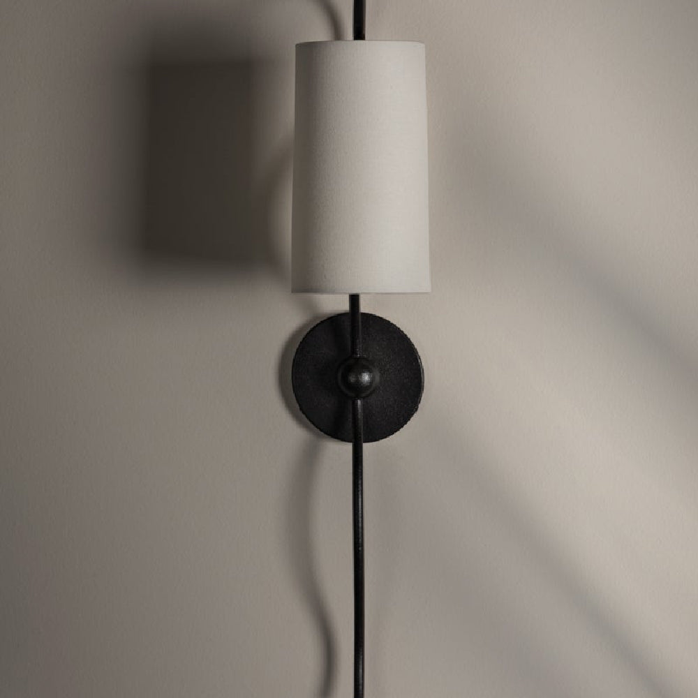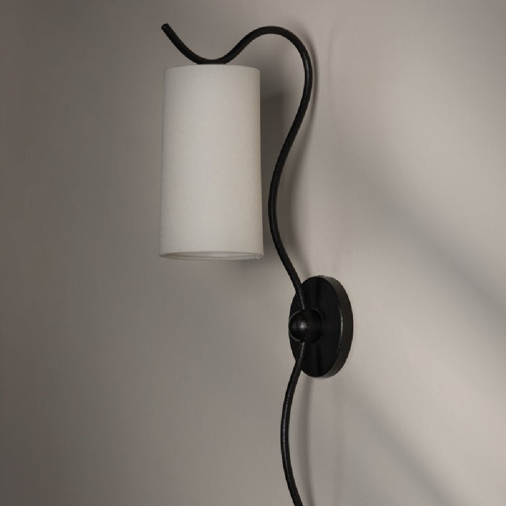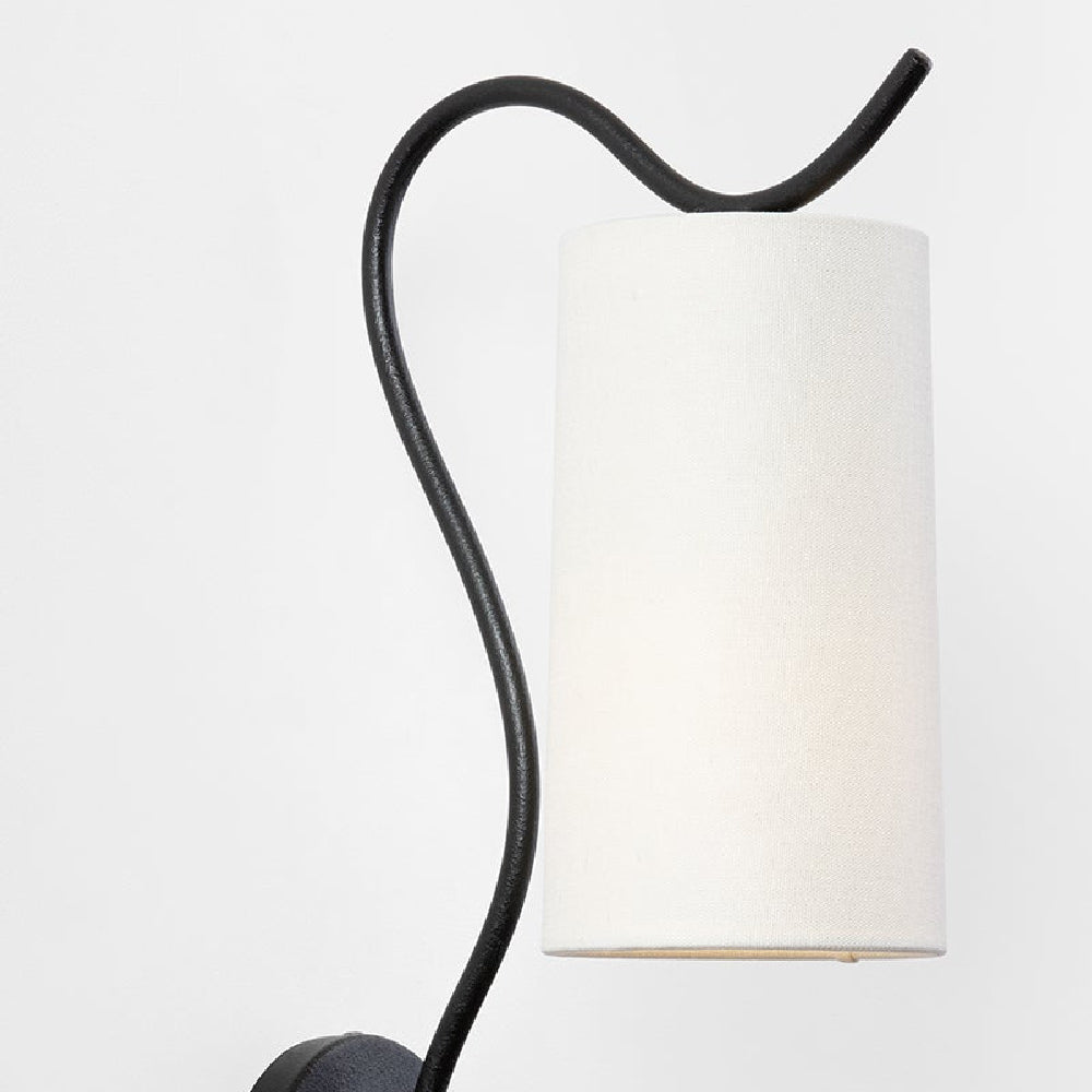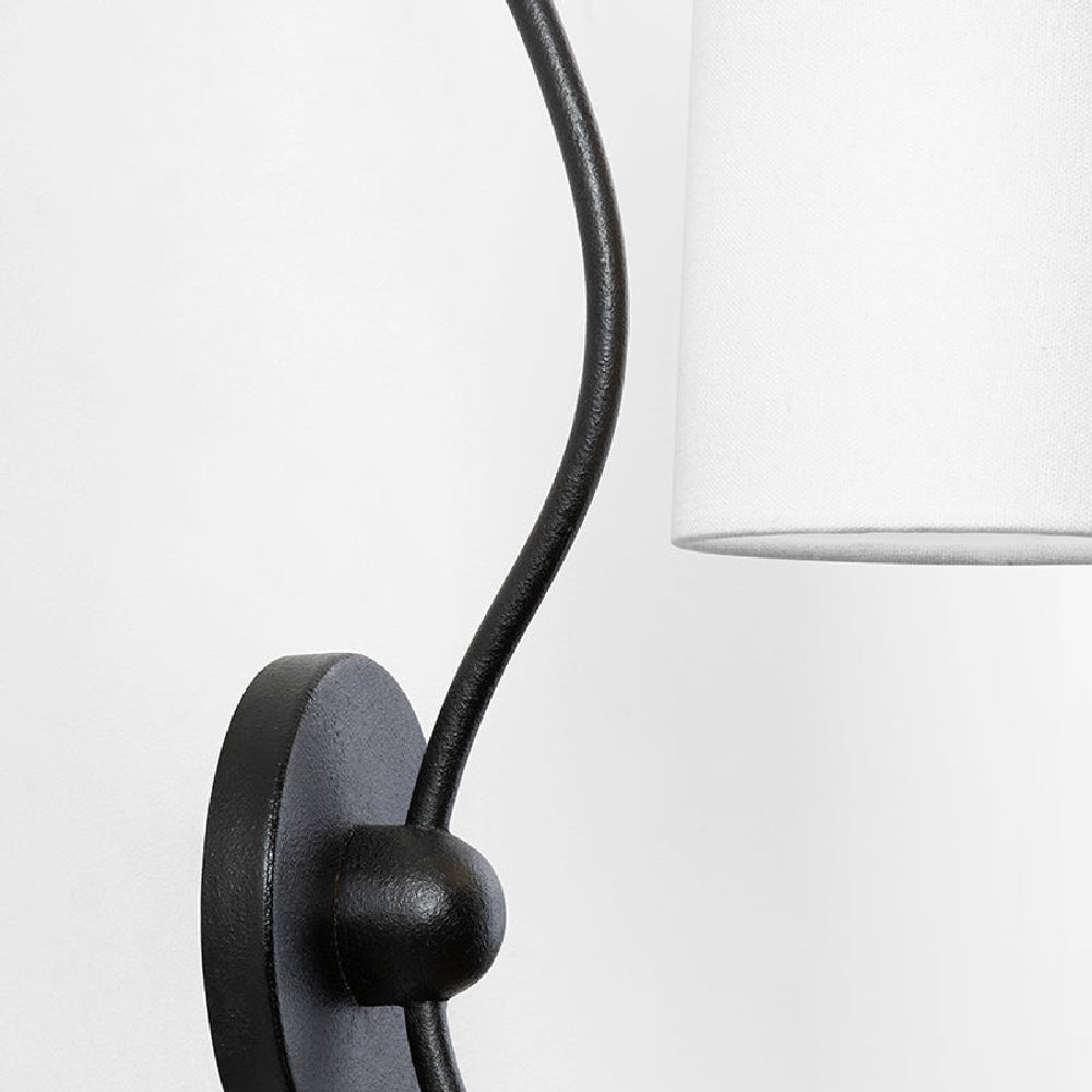 The crisp contrast of colors and finishes belie a flowing silhouette in the Igneous Wall Light from Troy Lighting, bringing a romantic artisan attitude. Accent illumination flows through an elongated shade keeping up with the extended reach of forged iron finish ribbon-like arm, producing a distinctive optical treat.