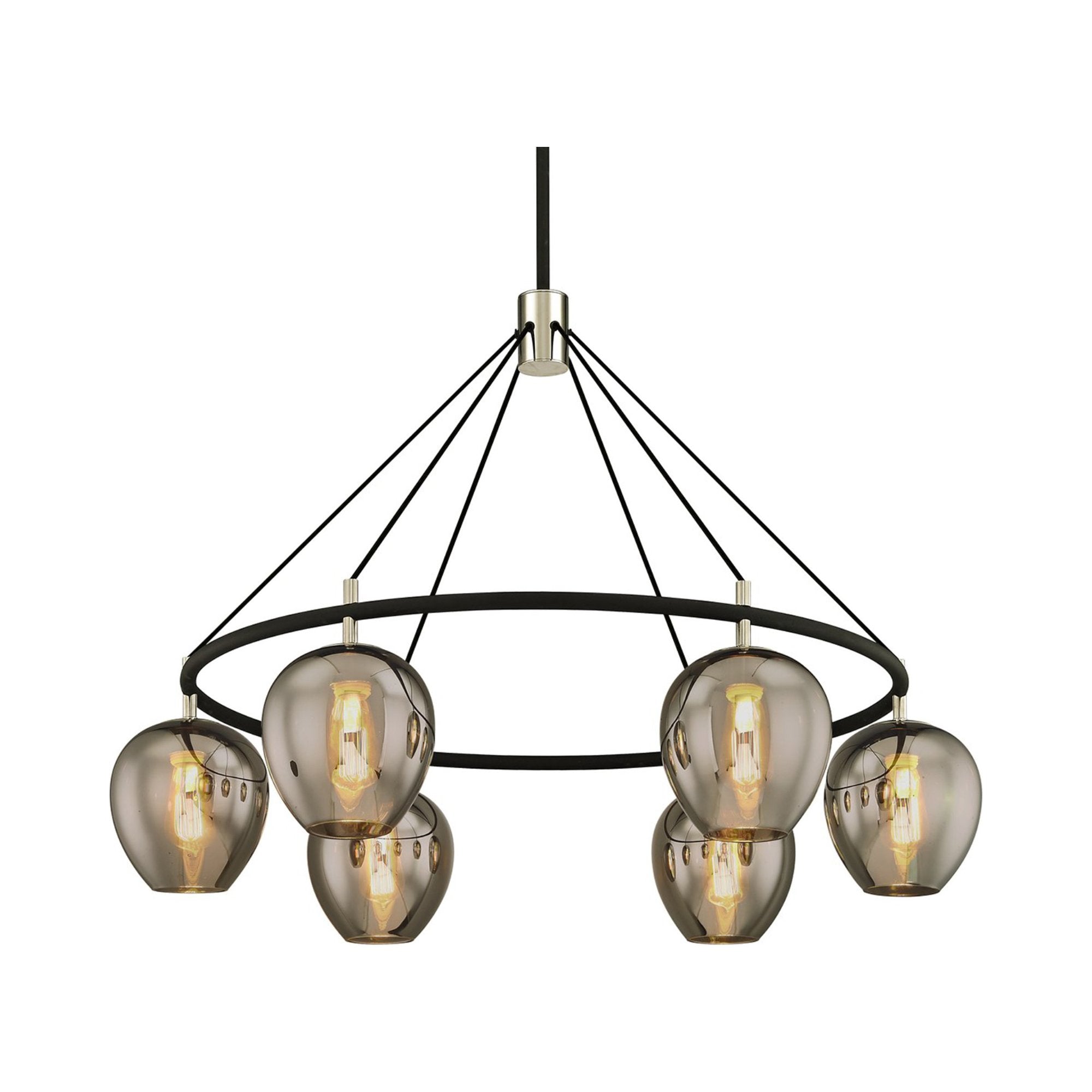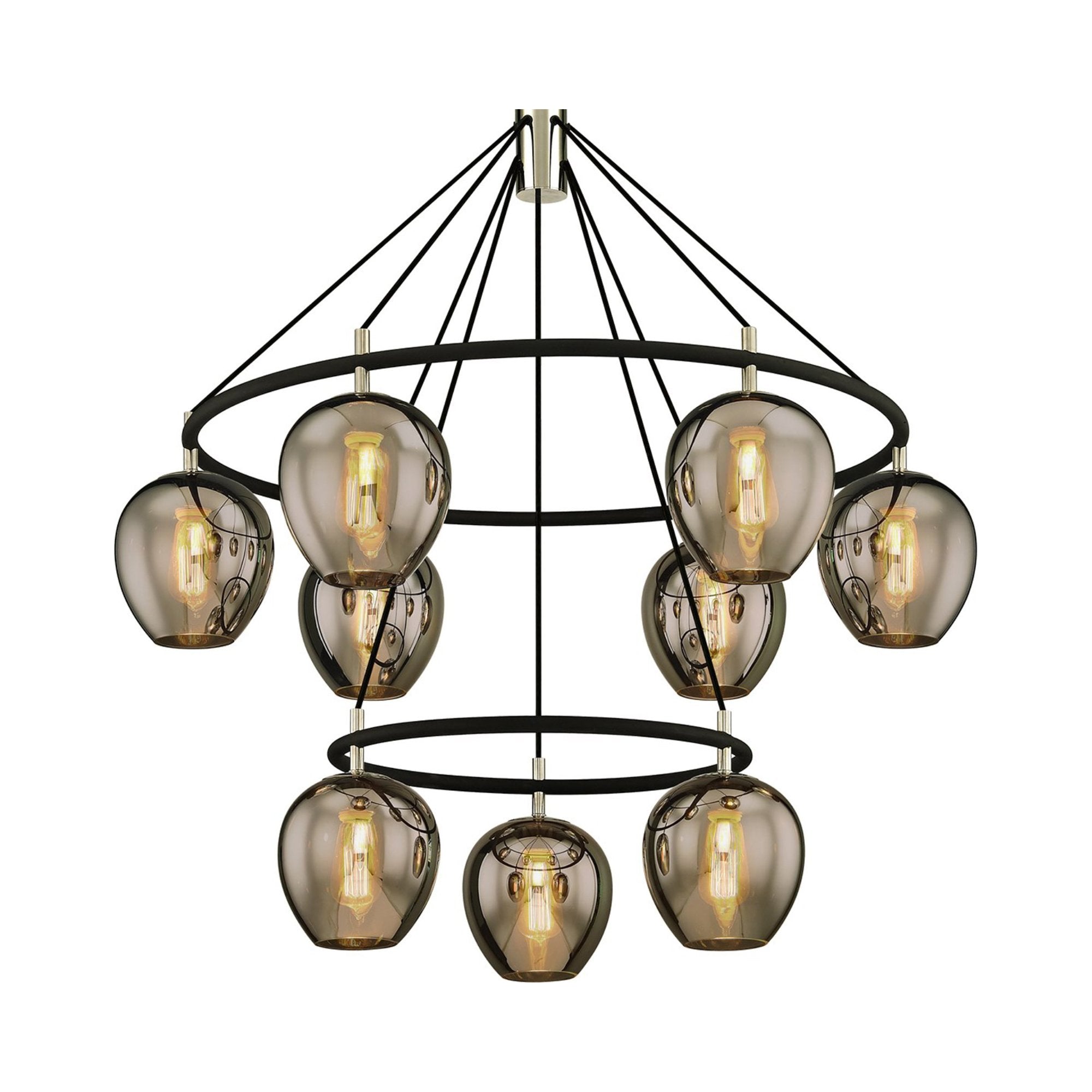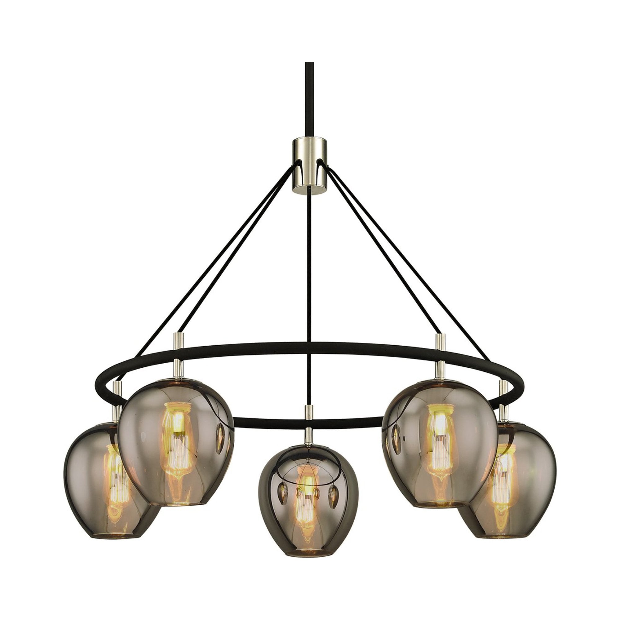 Polished nickel accents bring a sense of cool sophistication to the simple silhouette and gorgeous shades of the Iliad Chandelier from Troy Lighting.
