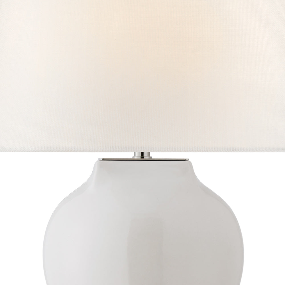 Inhale the classic elegance of pottery fare with a lamp delivering no shortage of versatility and beauty. The Ilona Table Lamp from Visual Comfort Signature reveals an alluringly shaped body with a glossy finish, compelling and rich. An oversized linen shade and subtle metal accents play into a brilliant method of turning minimalism into art.