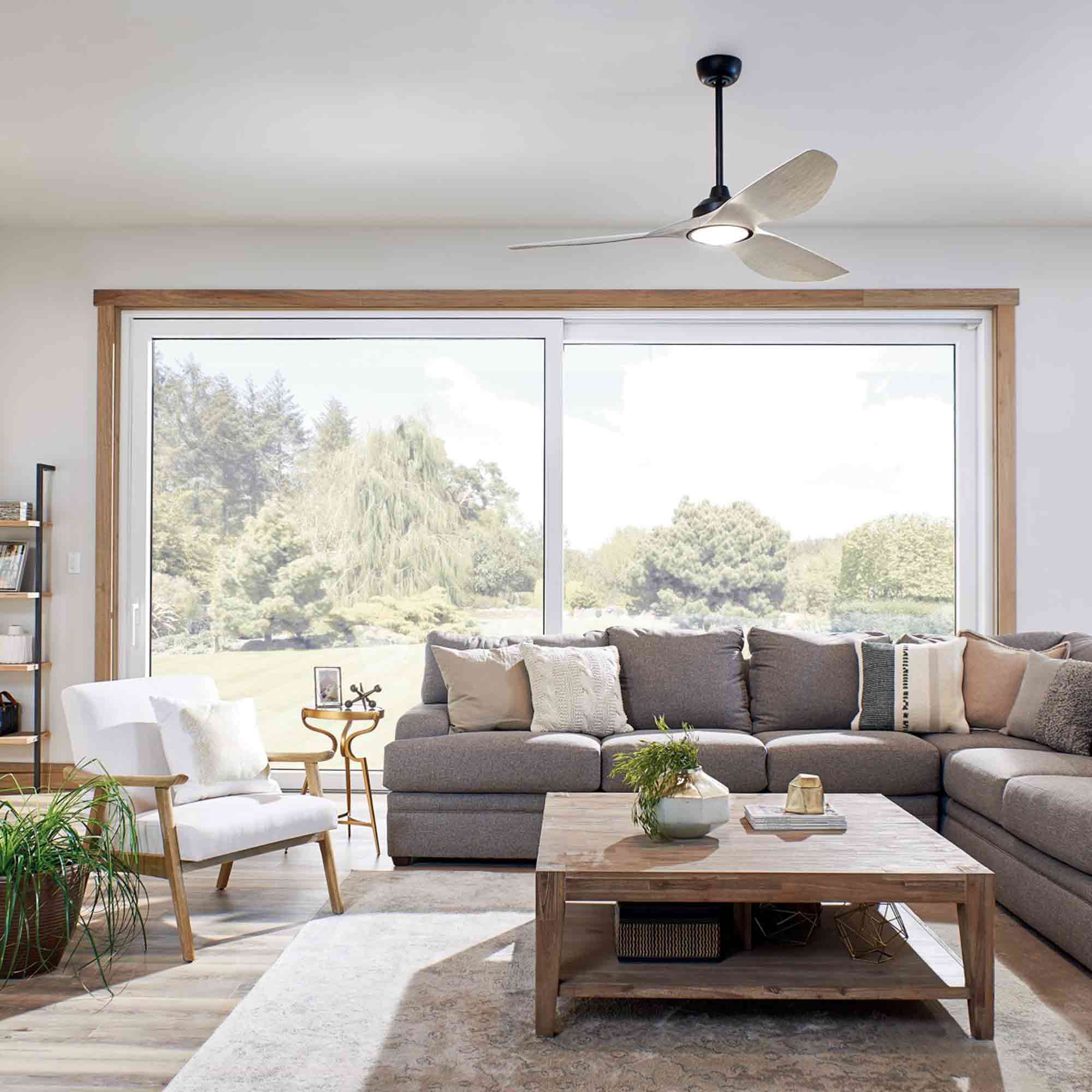 With a 65" blade span, this Imari LED Ceiling Fan in Matte White, Polished Nickel and Satin Black offer airflow to fit the occasion. The propeller inspired single-mold 3 blade design creates a clean, sophisticated look. The LED light source delivers 2,300 lumens of output, about the equivalent of two 150-watt incandescent light bulbs, for a substantial amount of room-filling ambient light.