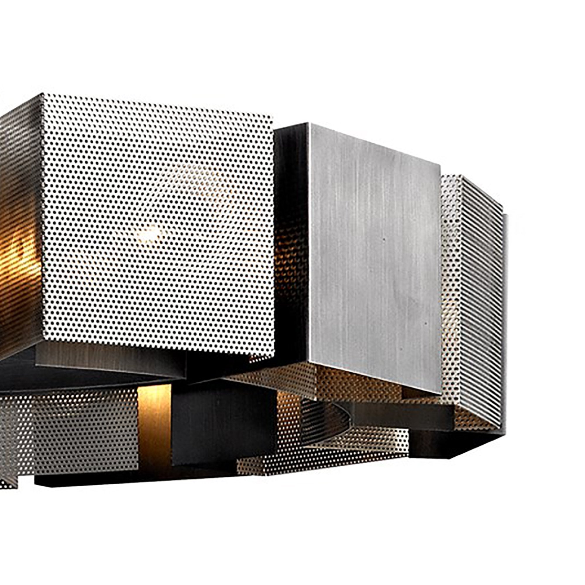 Crafted with industrial flair in hand-worked iron, the Impression Chandelier from Troy Lighting delivers compelling dimension and texture in a refined living or dining space.