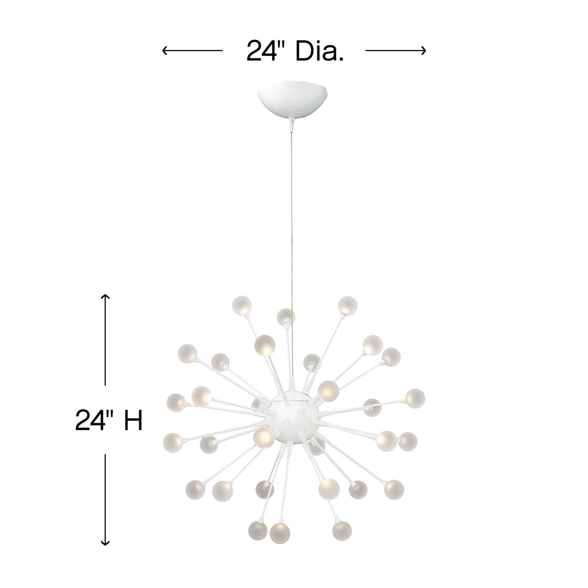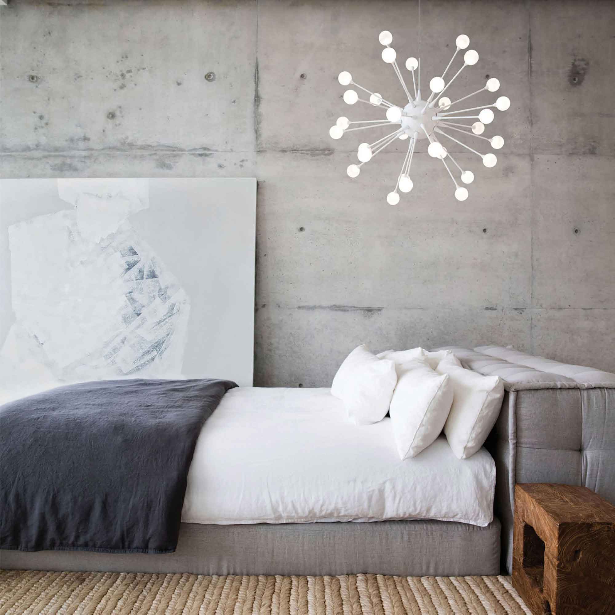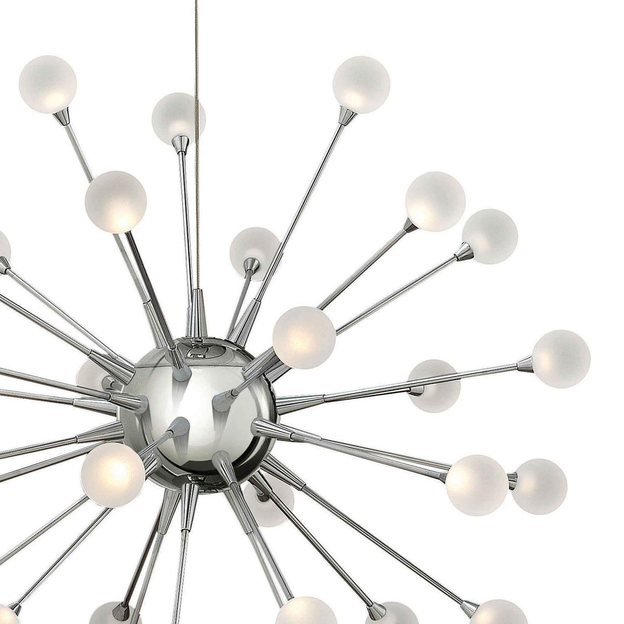 Impulse is a dynamic LED design with a striking contemporary shape. Petite stems radiate from the spherical body while miniature acrylic ornaments of light glow at its tips. An array of chic finishes in Polished Chrome, Polished Gold, and Cloud (White) intensifies its stunning effect.