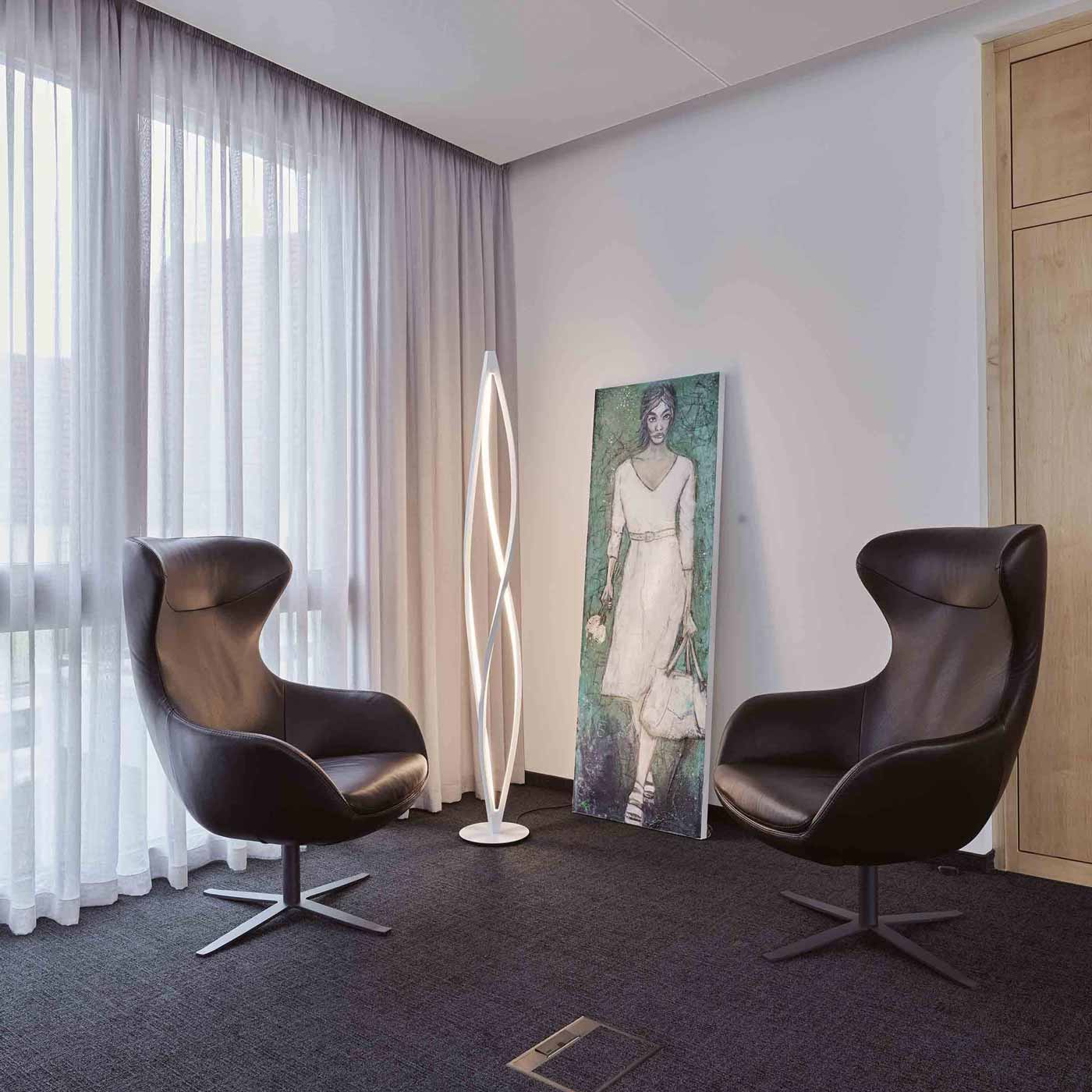 Intriguing twists and turns highlight the artful design of the In The Wind LED Floor Lamp from NEMO, a striking yet gentle source of ambient lighting. Full-range LED emission is a byproduct of careful design of this ultra-chic, modern lamp, a head-turner fashioned of aluminum with romantic opal diffusers.