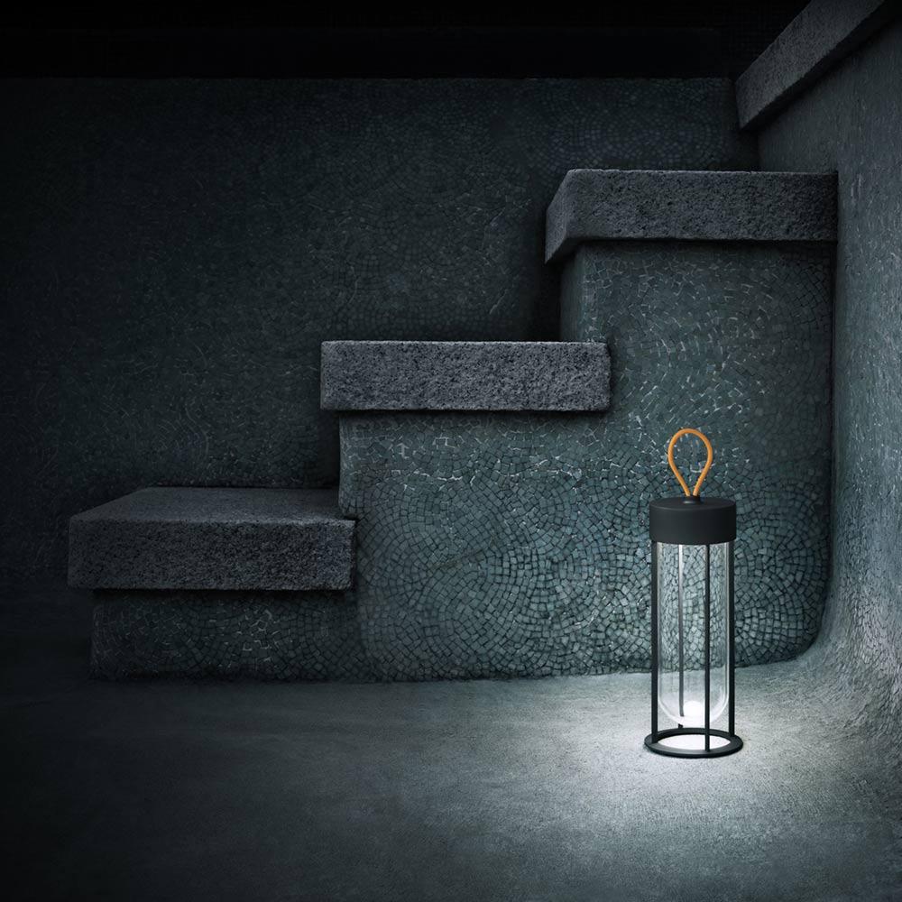 A brilliantly updated lantern-inspired design draws all eyes to the In Vitro LED Unplugged Table Lamp from FLOS.
