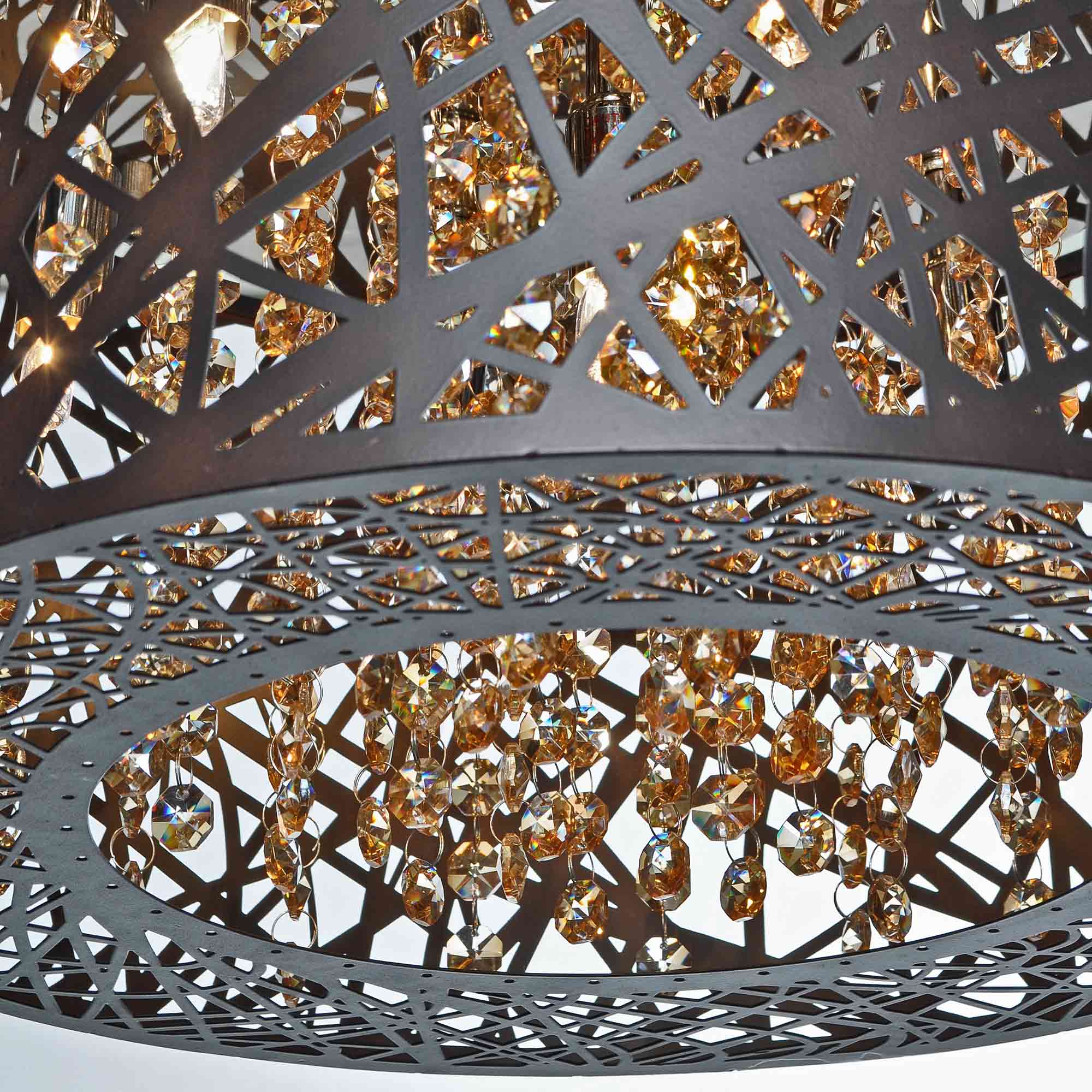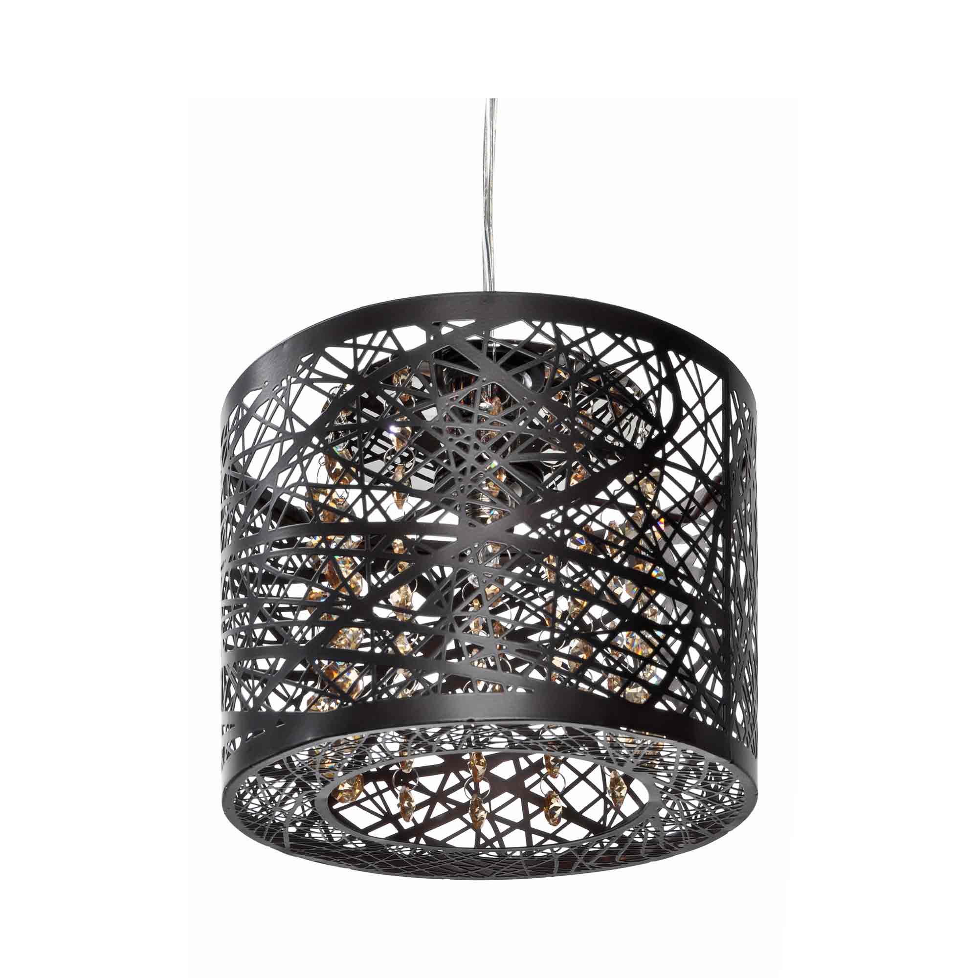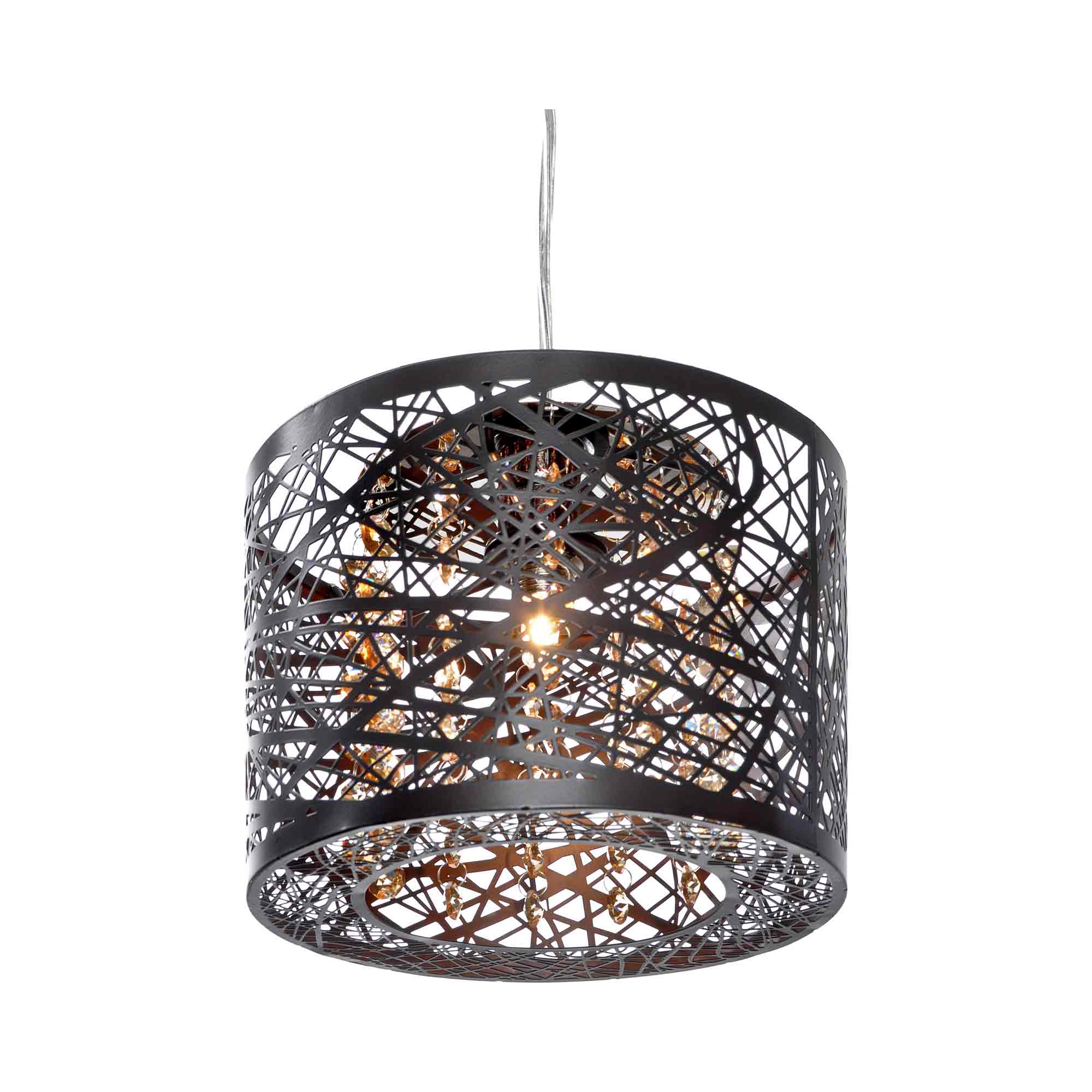 A laser cut shade adds modern artistry and precision to the glitter crystals tucked within the Inca Mini Pendant Light from ET2 Lighting.
