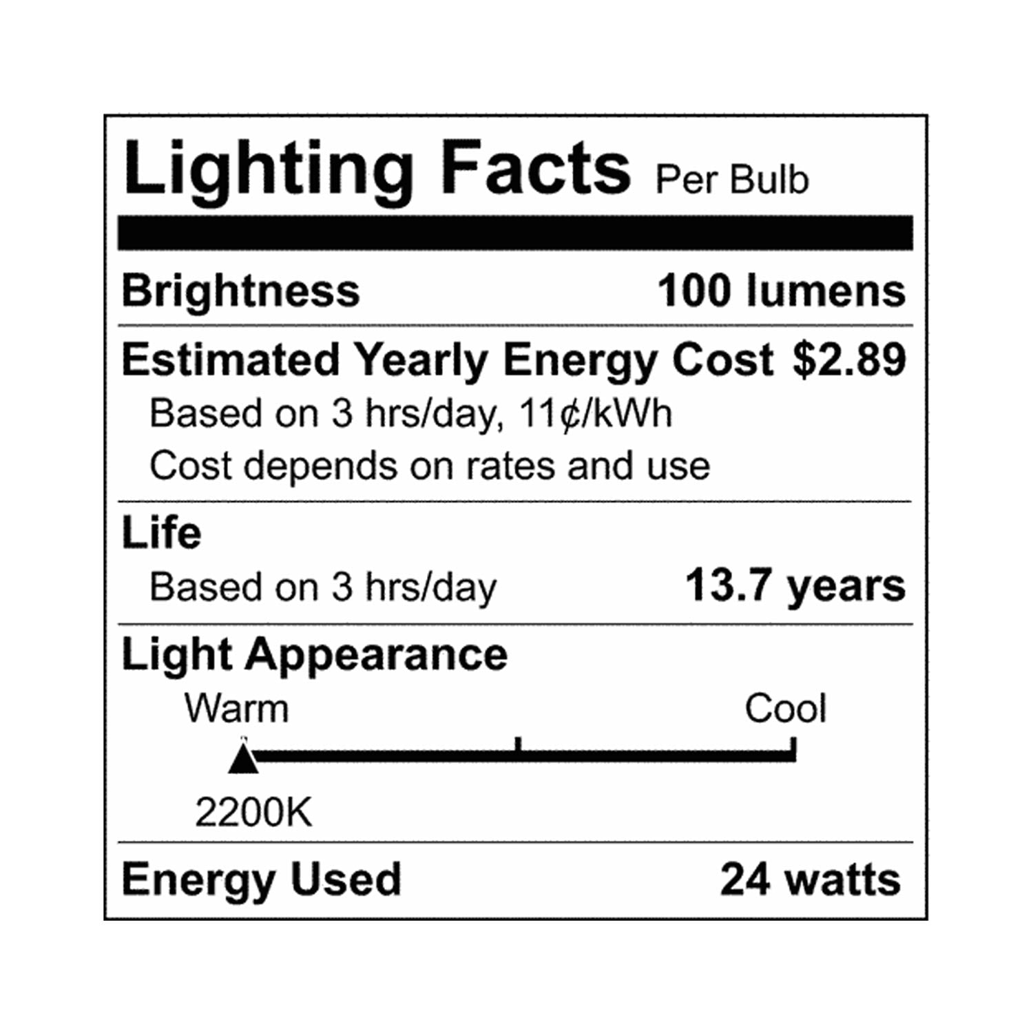 - LED/2W: 12 X 2W 120V LED; 100 lumens, 80 CRI, 2200K (included)