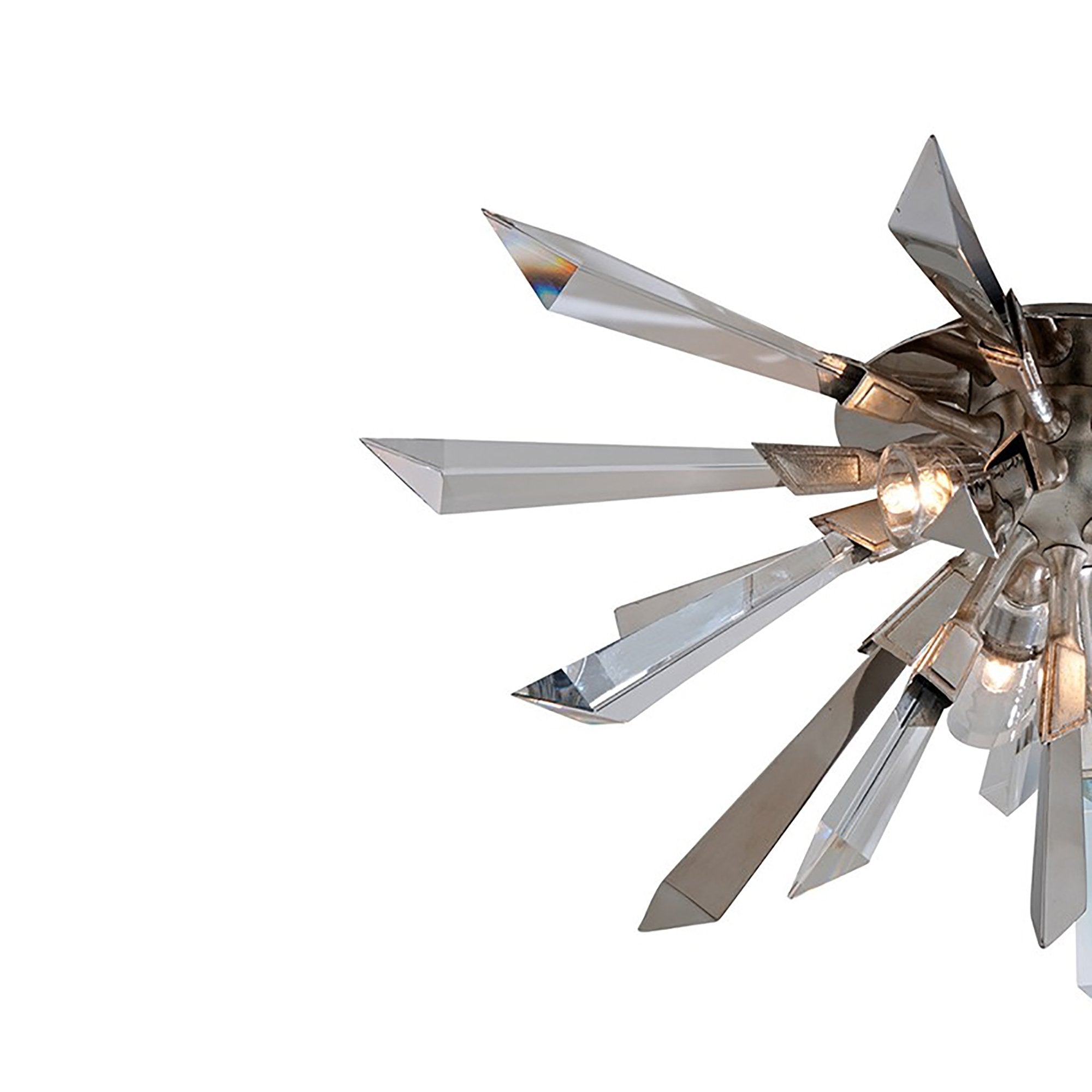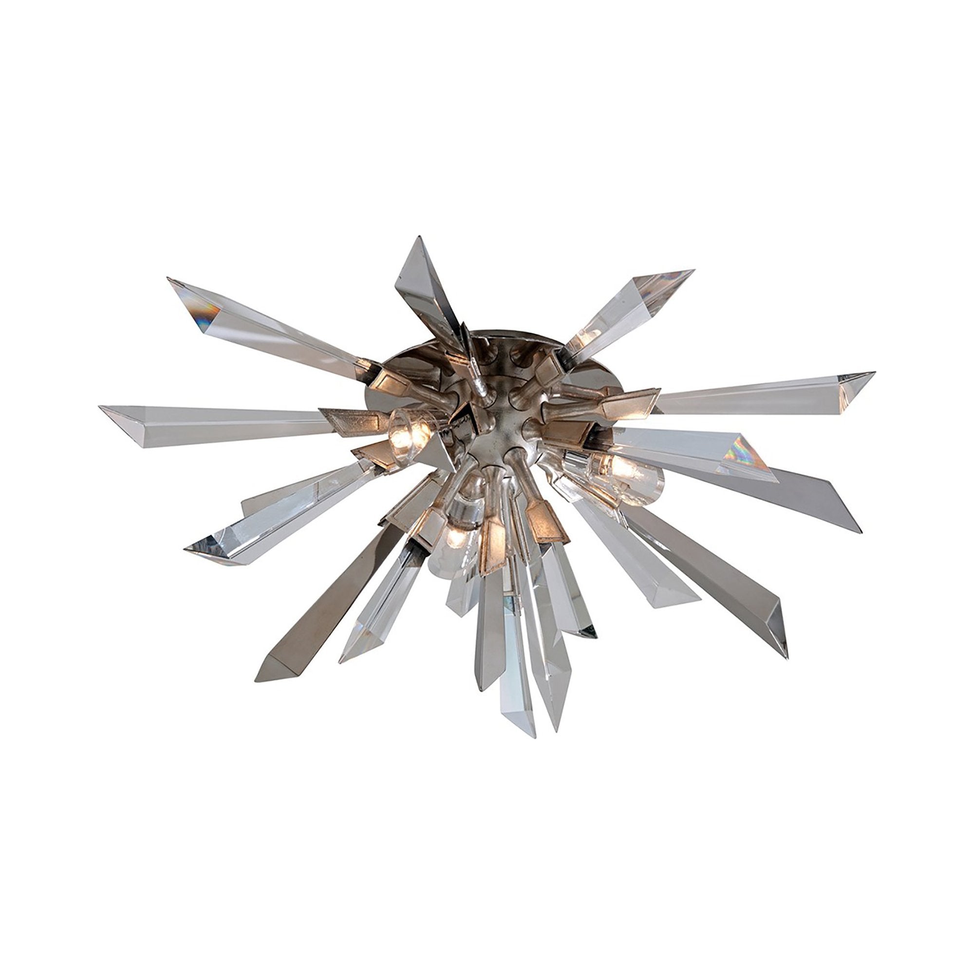 A tempting mix of space and retro flavor join to form the Inertia Flush Mount Ceiling Light from Corbett Lighting, bringing an artisanal look with abstract charm fit for any casual space.