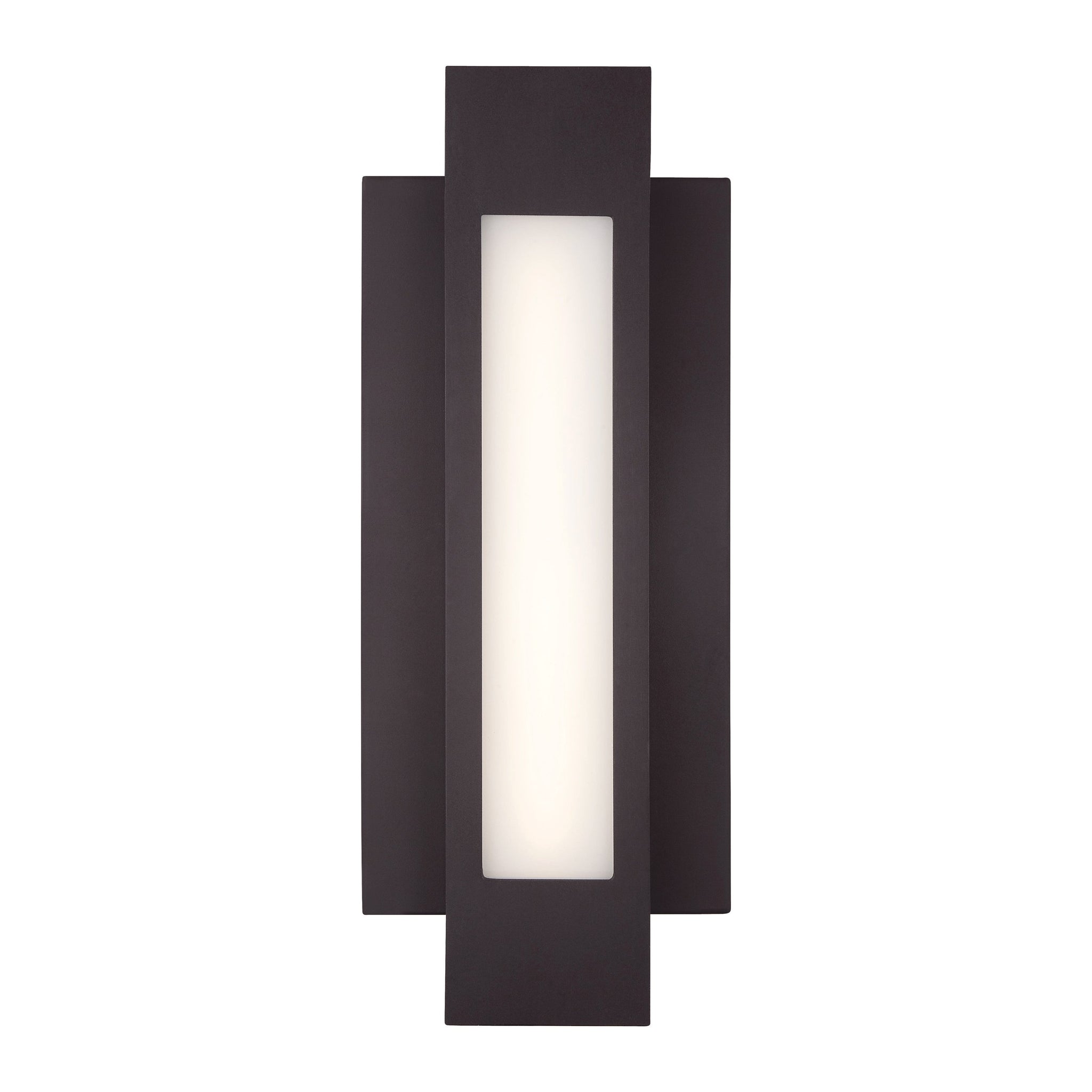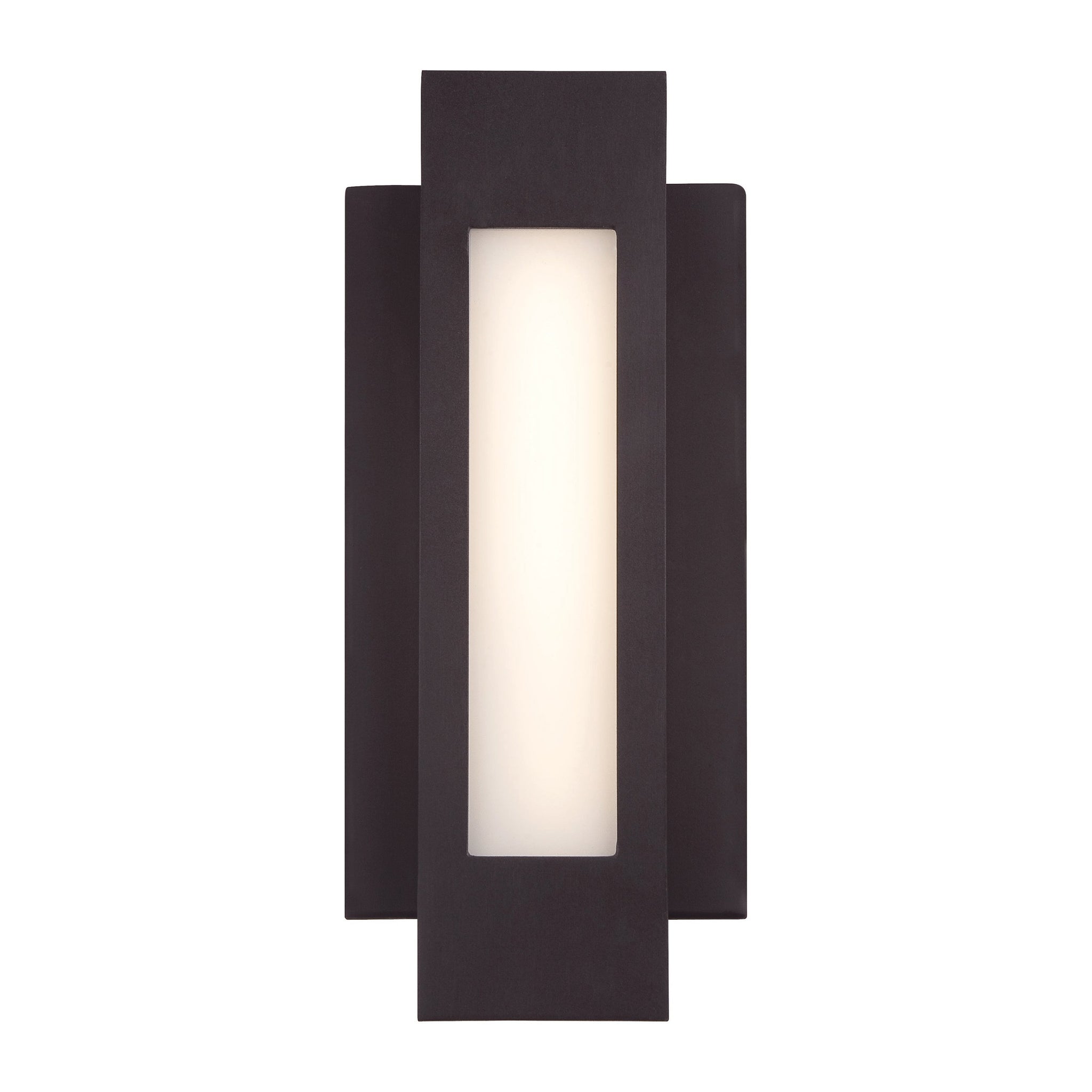 Sculptural flair highlights the minimalist pebble bronze finish and white screen printed glass of the Insert Outdoor LED Wall Light from George Kovacs.
