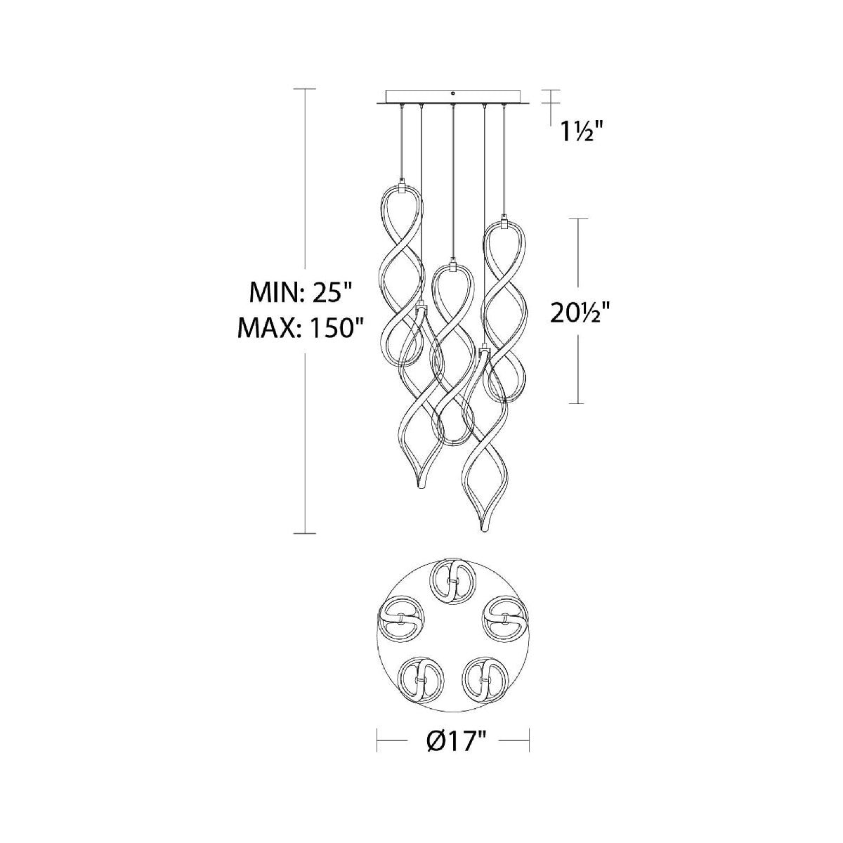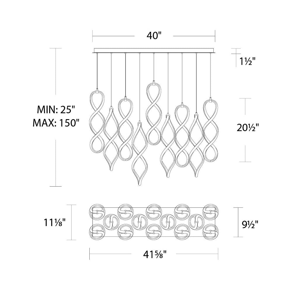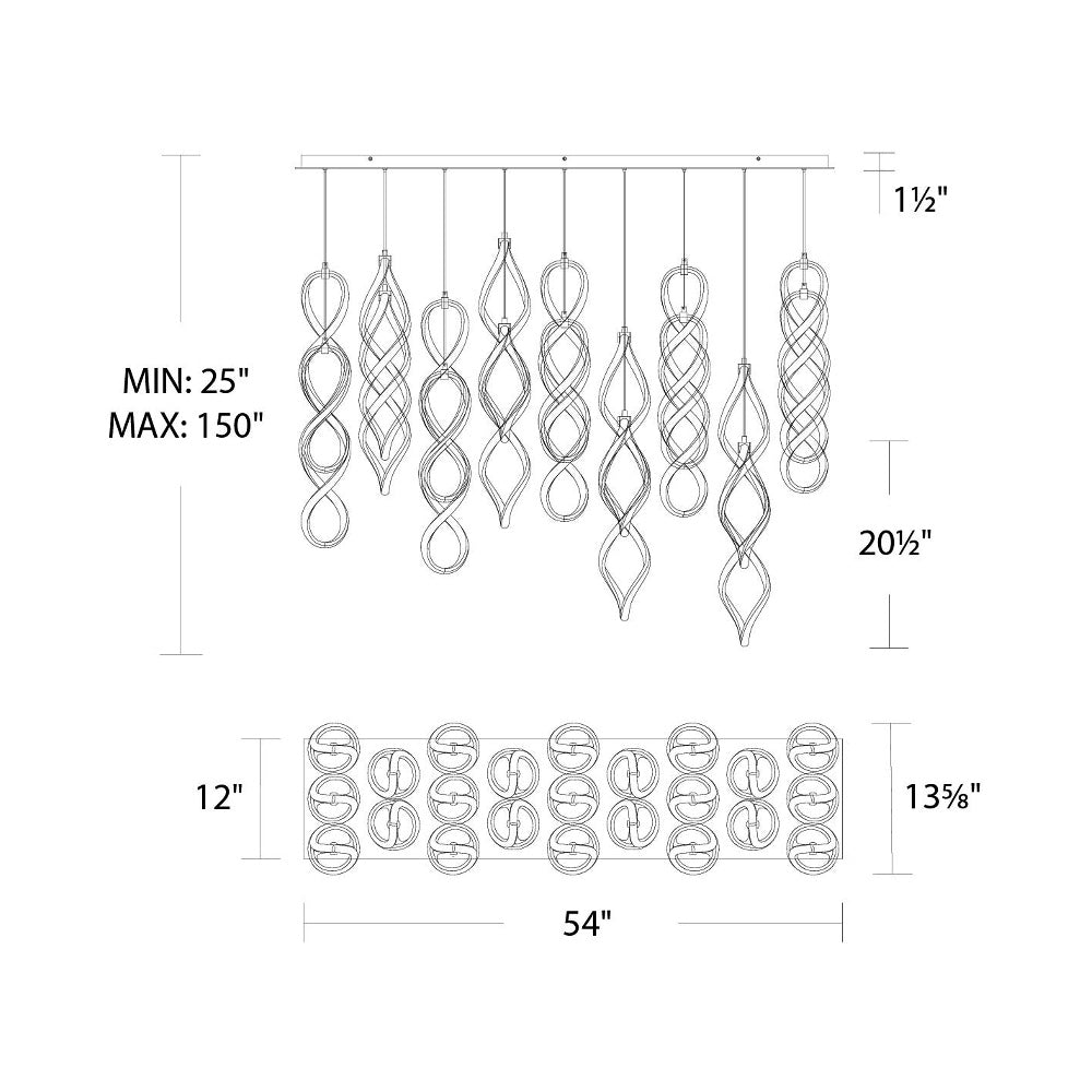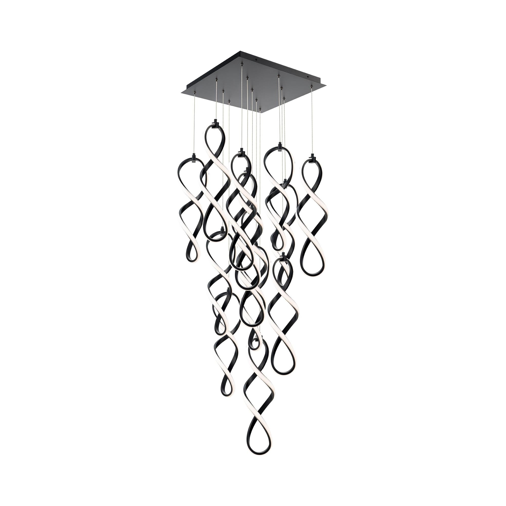 Myriad infinity spirals glow softly to create the intriguing, sculptural silhouette of the Interlace LED Chandelier from dweLED. It's a chic choice over a dining table or sophisticated living area, offering energy efficiency and diffused, omnidirectional lighting that creates a welcoming ambiance. Includes selectable color temperature with five settings for the perfect ambiance.
