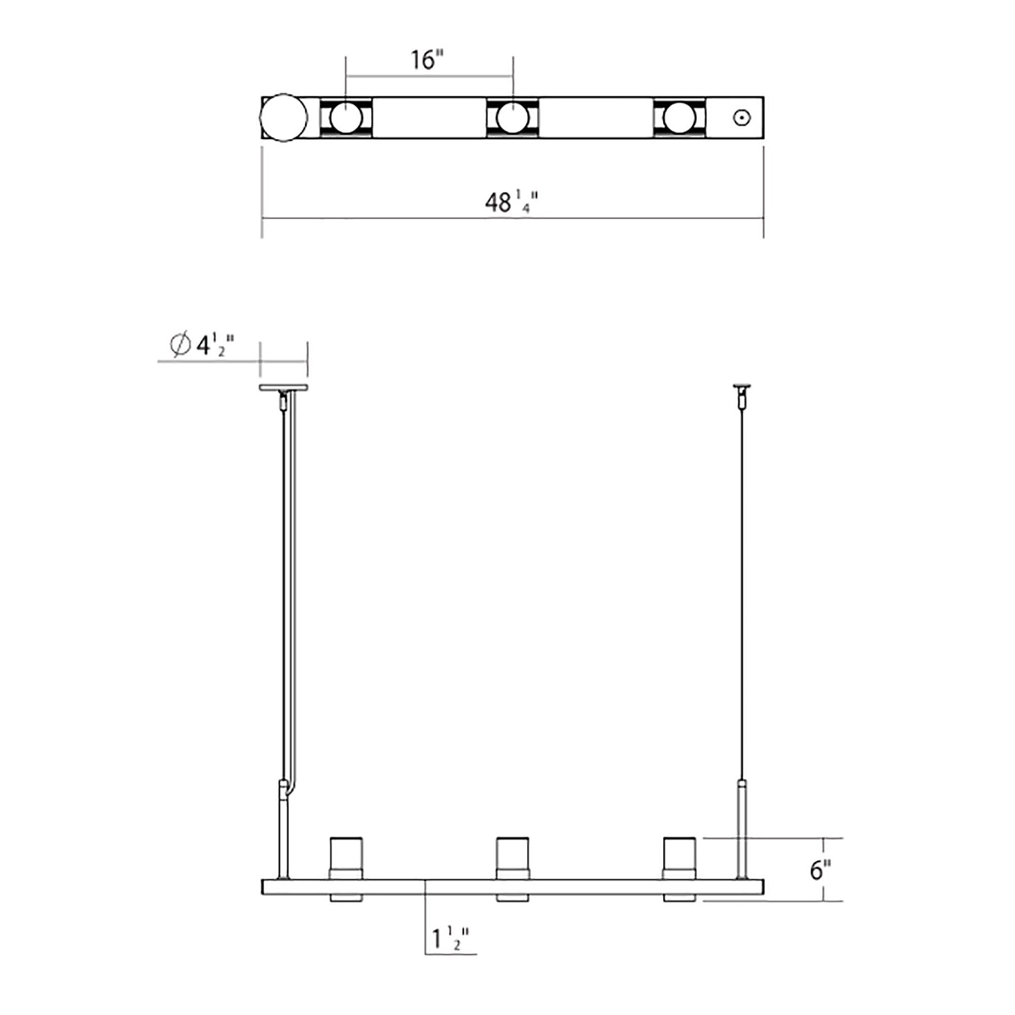 - 3-Light: 48.25"W X 11.5"H; 134.25" max height