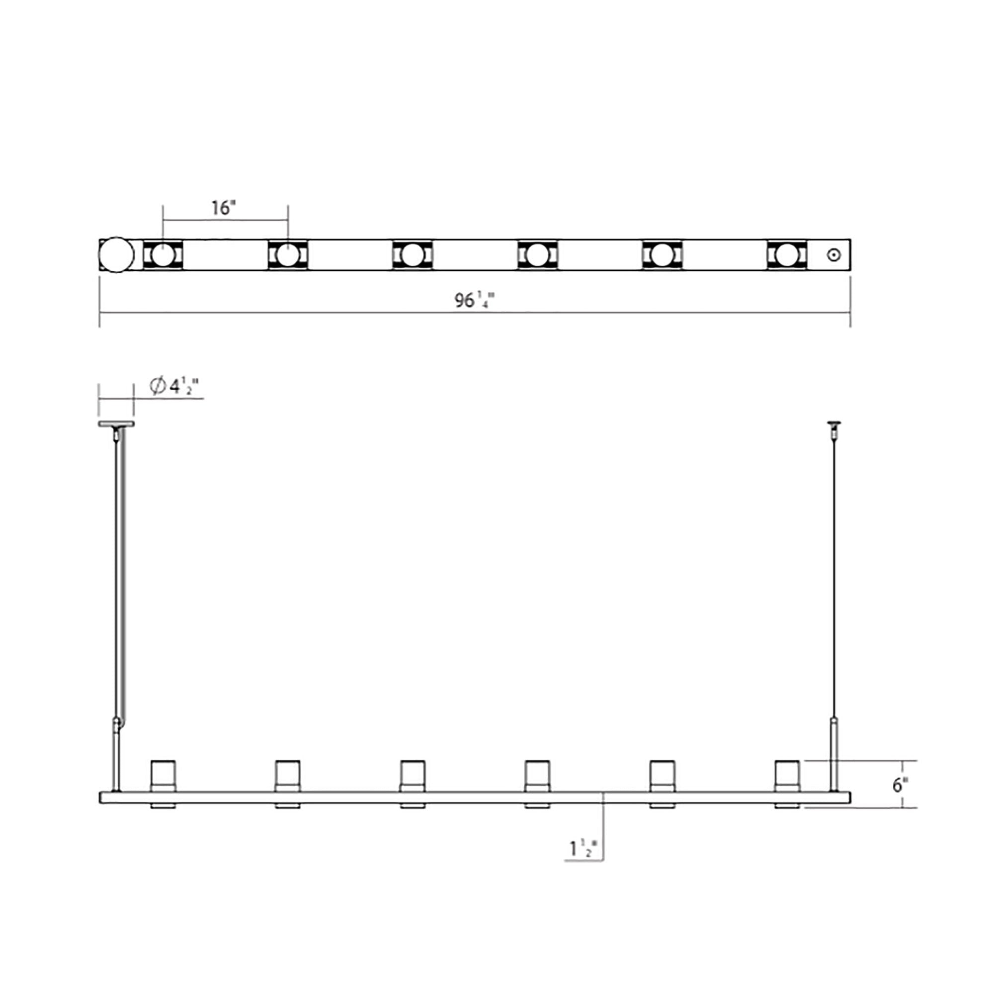- 6-Light: 96.25"W X 11.5"H; 134.25" max height