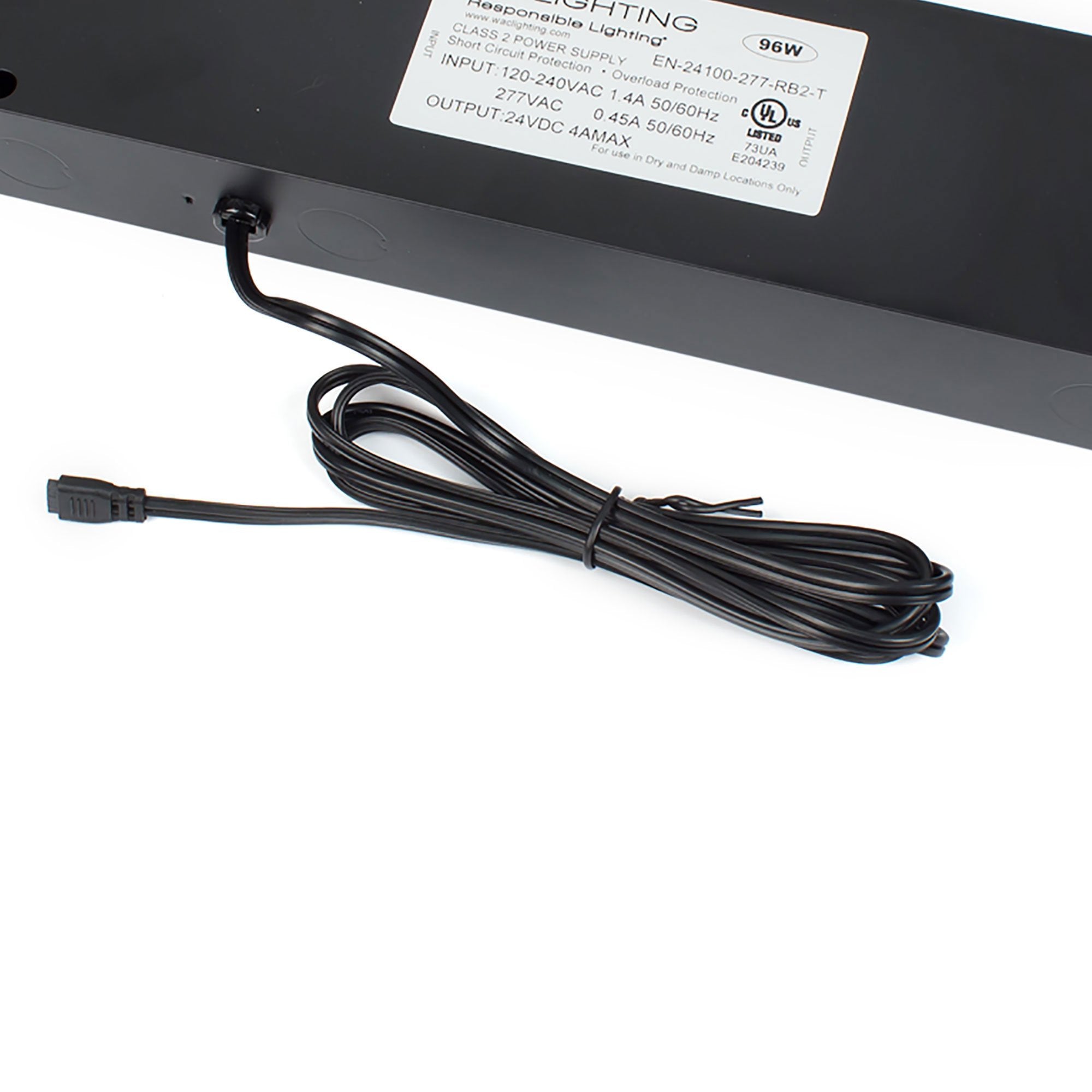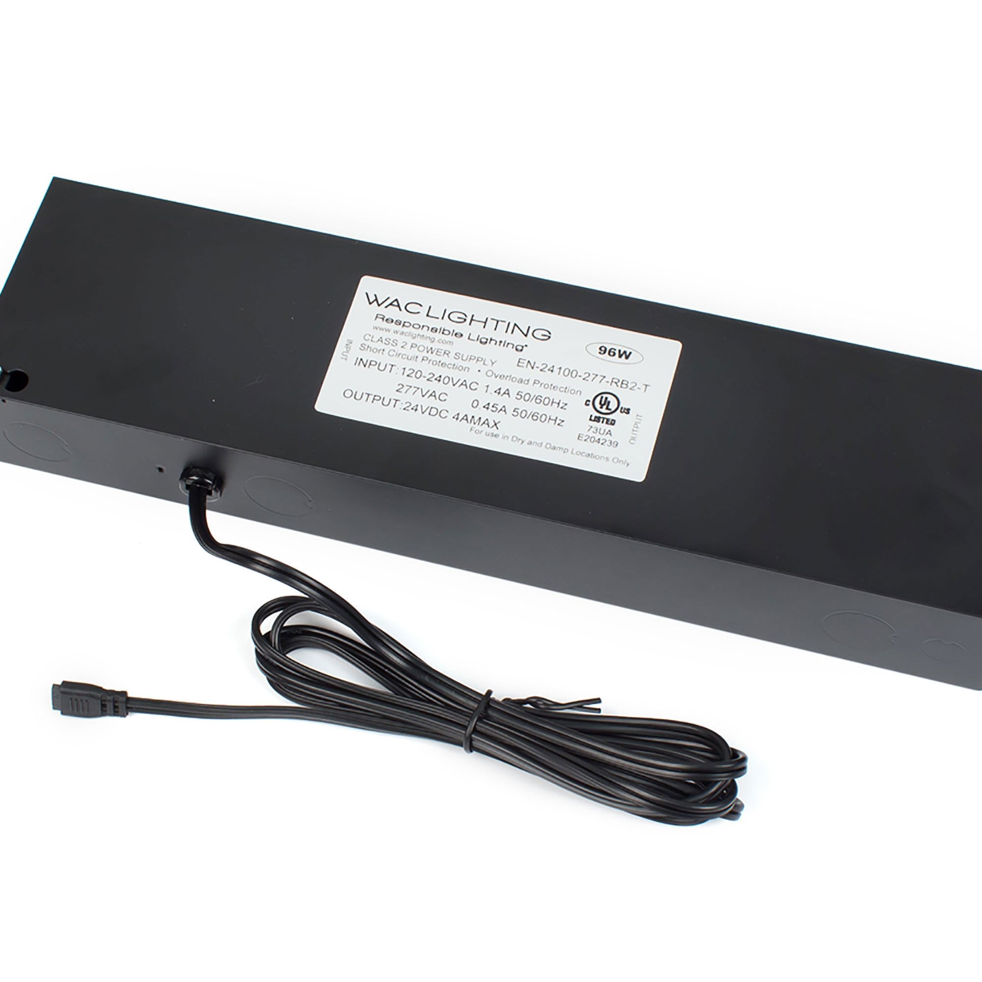 Take advantage of energy efficiency and an input of 120-277 VAC with this InvisiLED Enclosed 96W 24V Class 2 Power Supply from WAC Lighting. A preinstalled six-foot lead wire is also compatible with Straight Edge, Line, Line 2.0, HR-LED87, and HRLE90 fixture applications.