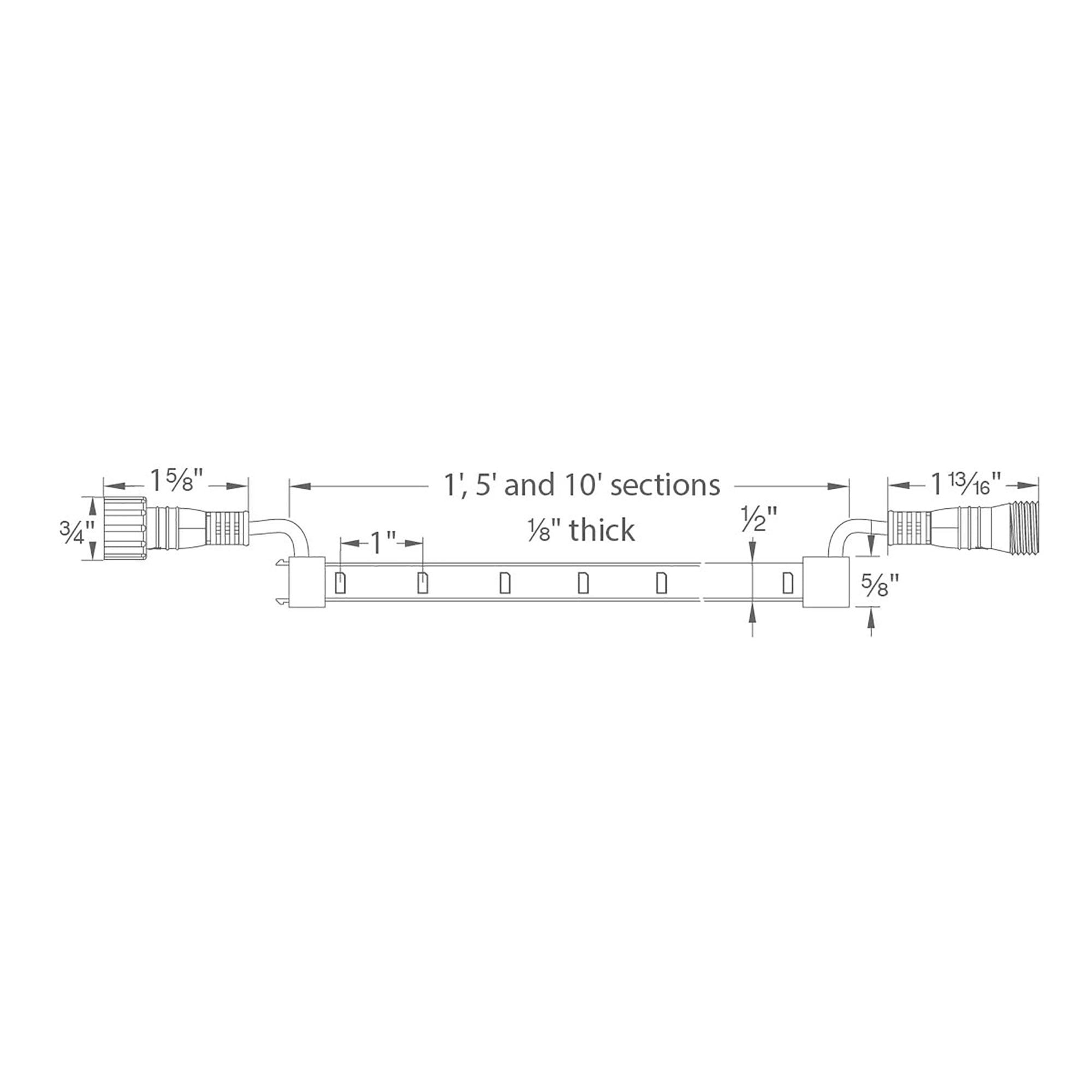 - 5 Feet: 60"L X 0.5"W X 0.13"H