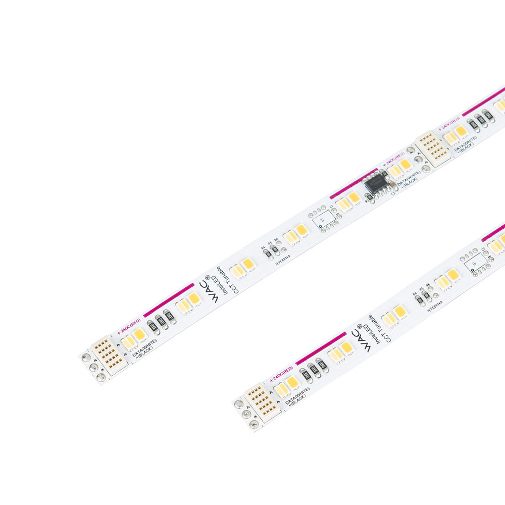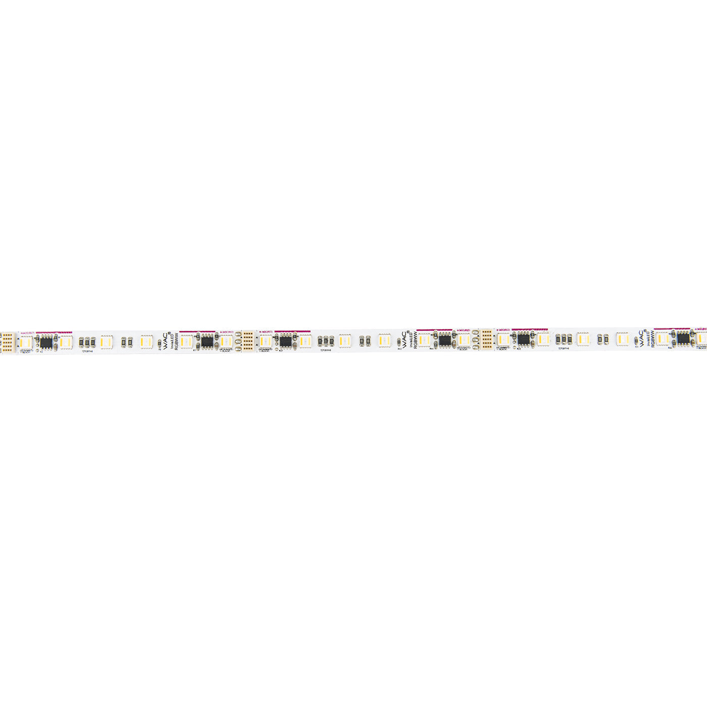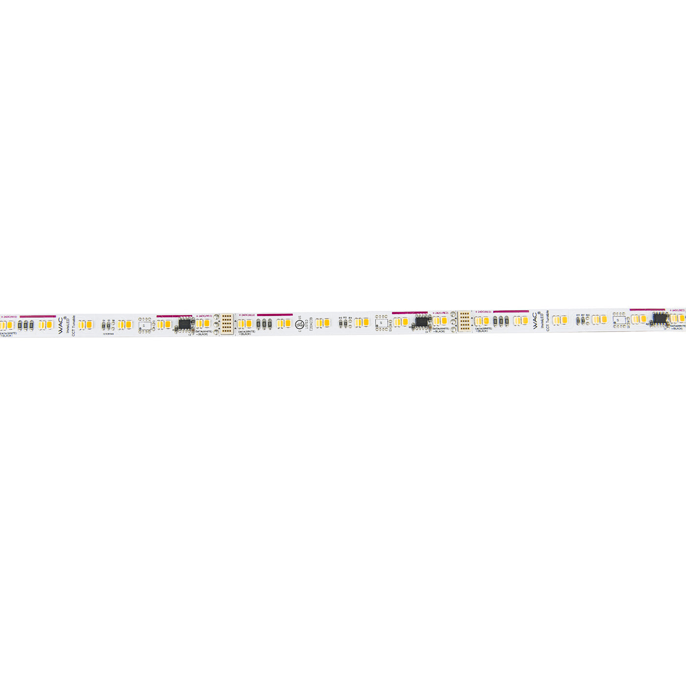 Easy to cut and install, the InvisiLED® RGBWW Tape Light from WAC Lighting may be controlled through a downloaded link for easy use. This energy-efficient tape features a gold plated connector to protect against corrosion and heat as well as to ensure a reliable connection, and may be tuned to reach a desired CCT. Strong adhesive bonding keeps tape in place.