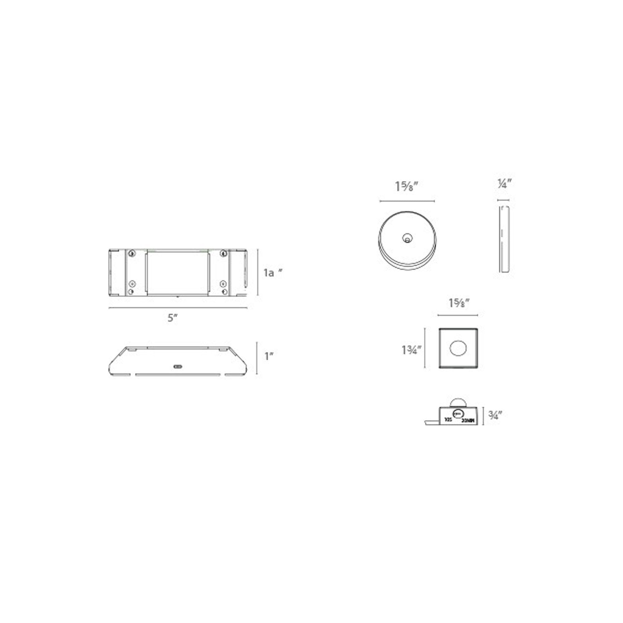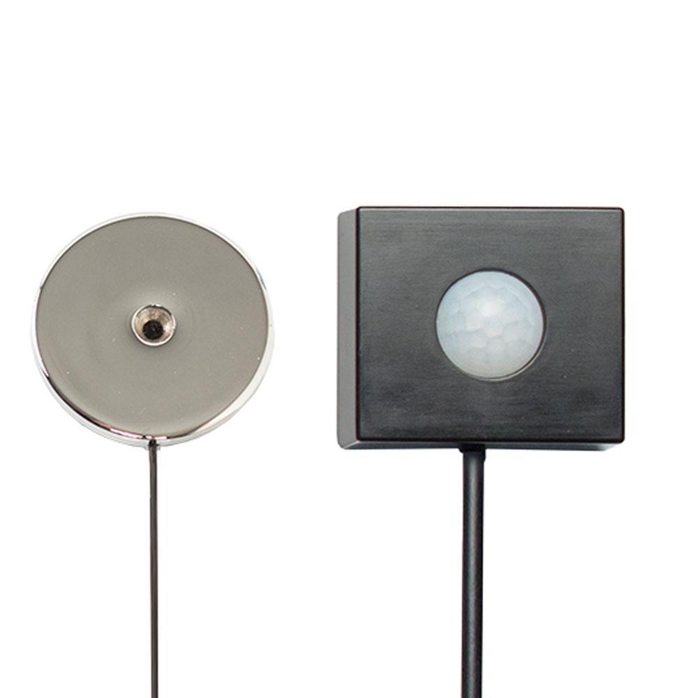 Intelligent motion and touch switch control of luminaires based on occupancy, compatible with wide range of WAC Lighting low voltage LED lighting luminaires. Can be used with any WAC Lighting 12V or 24V electronic low voltage system, including Button Lights, InvisiLED Tape light, Line, and Straight edge. Programmed with three functions, TOUCH and SENSOR To activate both motion sensor and touch switch. TOUCH Only touch switch, inactivate motion sensor. SENSOR Only motion sensor, inactivate touch switch. Built-in adjustable timer on motion sensor allows automatic shut off after the sensor covered area is vacated. Maximum time delay is 20 minutes (20MIN), minimum is 10 seconds (10S). Motion sensor supplied with 18ft wire and touch panel supplied with 8ft wire. May be cut to desired length. Lengthening of wire is not recommended as will decrease sensitivity. Two different mounting options (screw or double sided tape mounting) for all under cabinet application included. Choose appropriate mounting option for rough, smooth and curved surfaces.