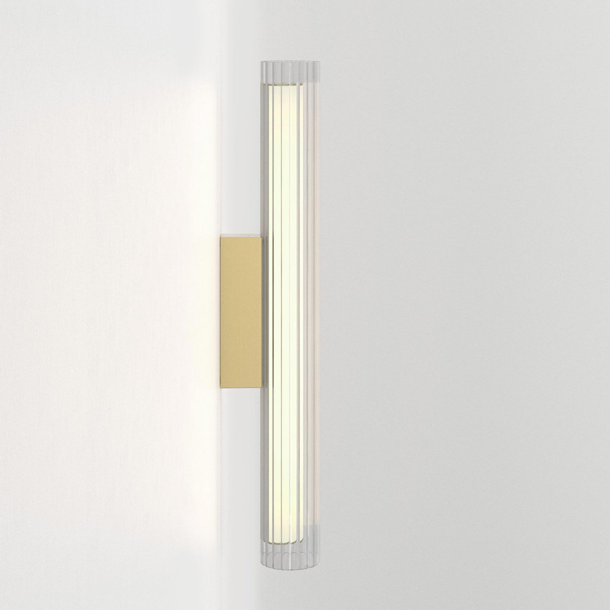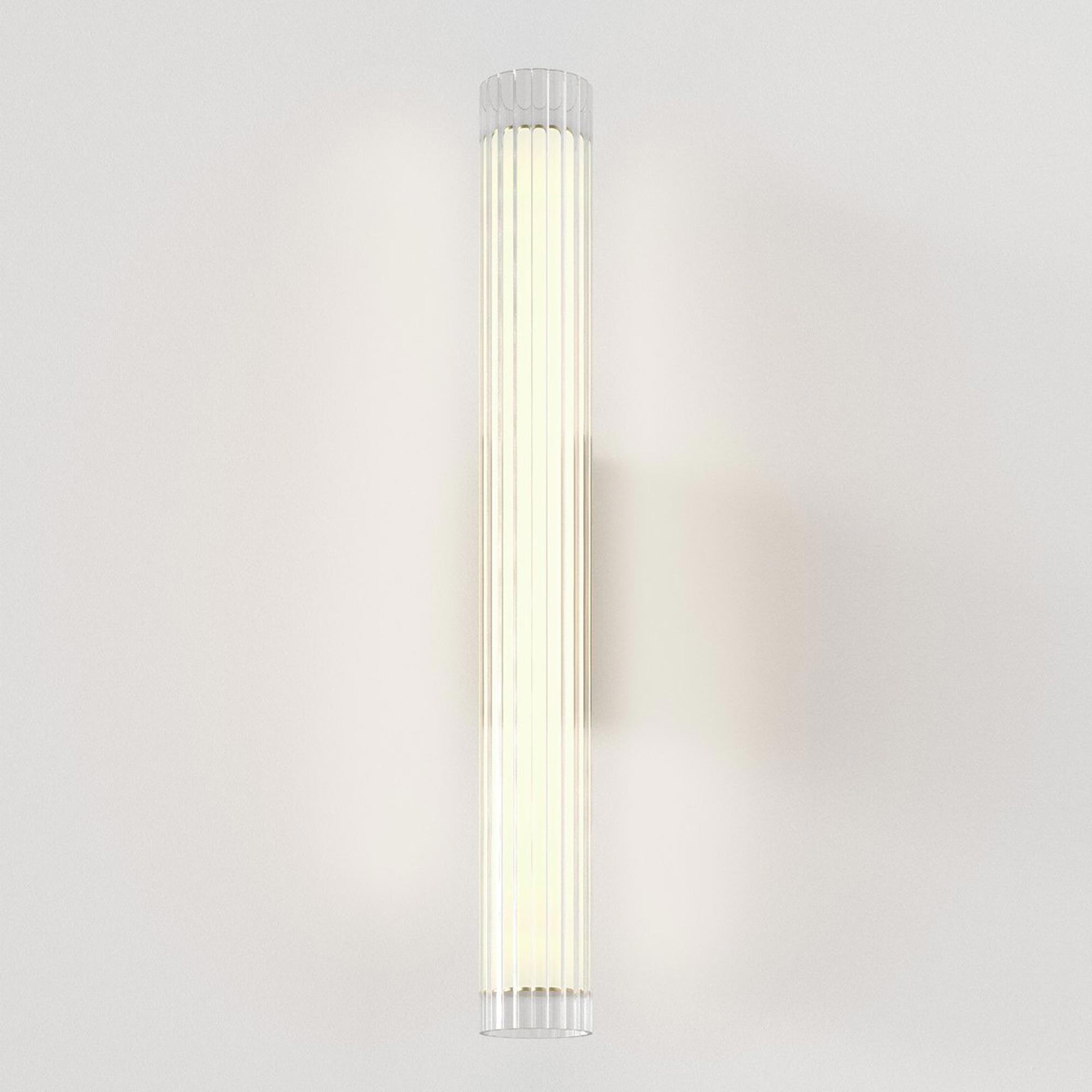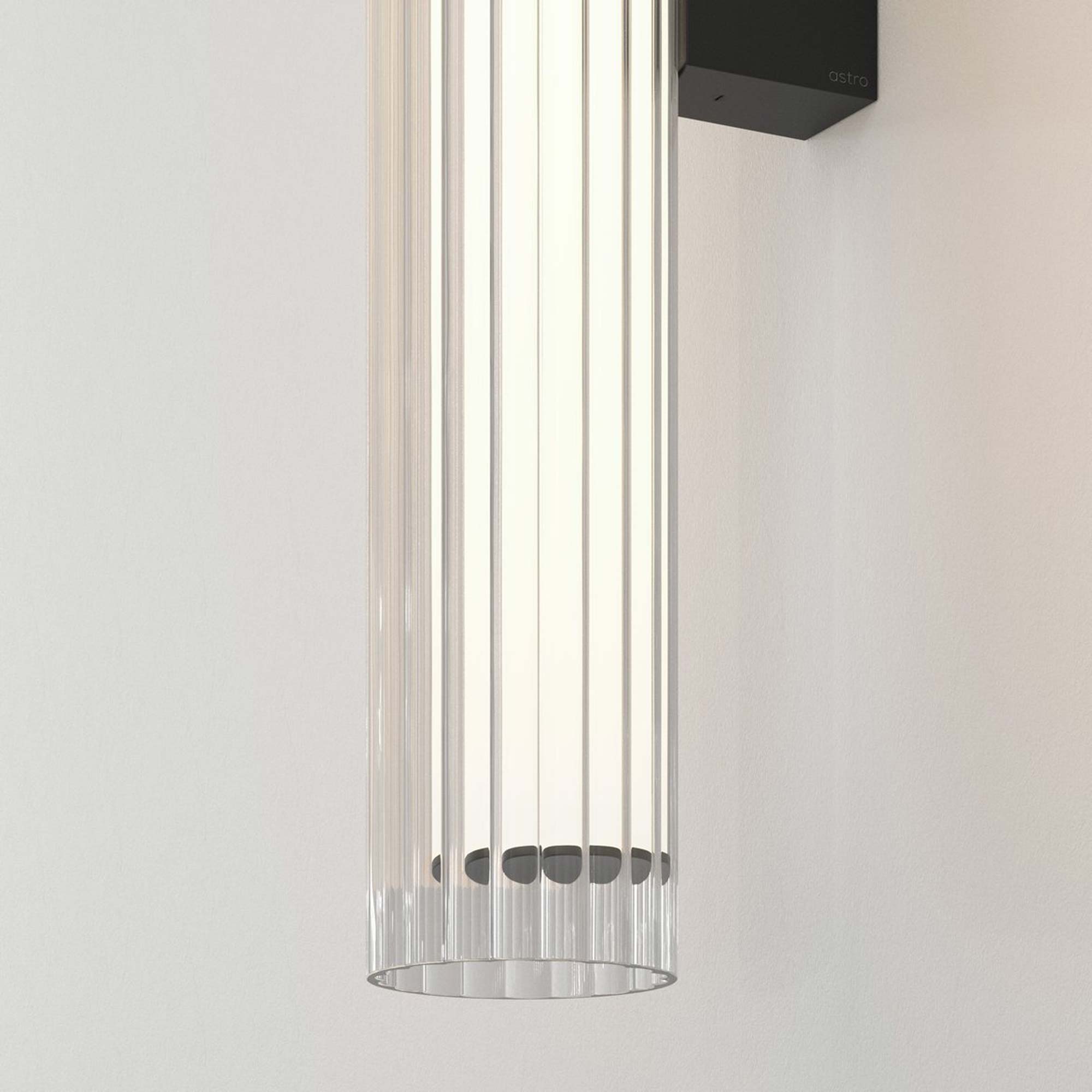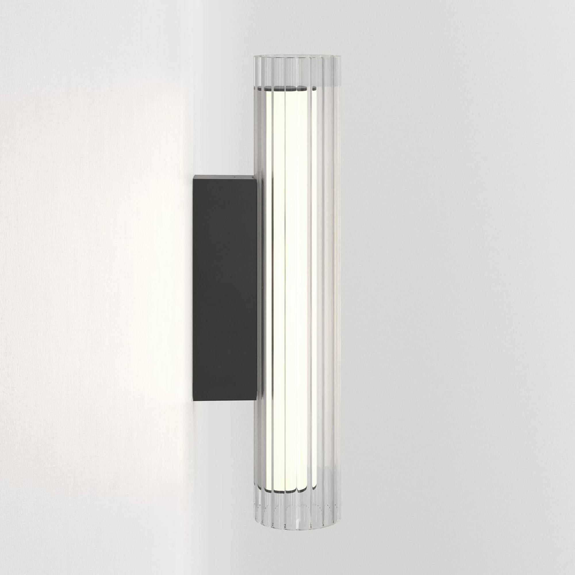 The use of glass in lighting design is common, but the io LED Wall Light from Astro Lighting takes it to a new level with a chic look and sophisticated presence. A textured glass cylinder shade mounted to metal delivers an exquisite style motif, slender and eye-catching. This energy-efficient bathroom light frames vanities or other living spaces with sheer elegance.