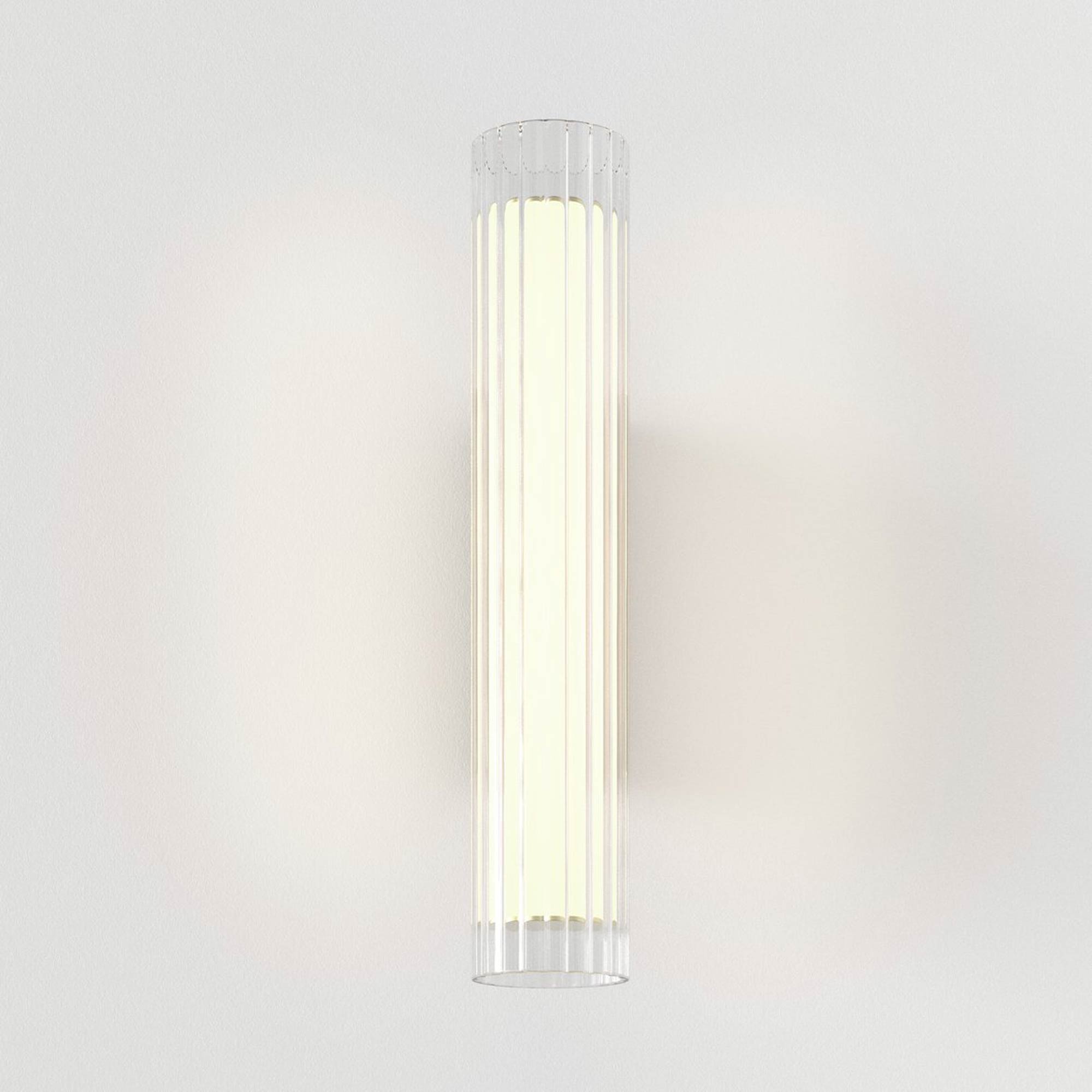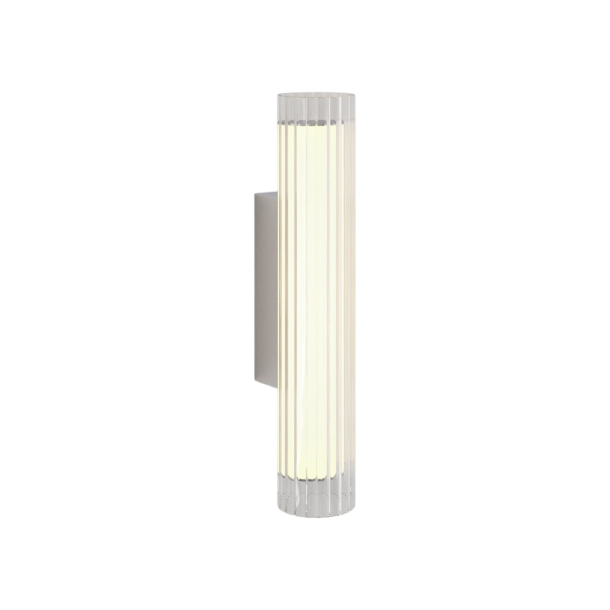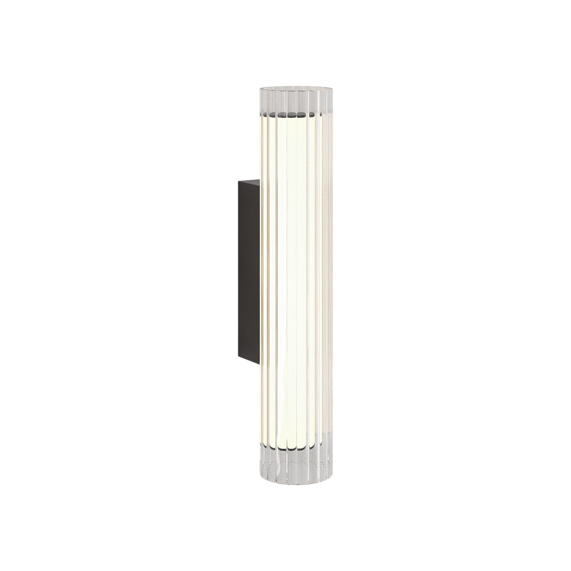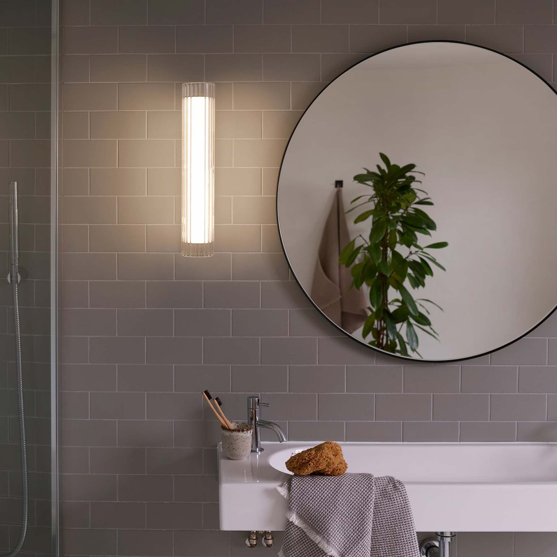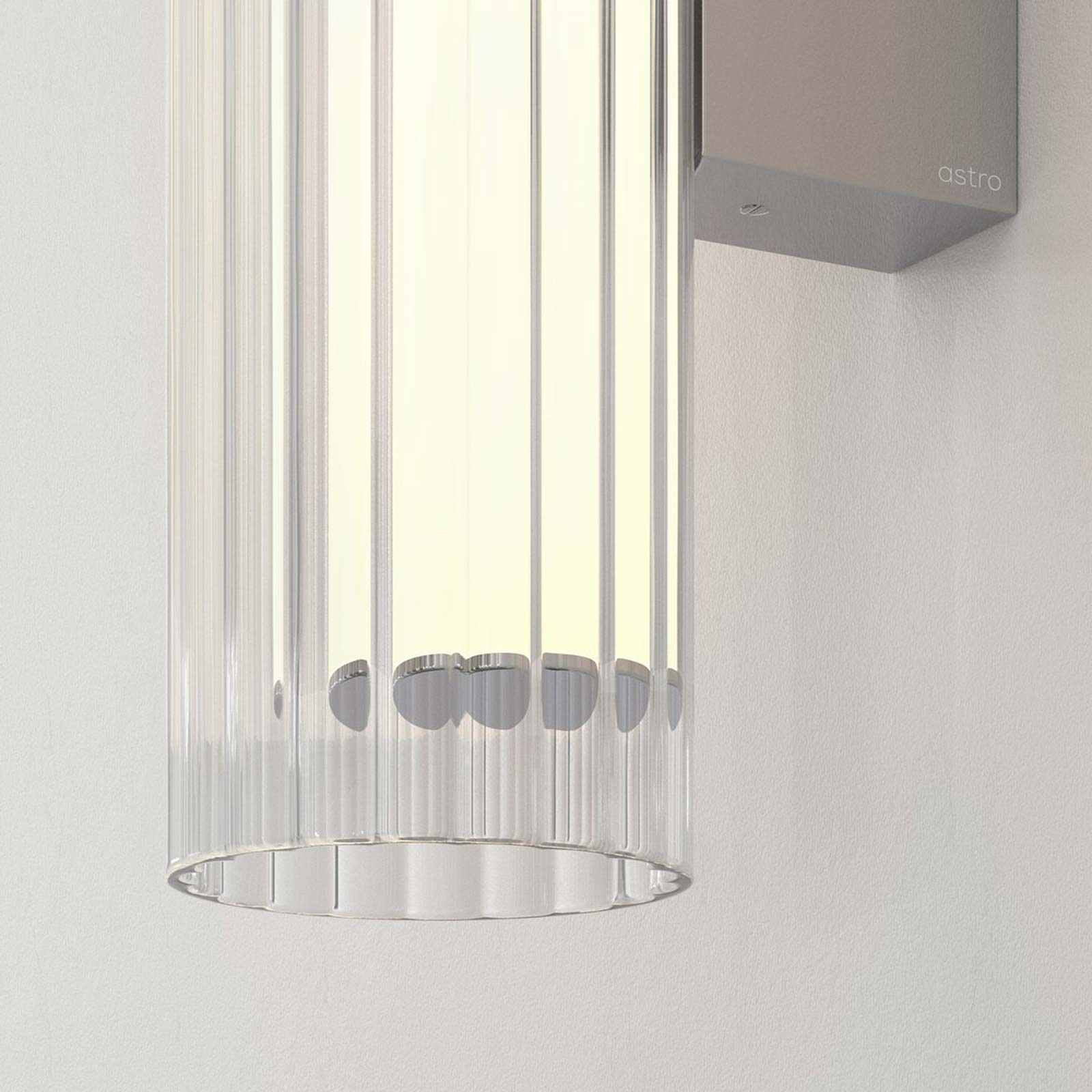 The use of glass in lighting design is common, but the io LED Wall Light from Astro Lighting takes it to a new level with a chic look and sophisticated presence. A textured glass cylinder shade mounted to metal delivers an exquisite style motif, slender and eye-catching. This energy-efficient bathroom light frames vanities or other living spaces with sheer elegance.