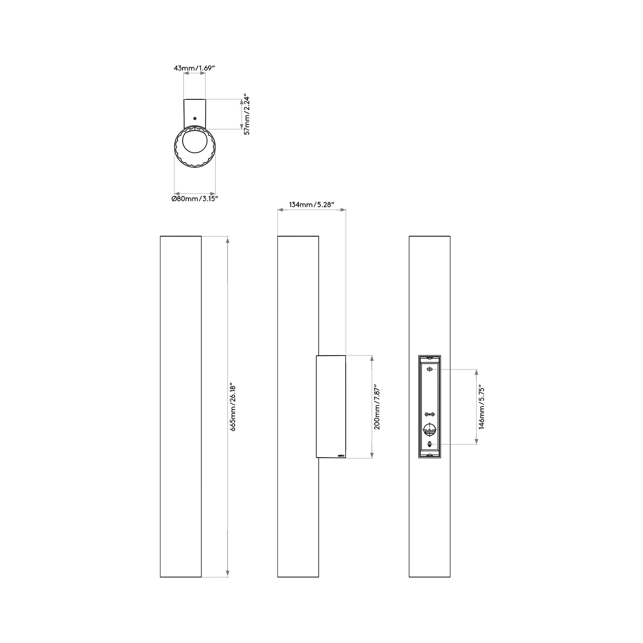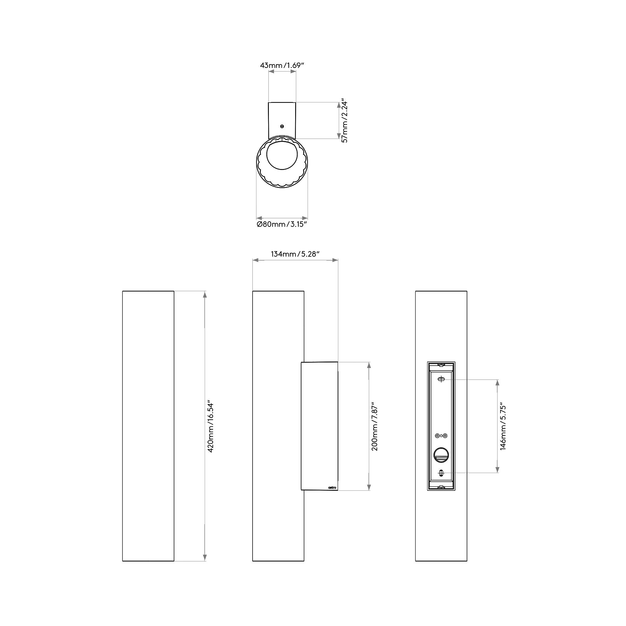 - Backplate: 1.69"W X 7.87"H