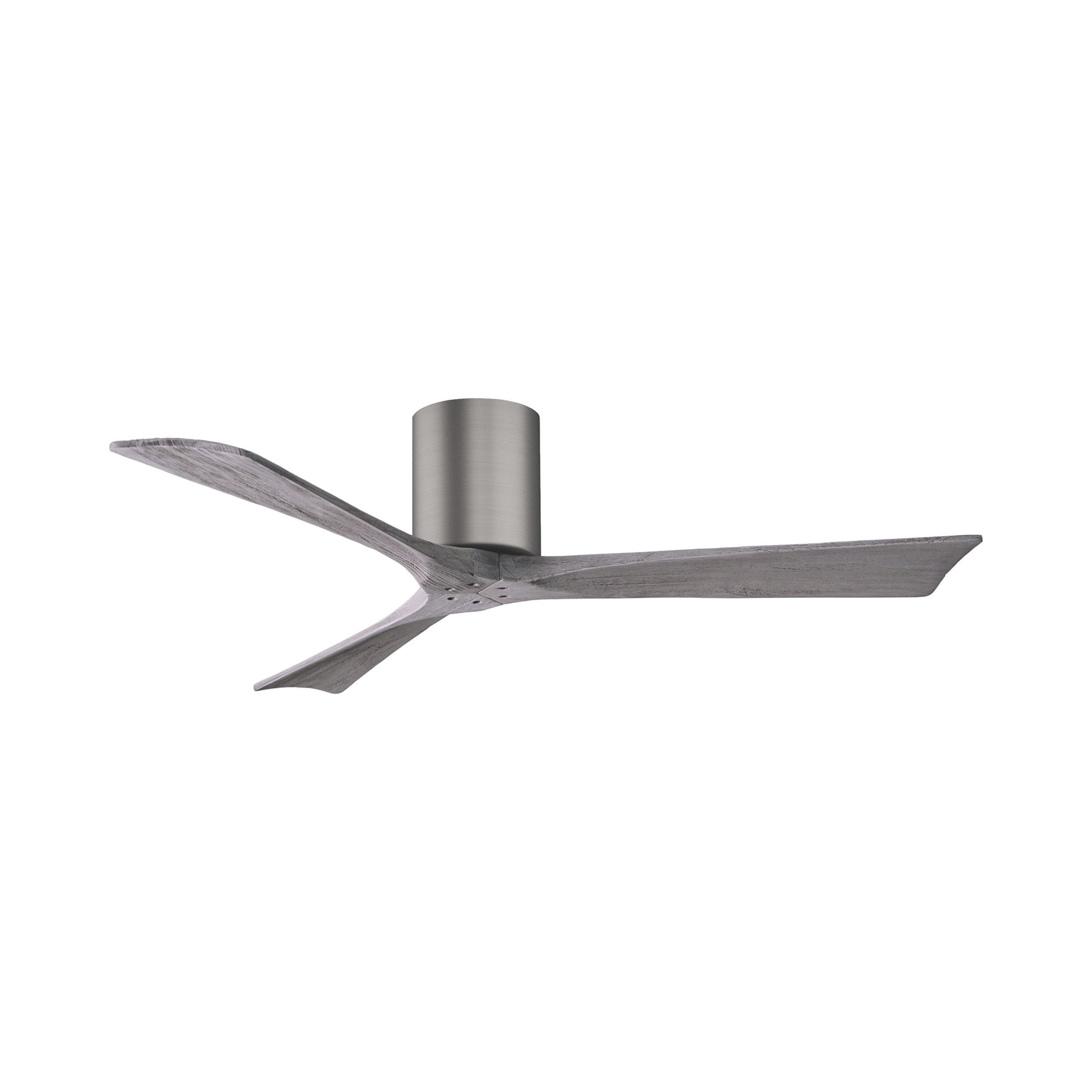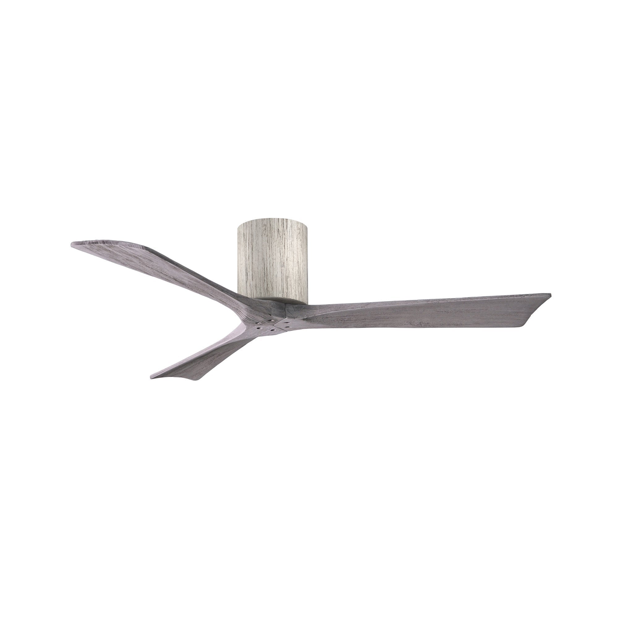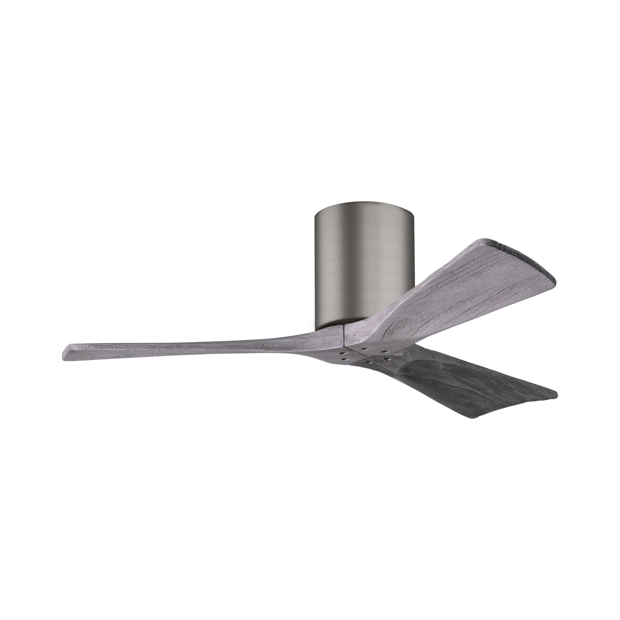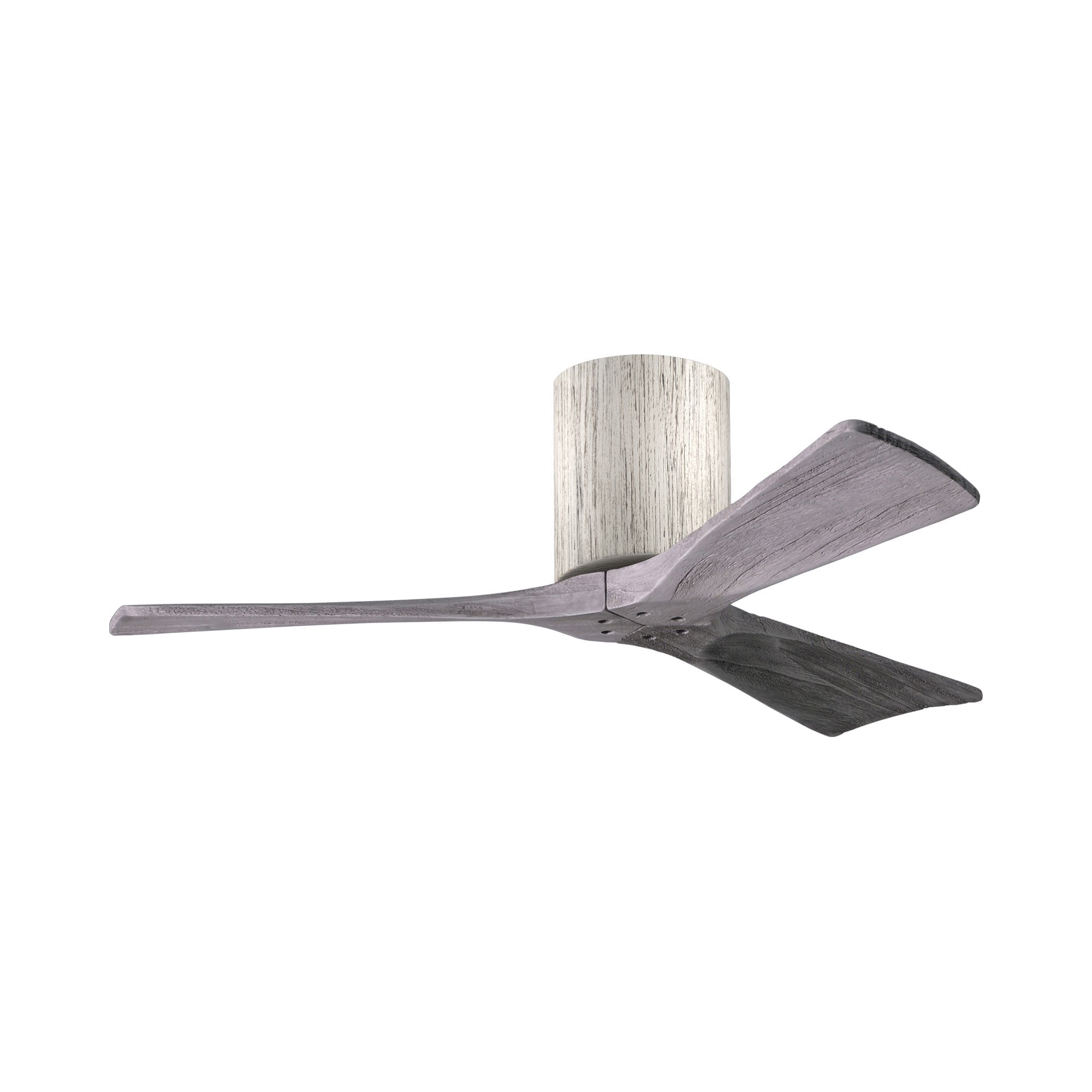 An expert pairing of rustic blades and a modern cylindrical housing creates a bold, beautiful look for the Irene IR3H Indoor / Outdoor Ceiling Fan from Matthews Fan Company.