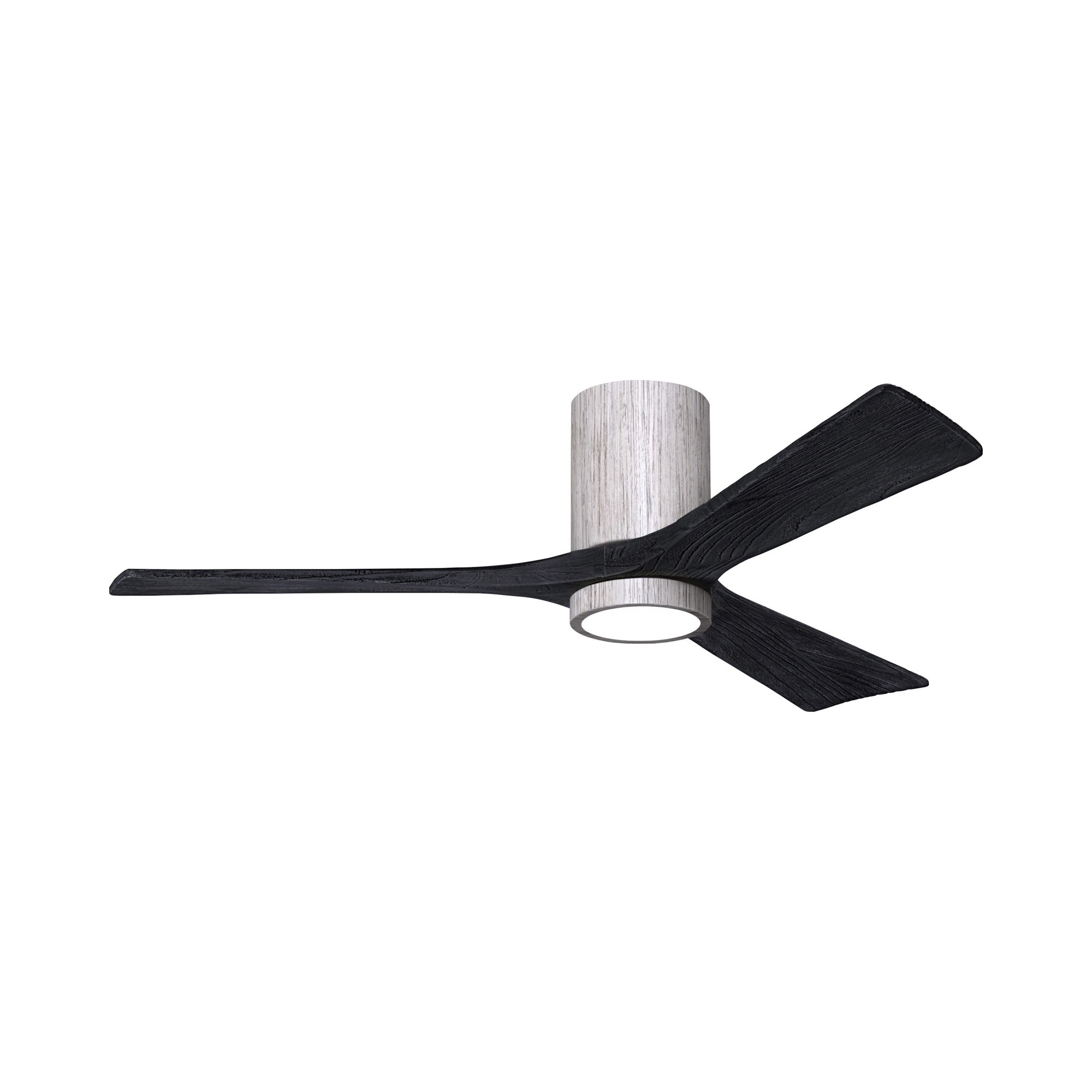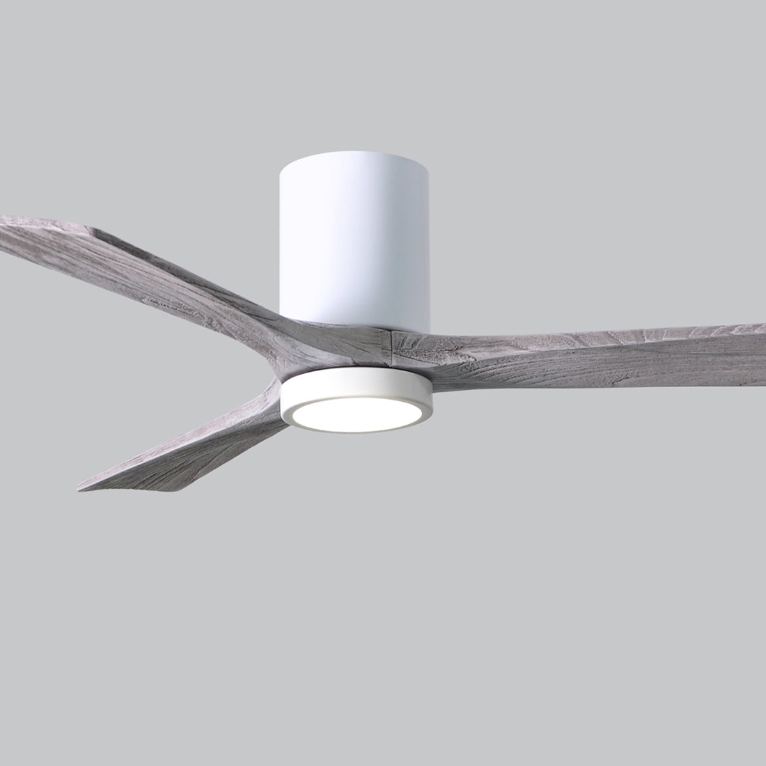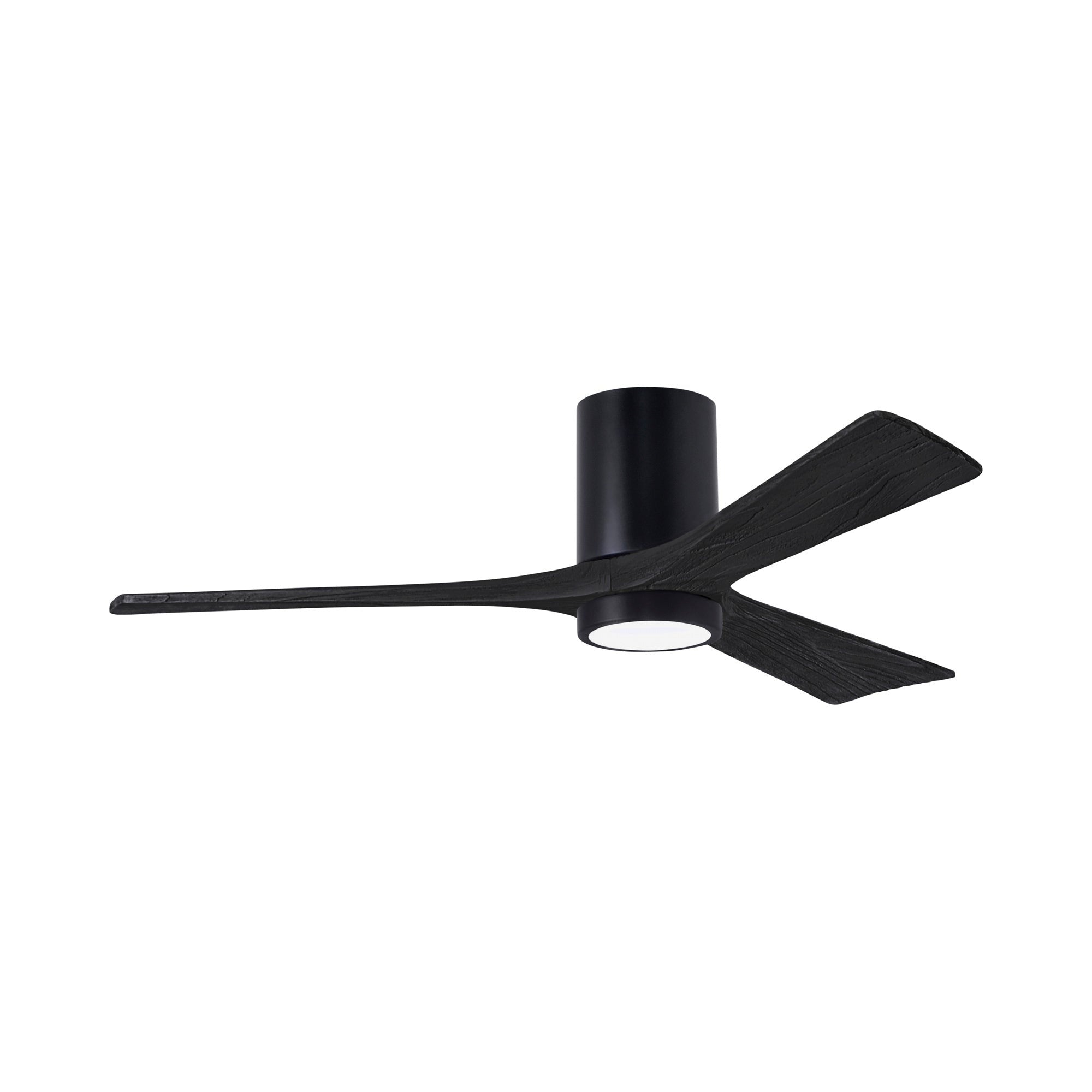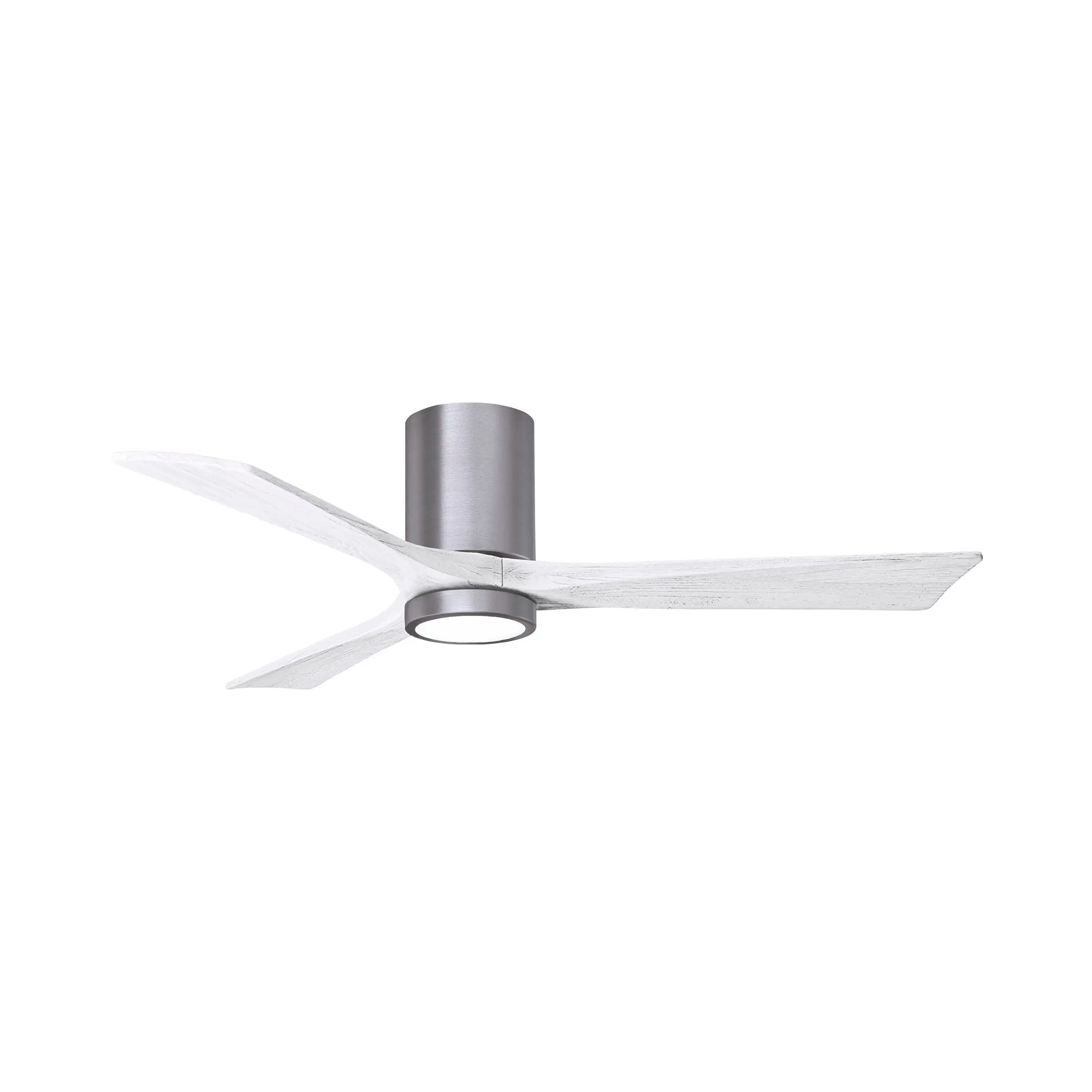 A sleek cylindrical housing, an energy-efficient light, and streamlined blades create a chic, modern ambiance for the Irene IR3HLK 52-Inch Indoor / Outdoor LED Flush Mount Ceiling Fan from Matthews Fan Company.