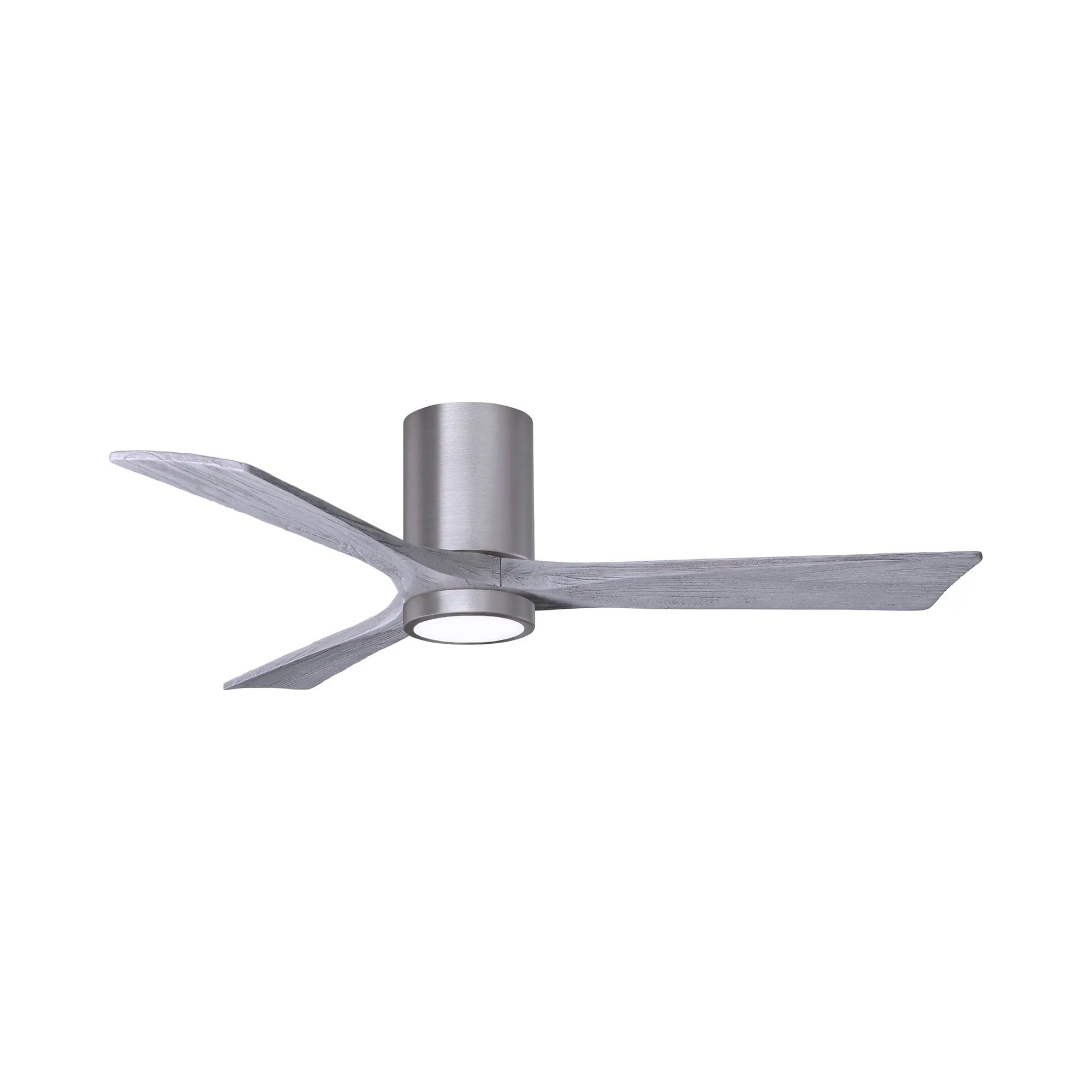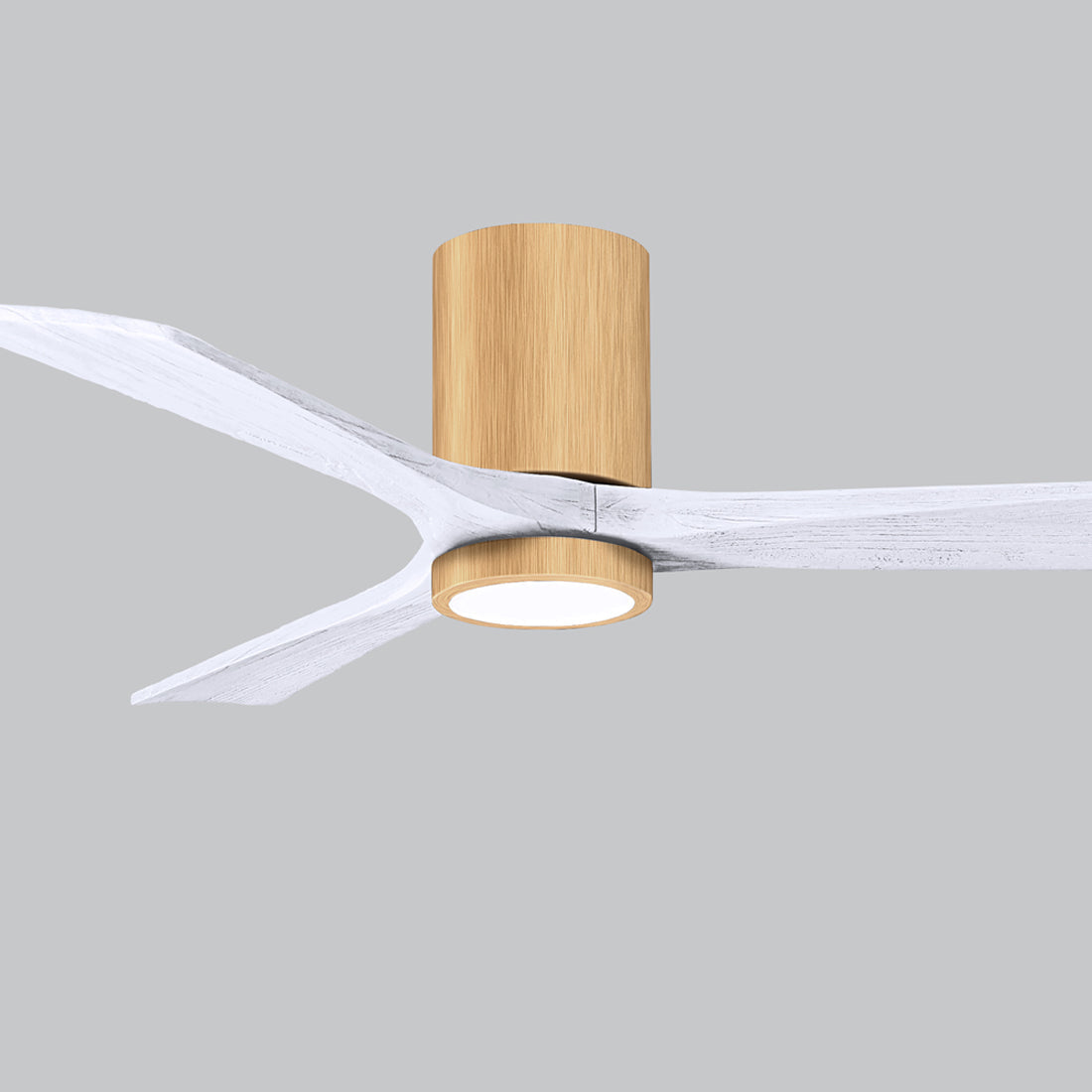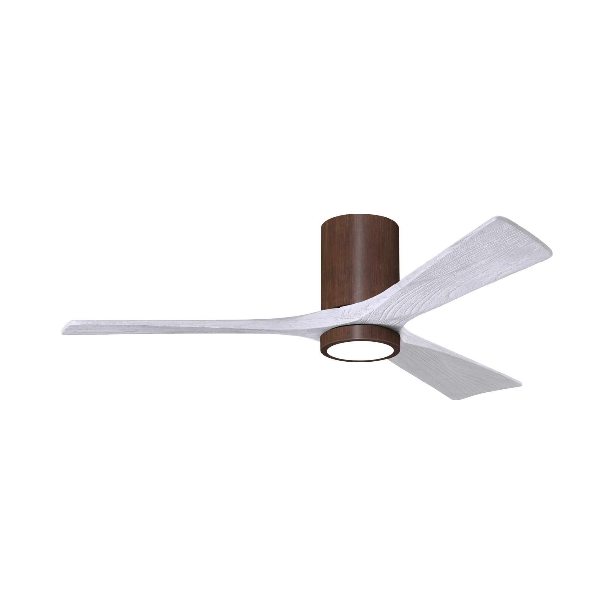 A sleek cylindrical housing, an energy-efficient light, and streamlined blades create a chic, modern ambiance for the Irene IR3HLK 52-Inch Indoor / Outdoor LED Flush Mount Ceiling Fan from Matthews Fan Company.