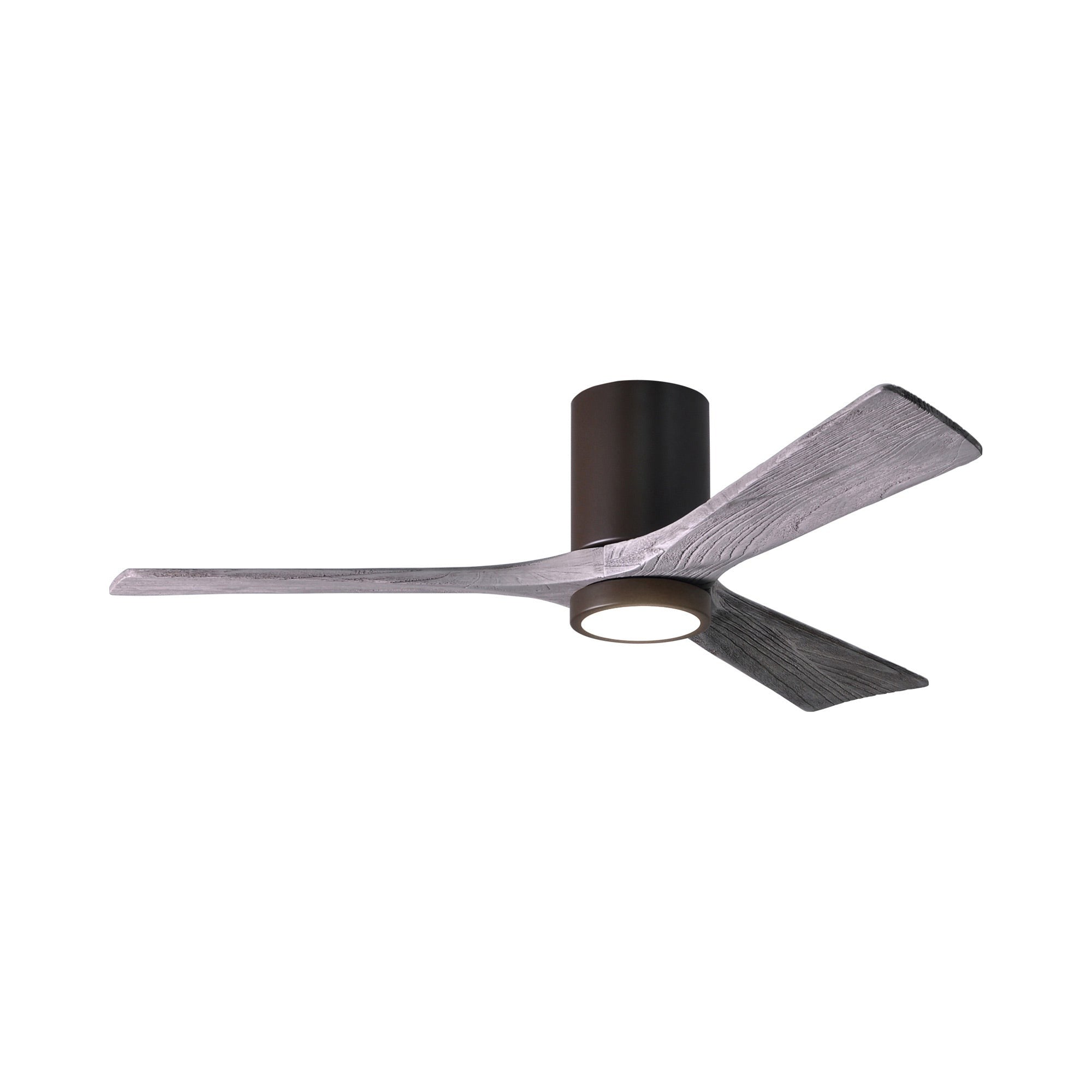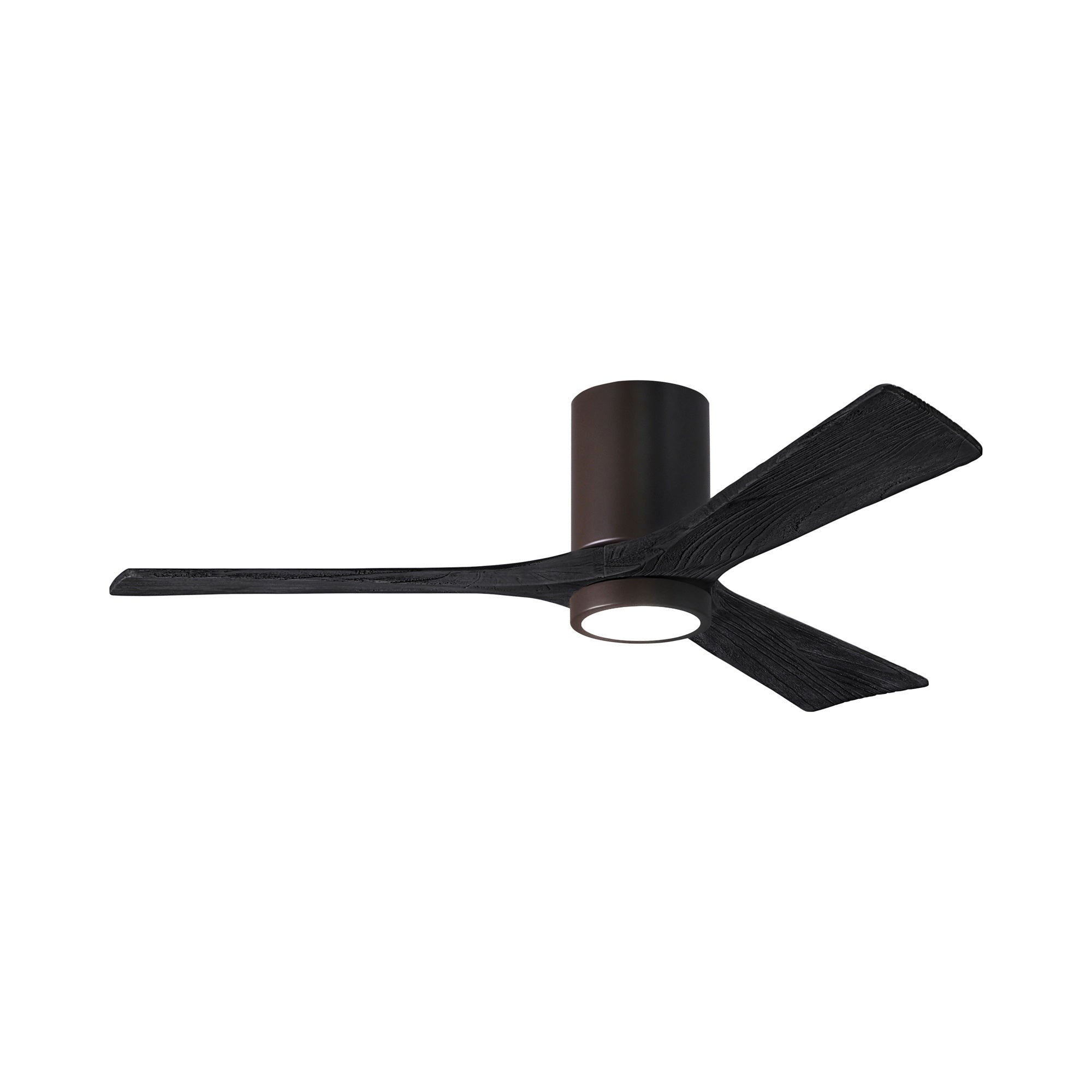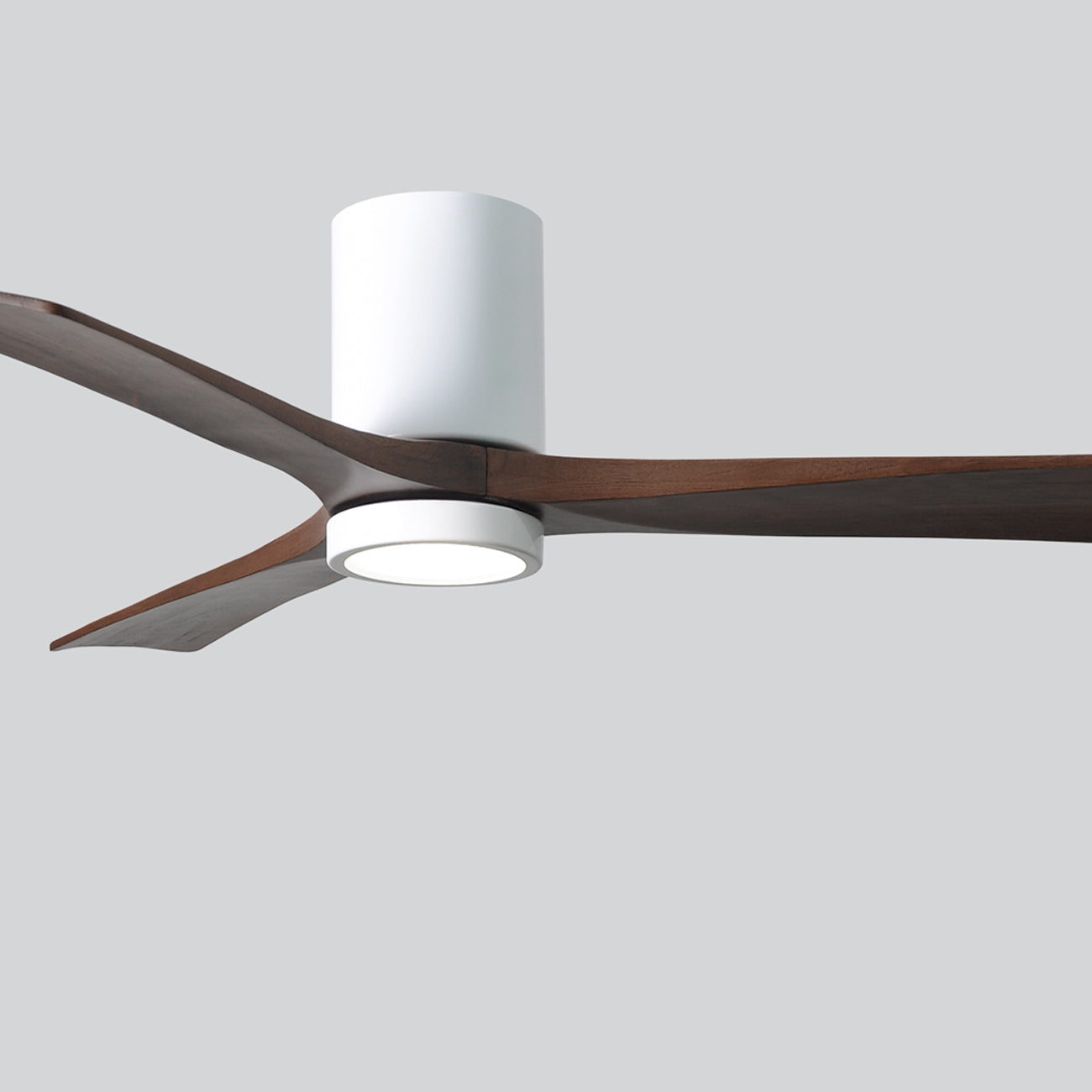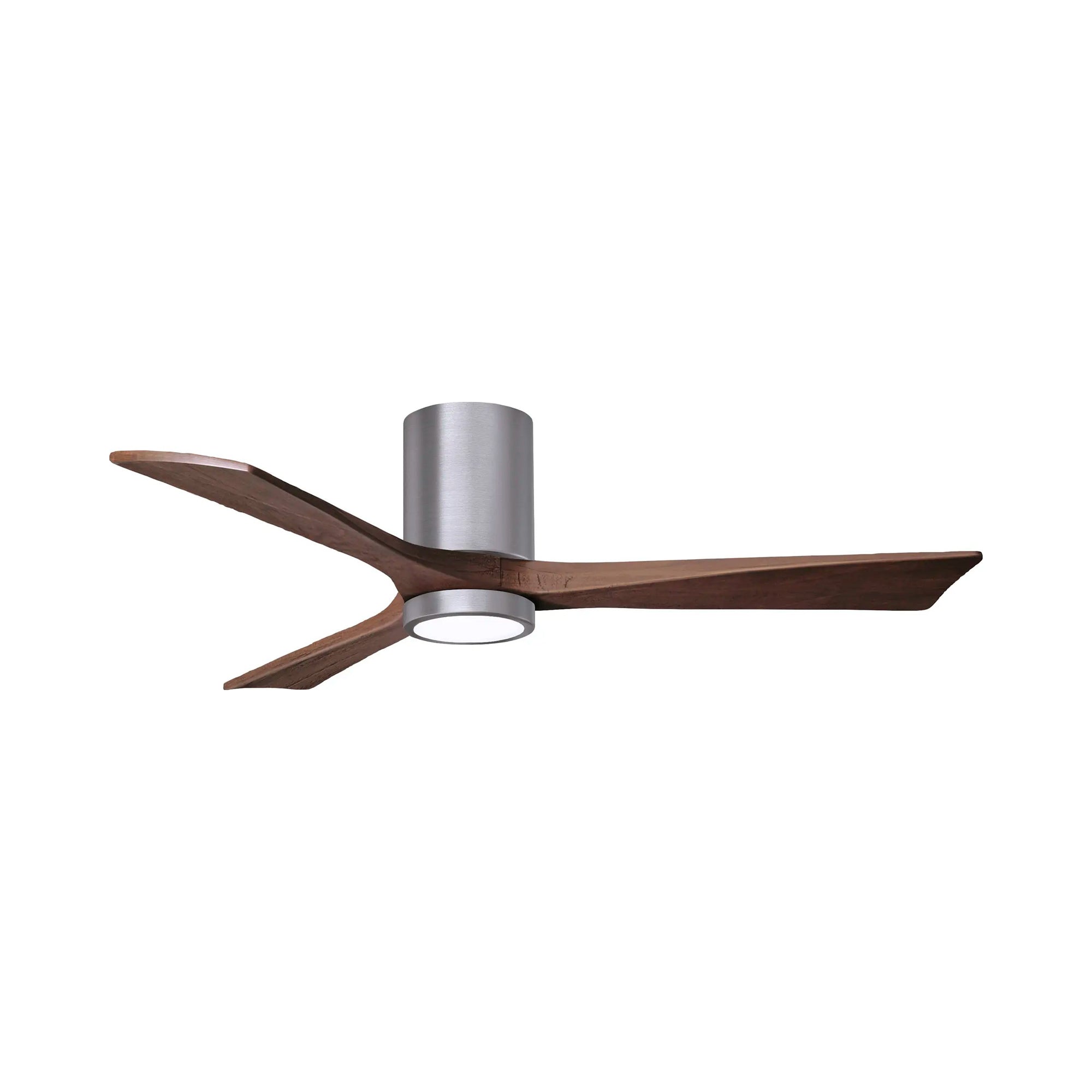A sleek cylindrical housing, an energy-efficient light, and streamlined blades create a chic, modern ambiance for the Irene IR3HLK 52-Inch Indoor / Outdoor LED Flush Mount Ceiling Fan from Matthews Fan Company.