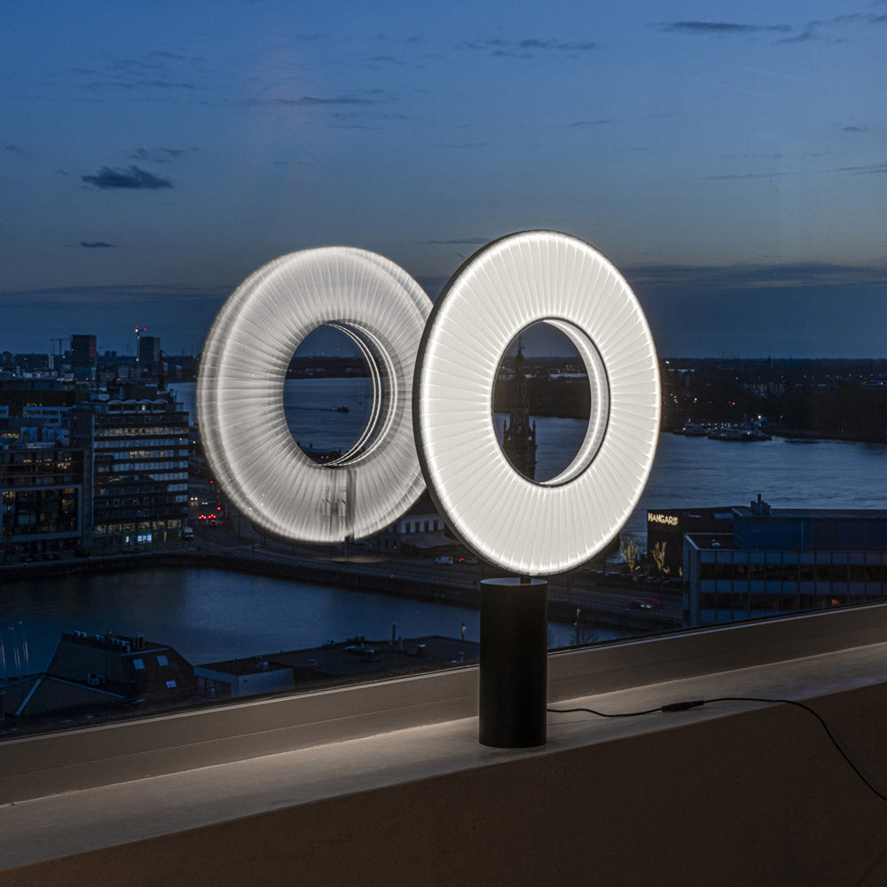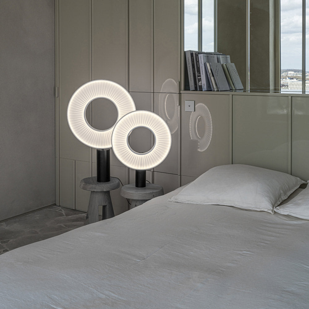 An unexpected retro vibe meets modern style as the Iris LED Table Lamp from 10 heures 10 by DCWeditions brings a festive look with soft, glowing illumination. Its textile shade offers obvious textural impact, designed in ring form with a cylinder base and trim. Enjoy energy efficiency in a lamp with no shortage of character.