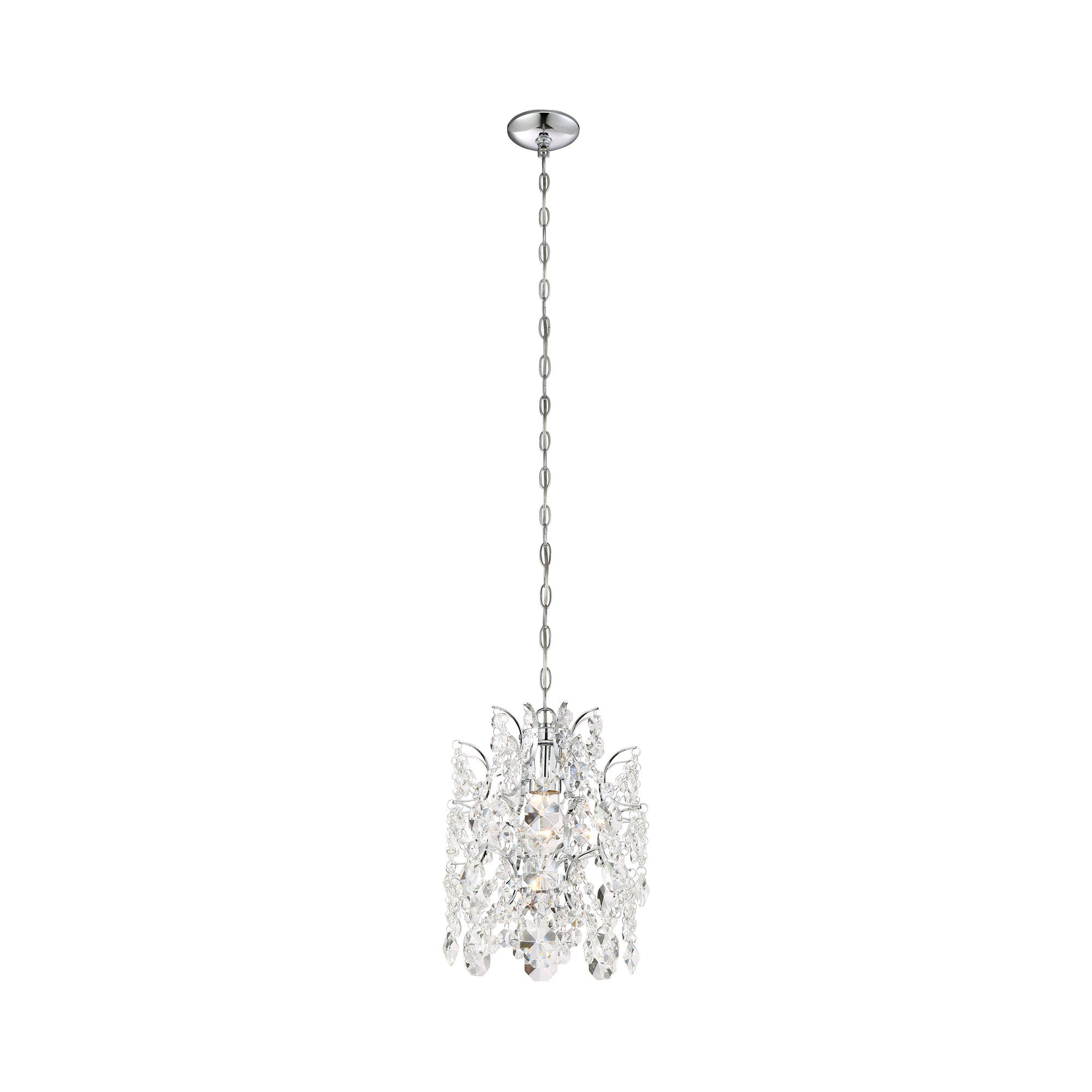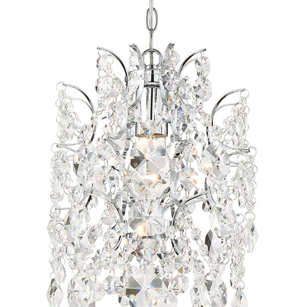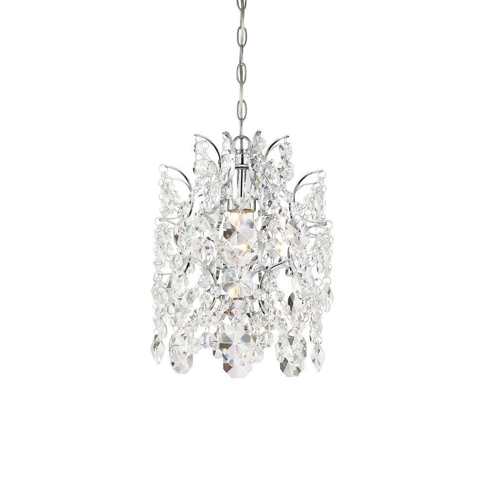 A diminutive size belies the extraordinary decadence of an interior pendant designed to make a statement. Isabella's Crown Mini Pendant Light from Minka Lavery dotes on opulence with a gleaming chrome metal frame and countless crystal-like elements cascading and creating symmetry.