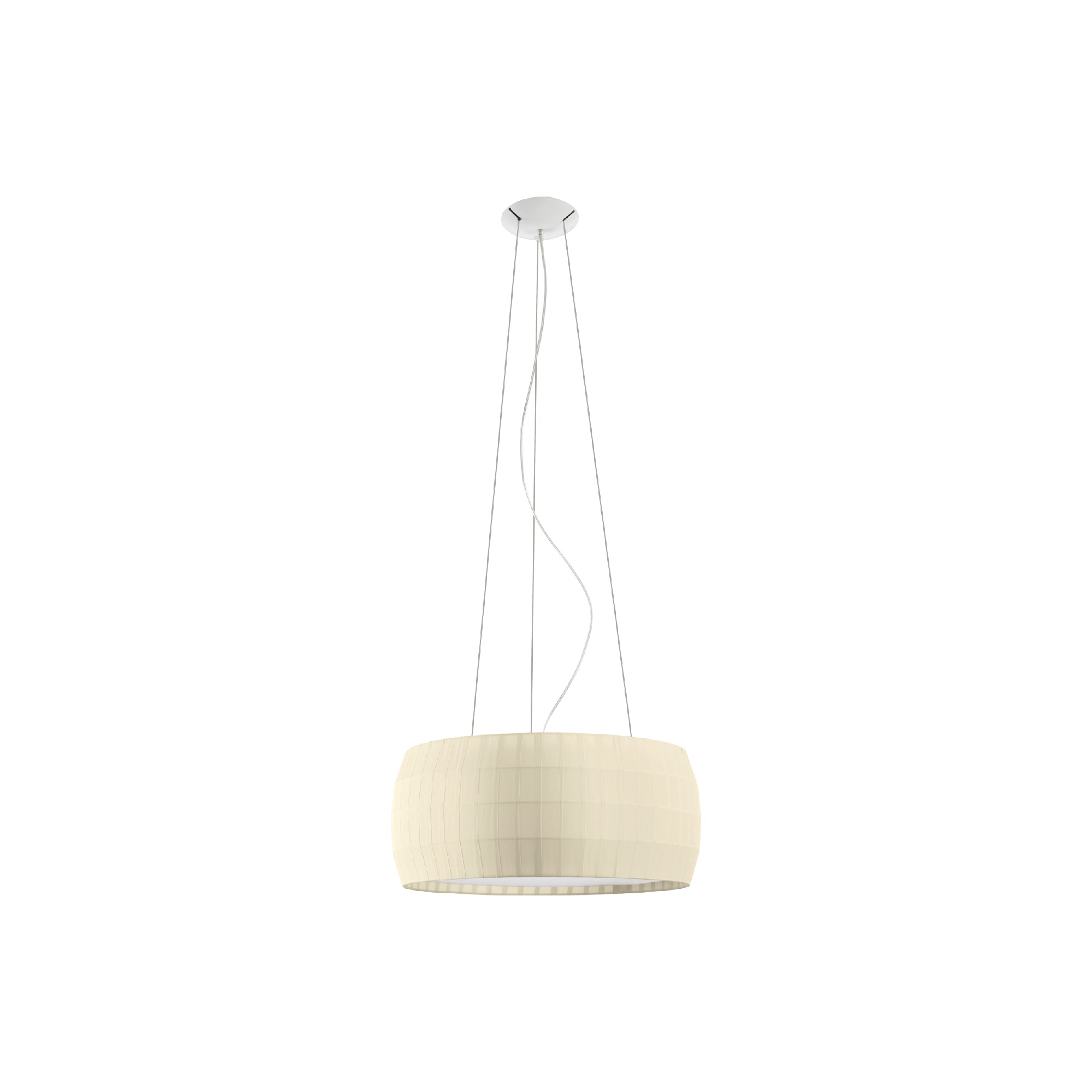 An immediate experience of calm, soothing attitude ensues when the Isamu Pendant Light from Carpyen becomes part of a casual living setting. Its organic flavor with Asian inspiration is evident as a decadent woven silk shade provides a glam feature. Woven metal framing peers through in grid form when the fixture is lit, adding textural significance with a sense of order.