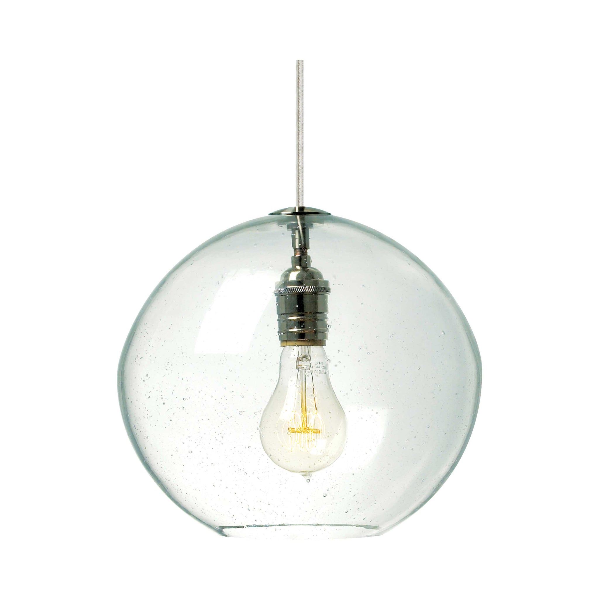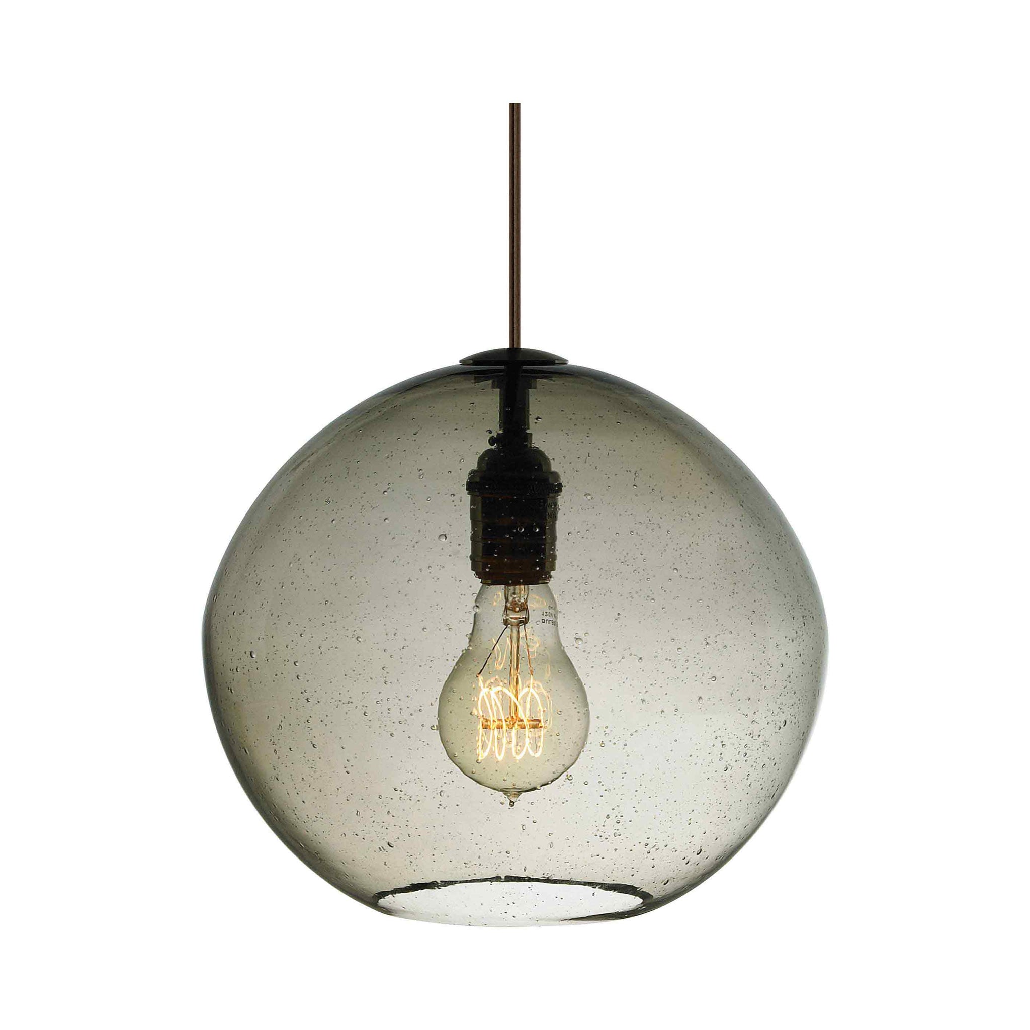 The Isla Pendant from Visual Comfort Modern features a perfectly irregular organic hand blown round-shaped glass. Skilled artisans work to perfect the seeded technique that leaves hundreds of bubbles suspended within the glass. Adding a touch of charm and warmth to this contemporary glass pendant is the visible incandescent lamping. The Isla Pendant is available in five contemporary colors, each color further enhancing the unique features most noted to the Isla pendant. Scaling at 72” in length and 9.8” in width the Isla Pendant is moderately sized making it ideal for home office lighting, dining room lighting and kitchen island task lighting. Also available in the Isla collection is the complementary Mini-Isla Pendant, simply search for Mini-Isla to find its closest relatives.