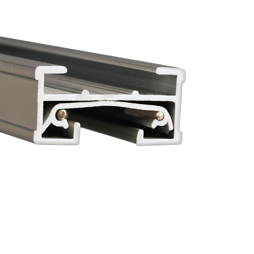 Aluminum extrusion with copper bus wire creates this J Track 120V Single Circuit Track Section from WAC Lighting. Field cut and install with ease on several surfaces with this track section including end caps and mounting hardware and suitable for retrofitting into an array of popular track systems.